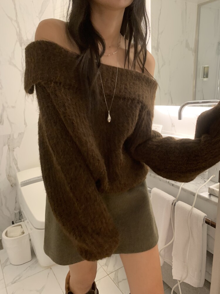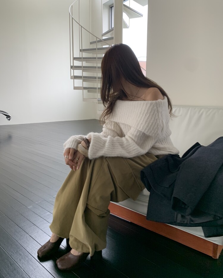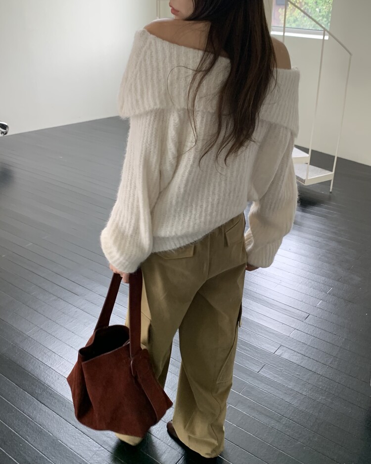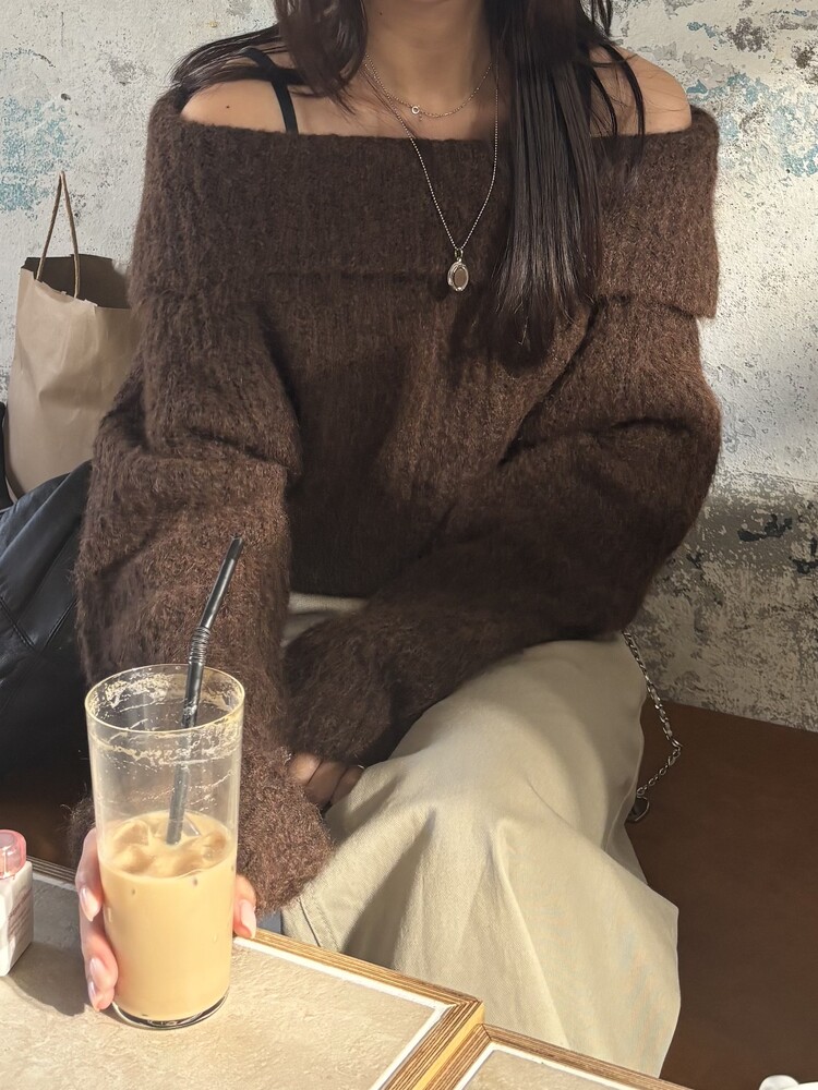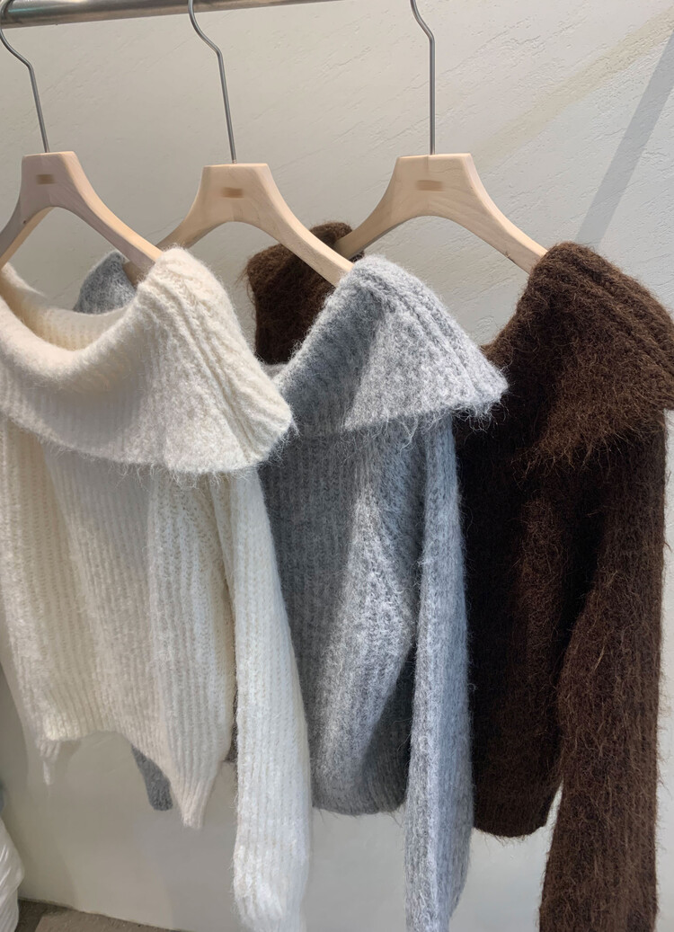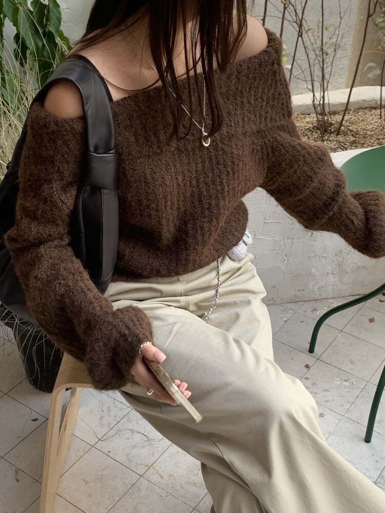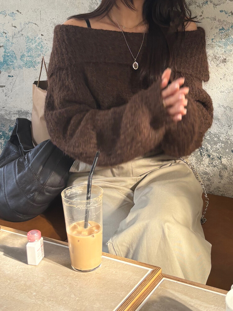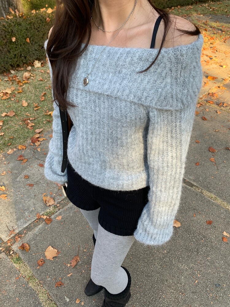 도톰한 소재와 부드러운 터치감이 매력적인 오프숄더 니트입니다.