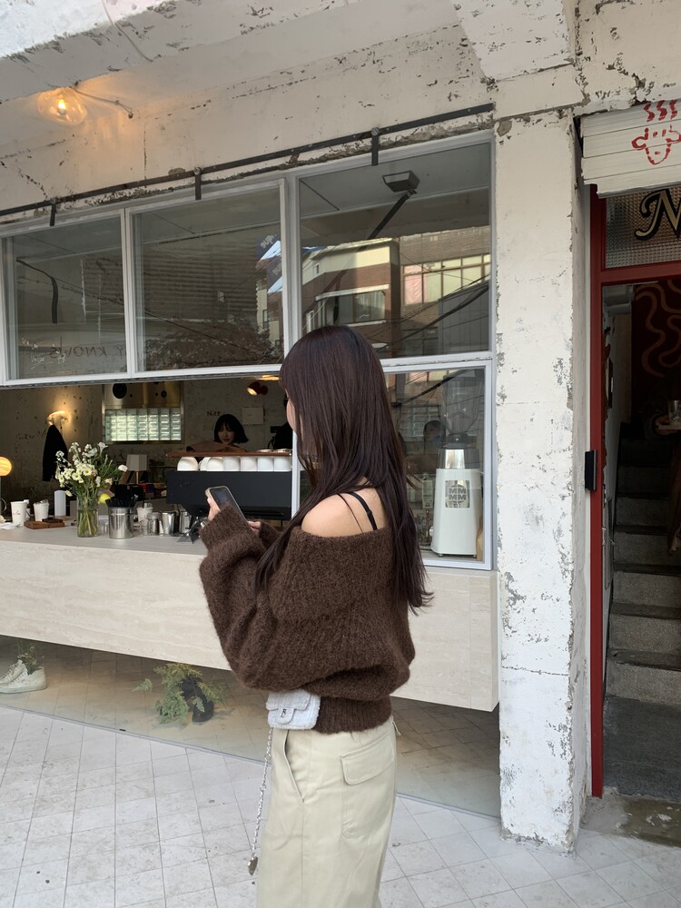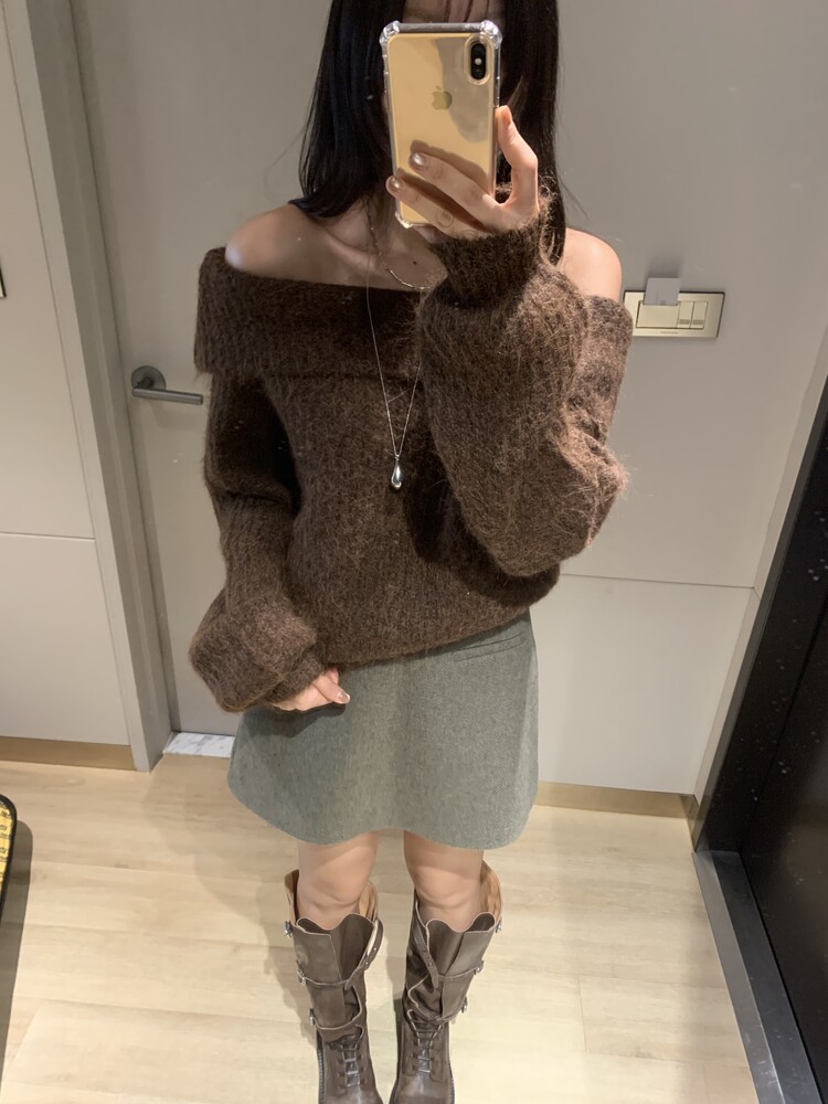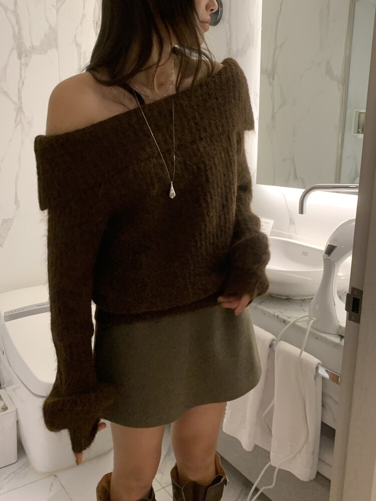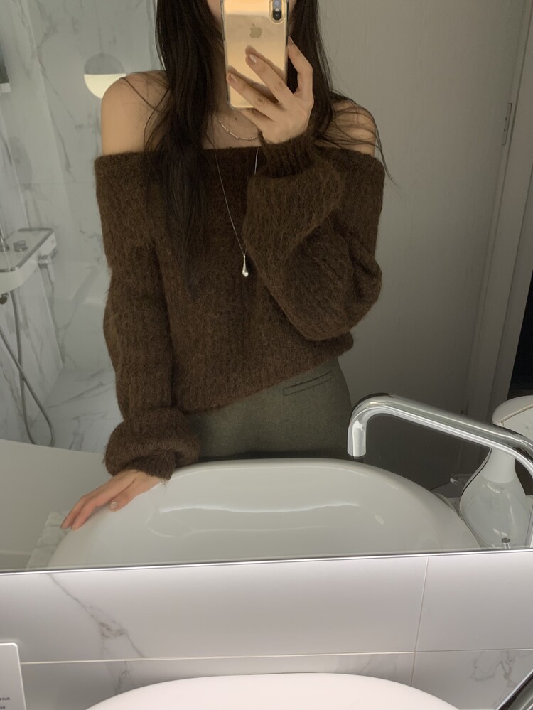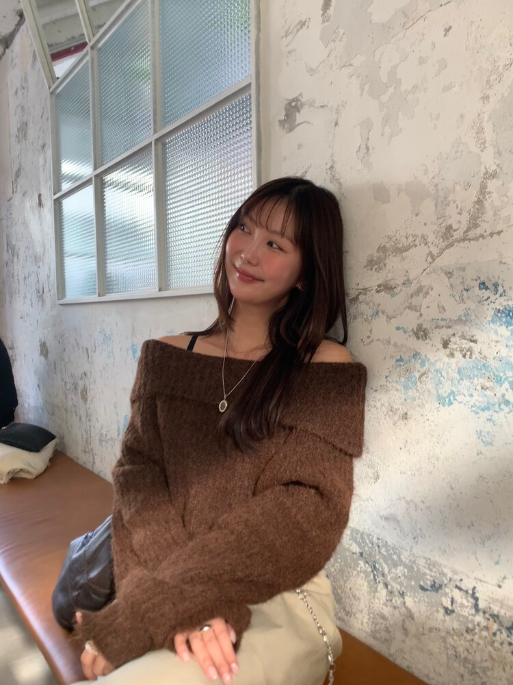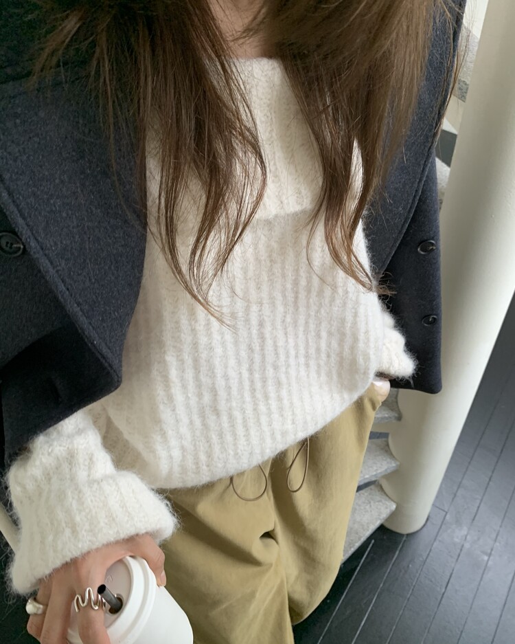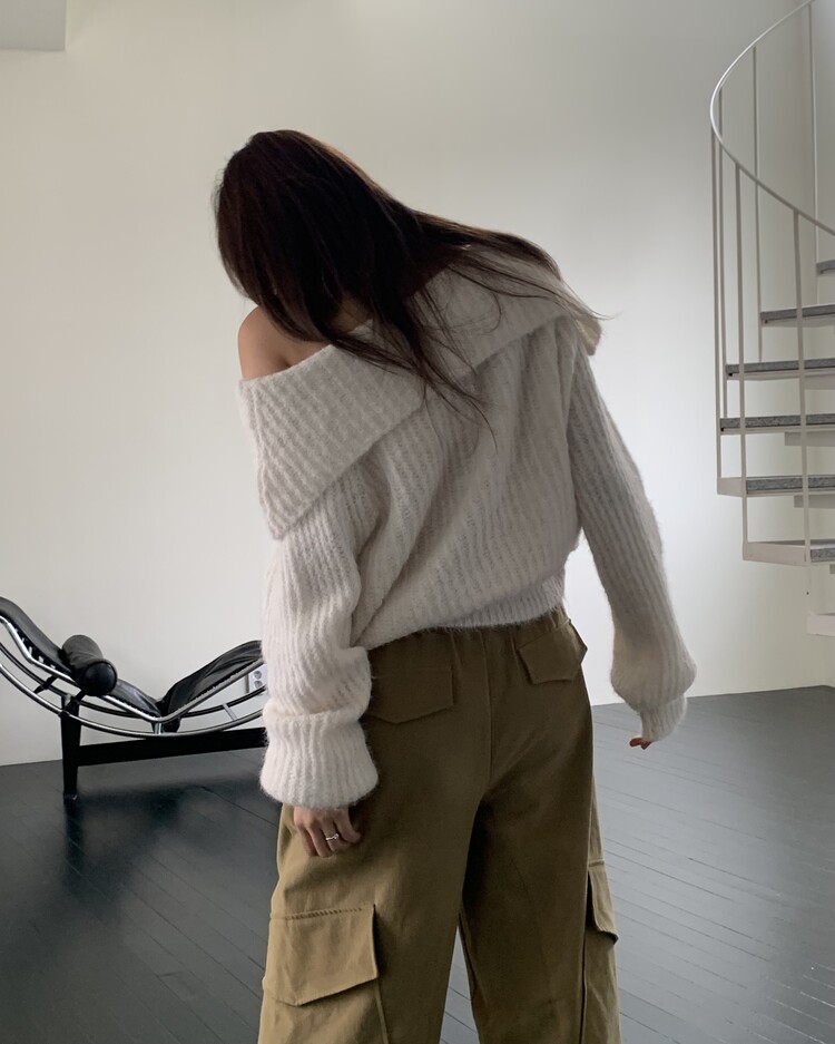 도톰한 소재와 부드러운 터치감이 매력적인 오프숄더 니트입니다.