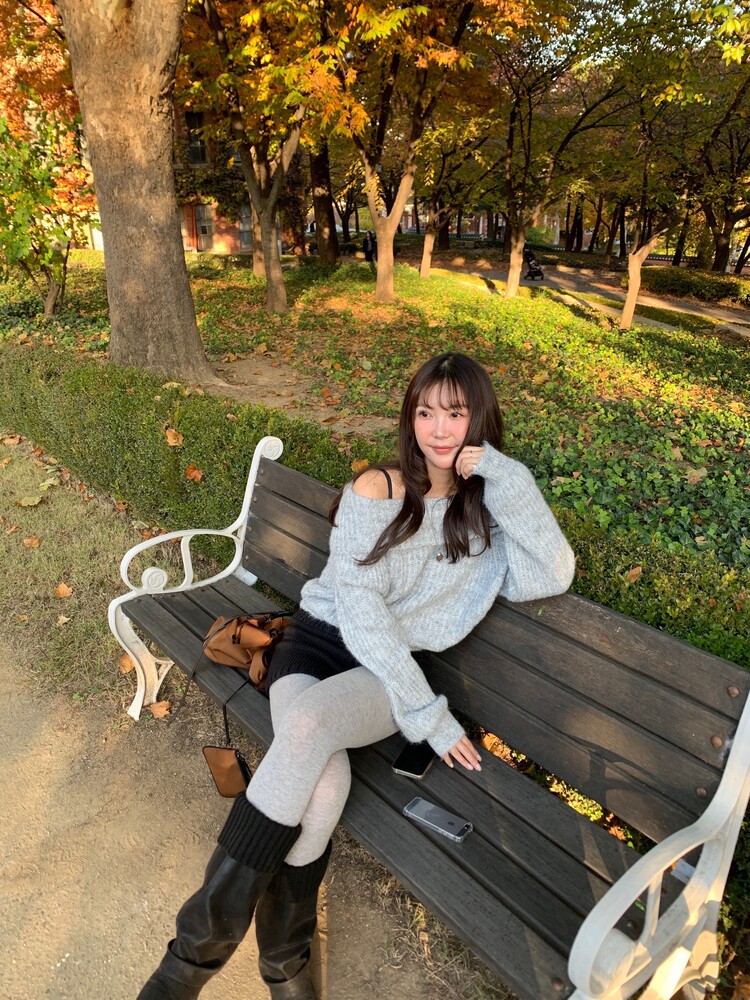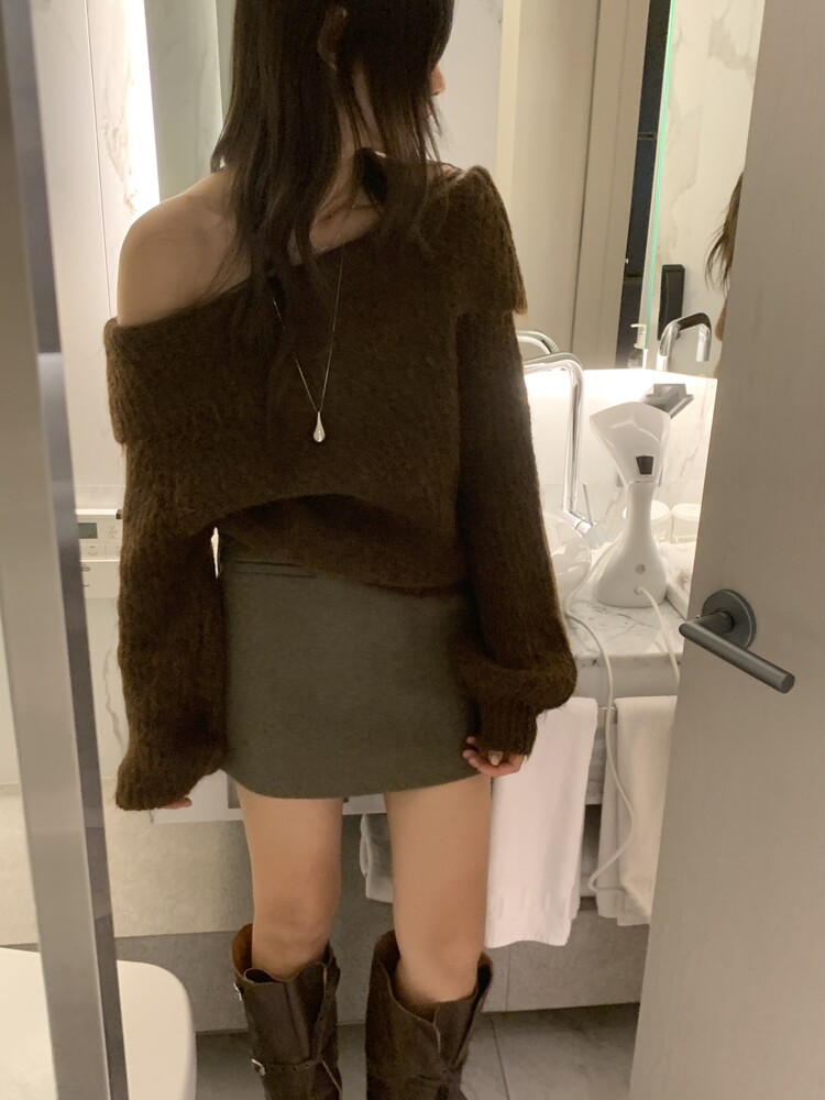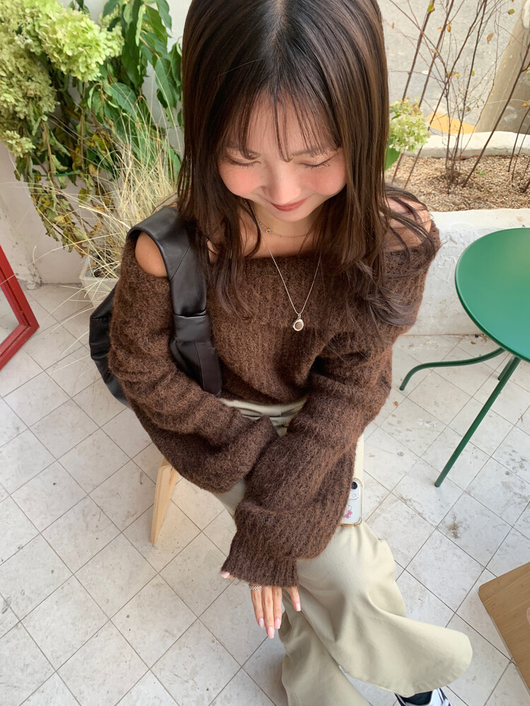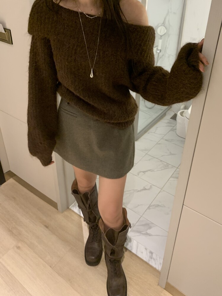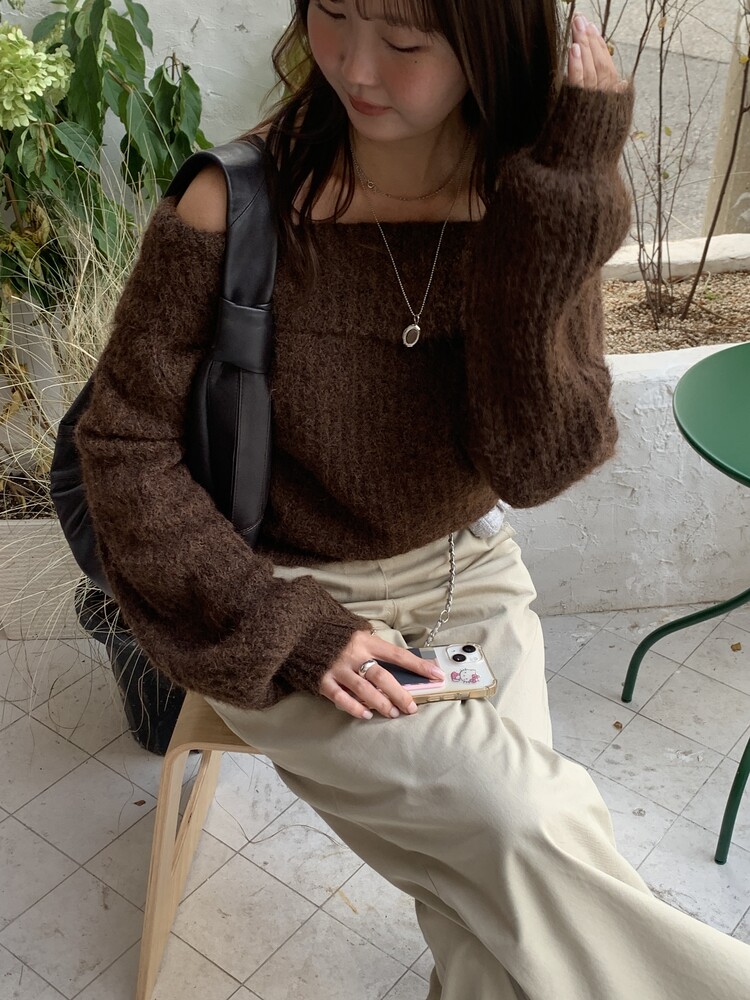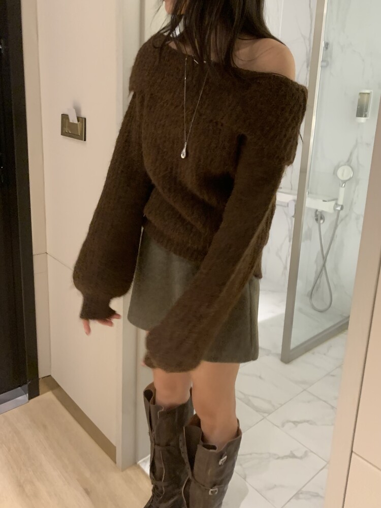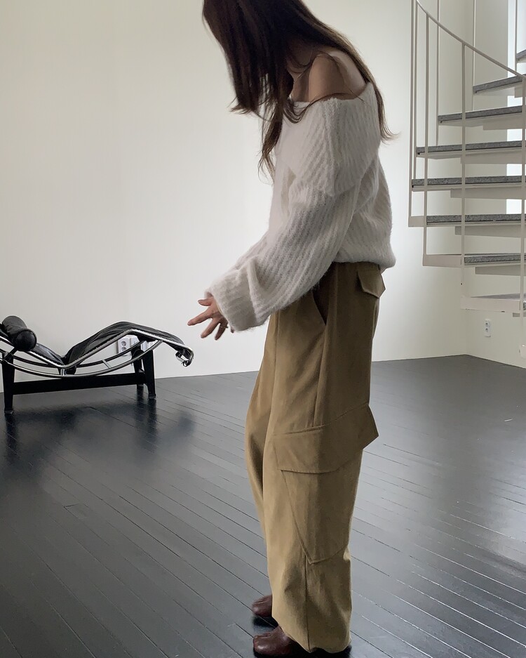 도톰한 소재와 부드러운 터치감이 매력적인 오프숄더 니트입니다.