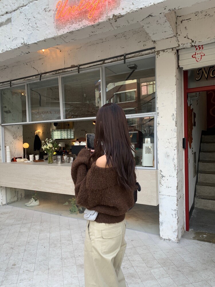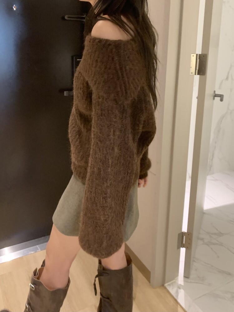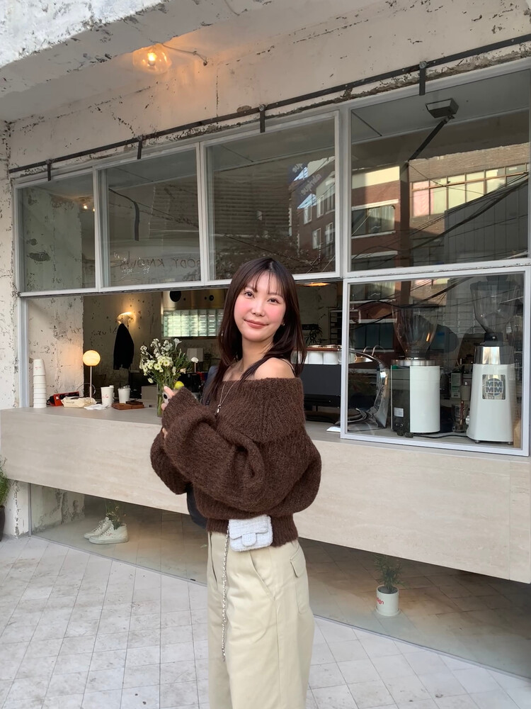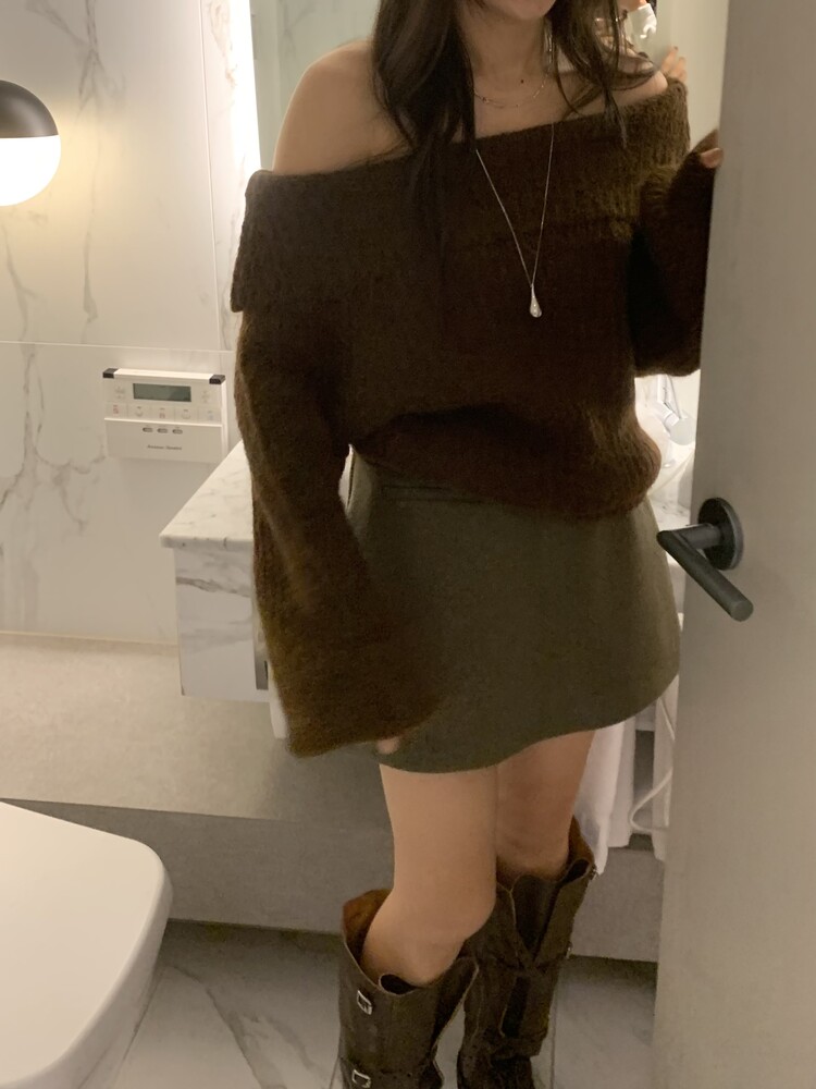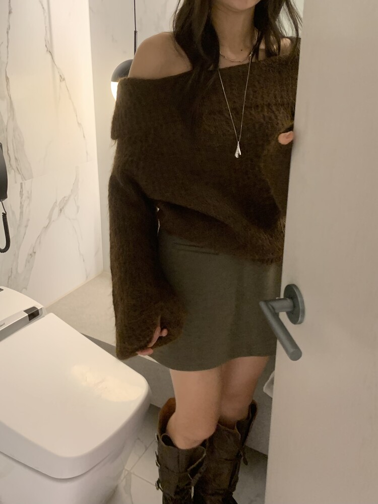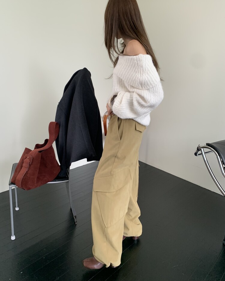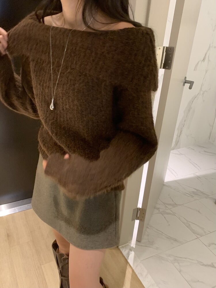 도톰한 소재와 부드러운 터치감이 매력적인 오프숄더 니트입니다.