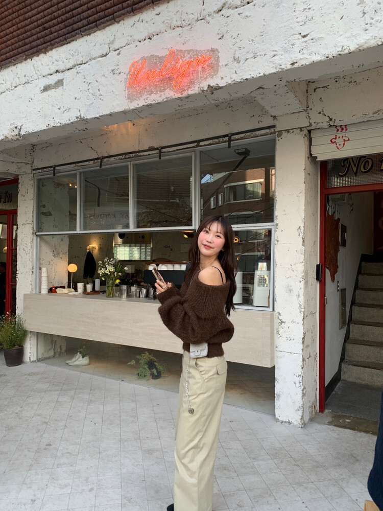 여유있지만 부해보이지않는 아웃핏이 예쁜니트라