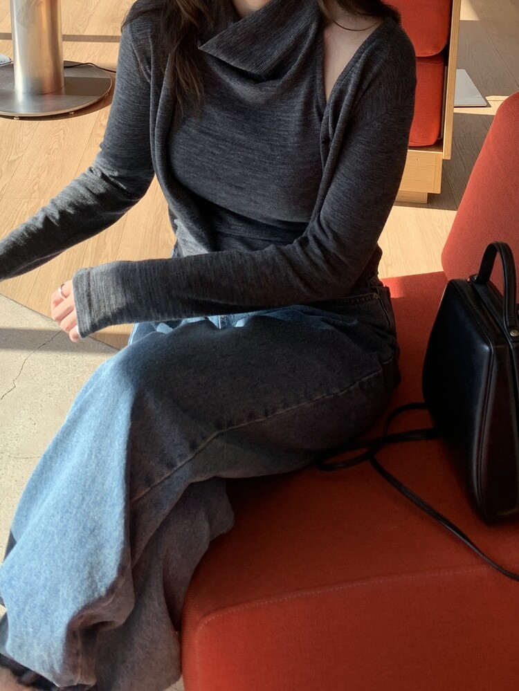 드레이프 디자인으로 넥라인이 넉넉해