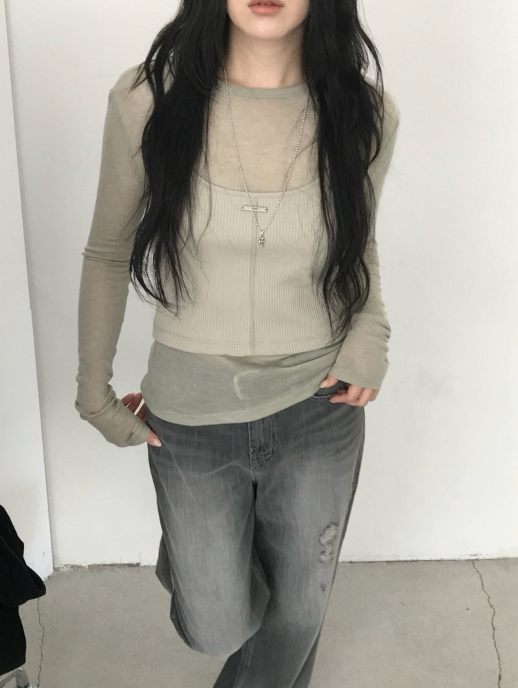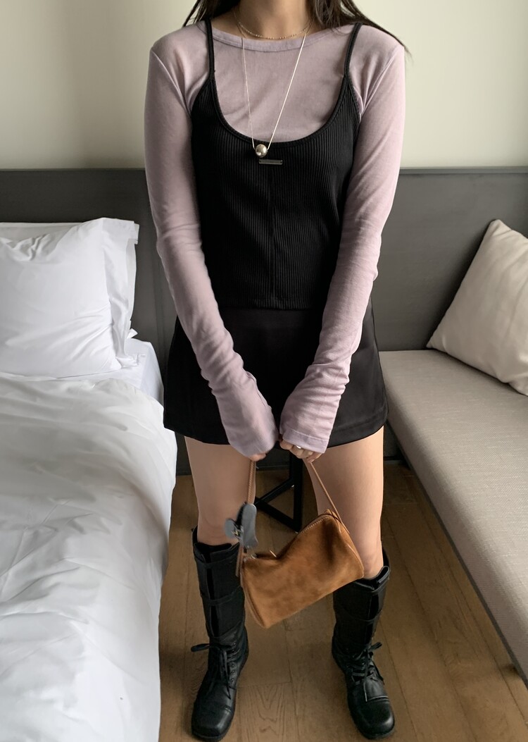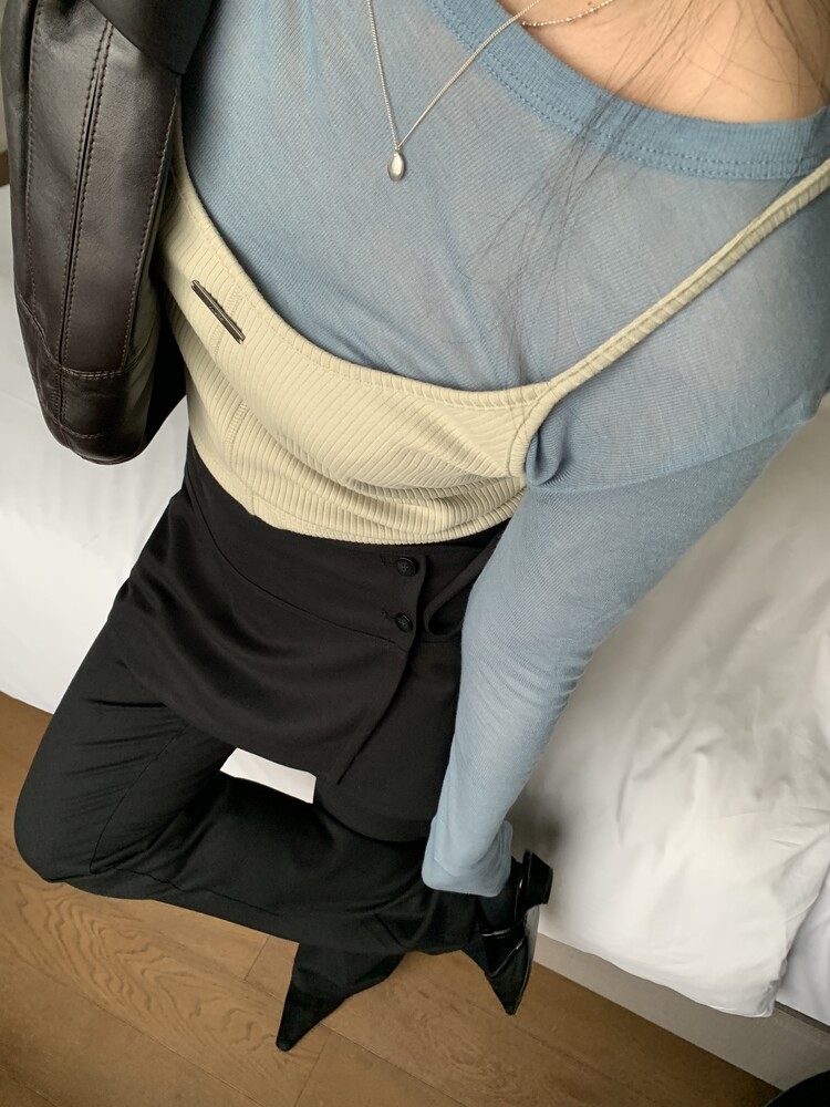 얇은 스트랩과 깔끔한 네크라인으로 단독 착용은 물론,