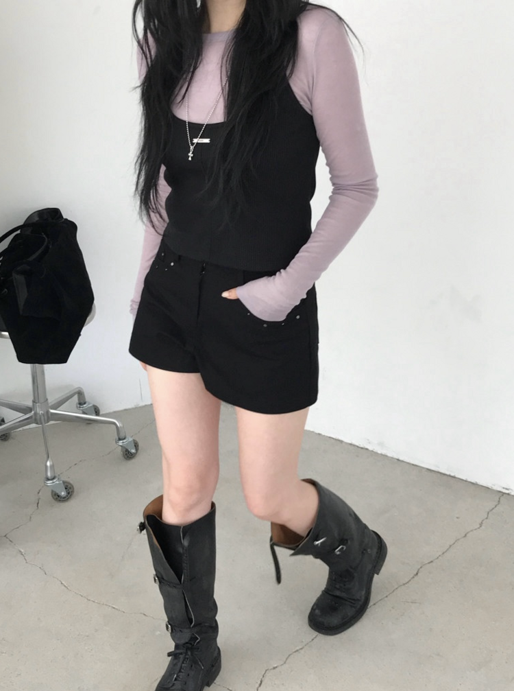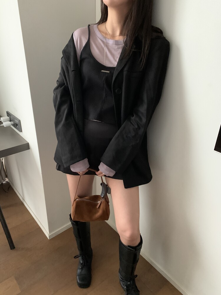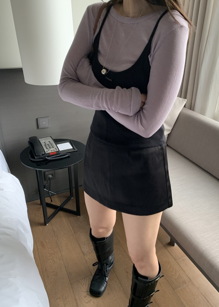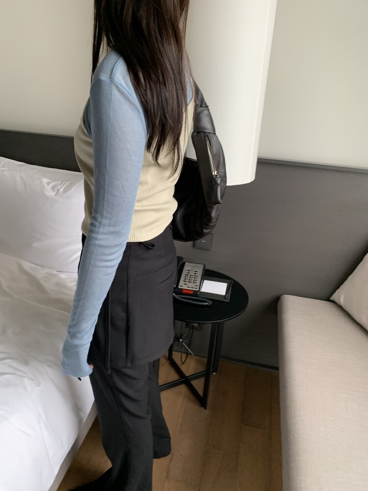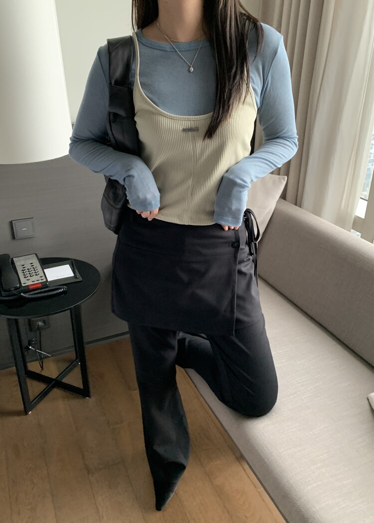 데일리로 활용하기좋은 골지텍스처의 뷔스티에로