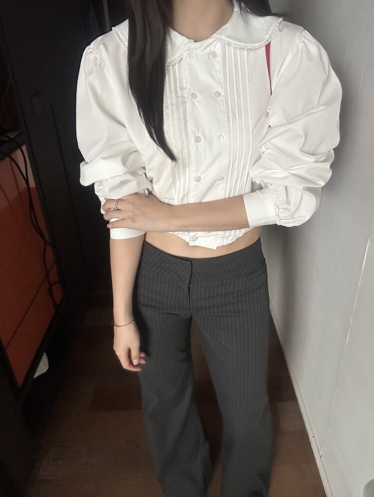 블라우스 프론트라인은 더블 디테일로