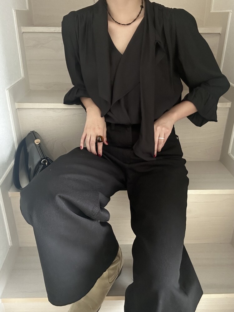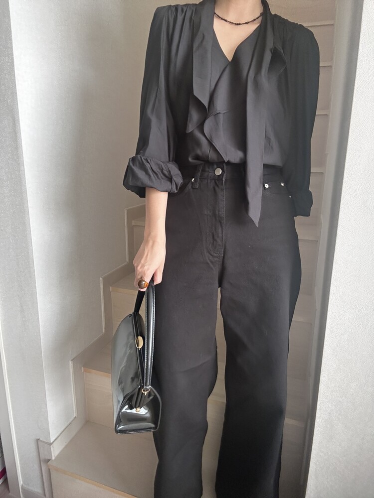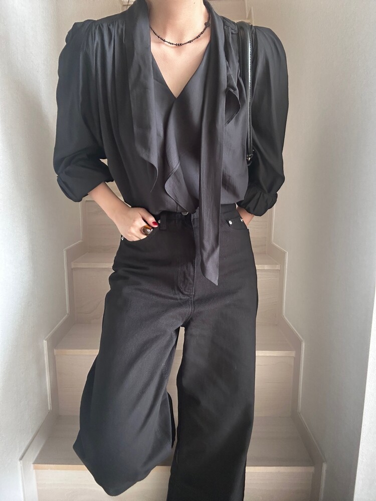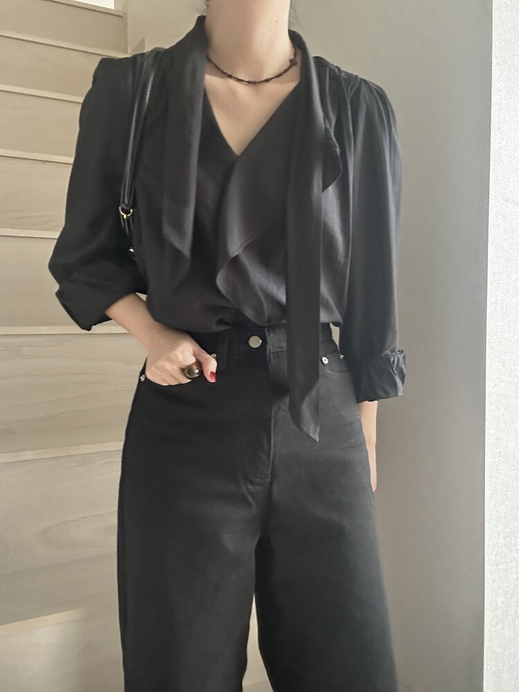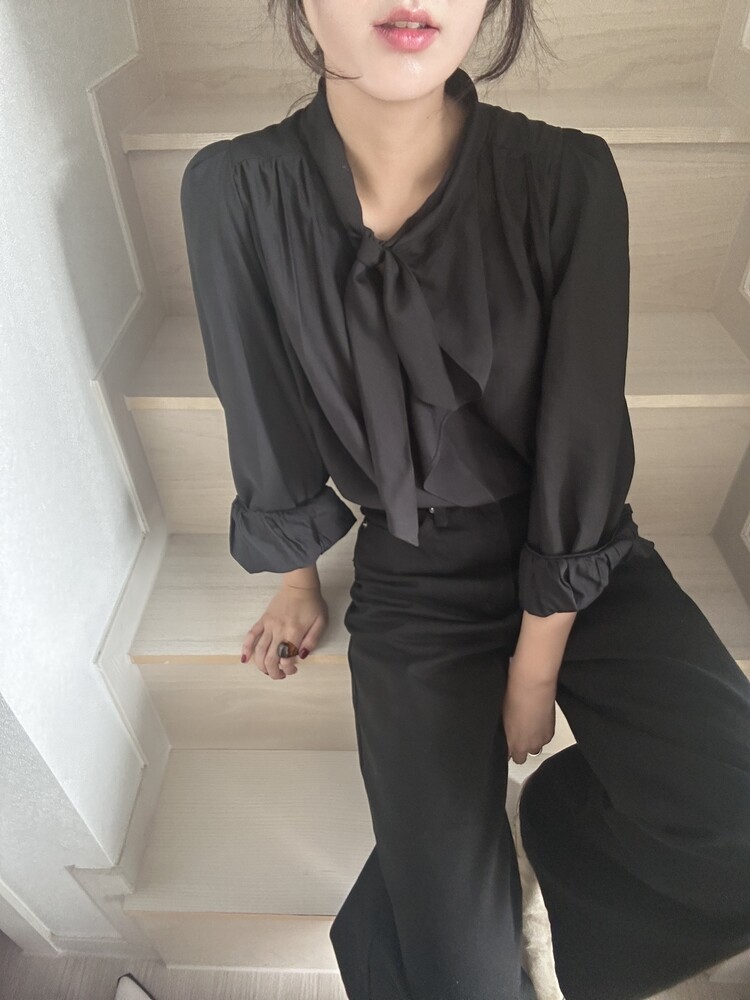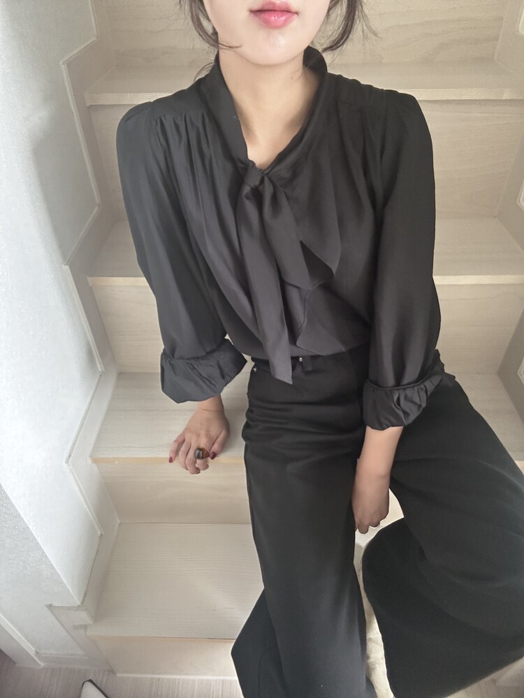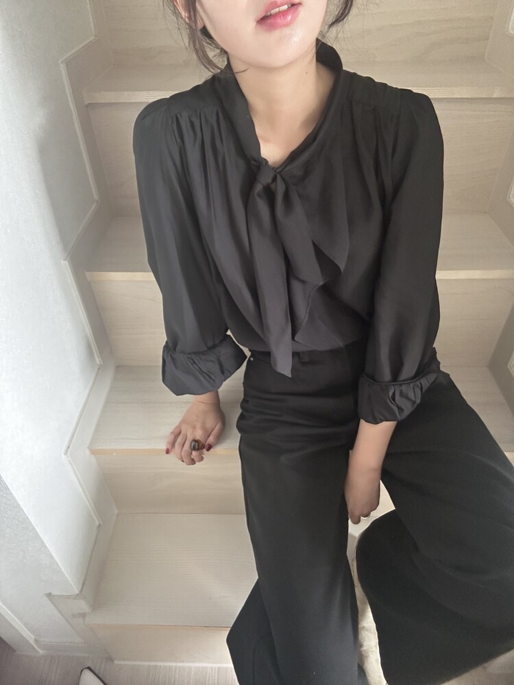 이런 블라우스는 꼭 슬랙스나 롱스커트에 입어야할꺼 같지만
