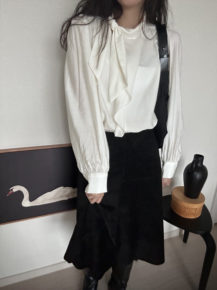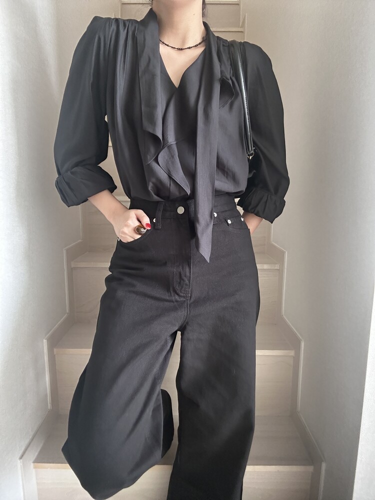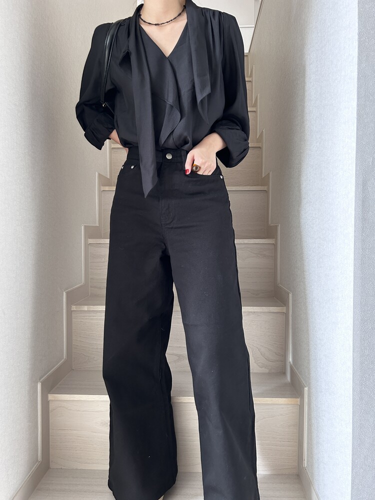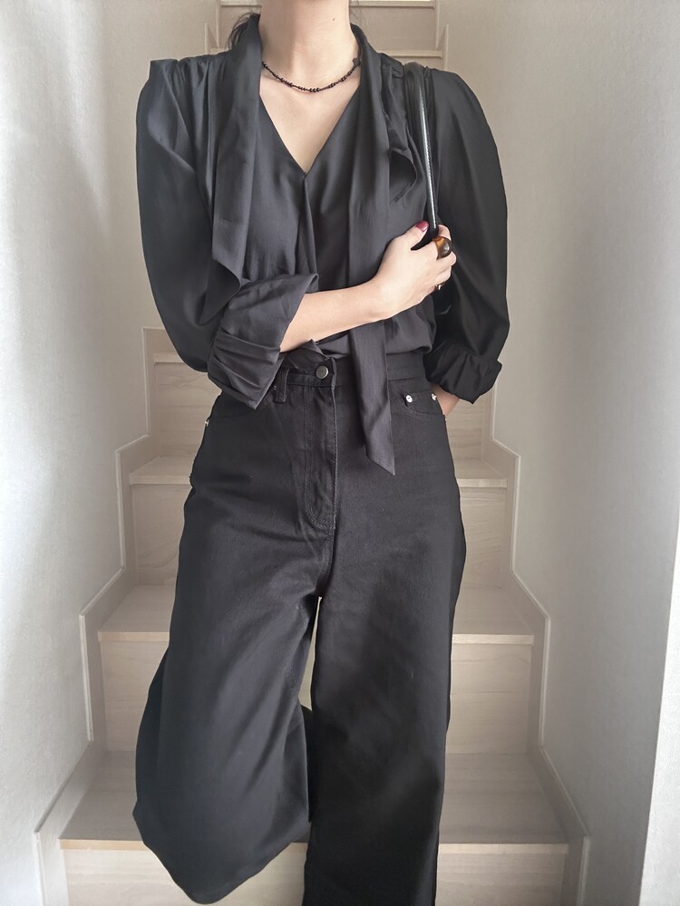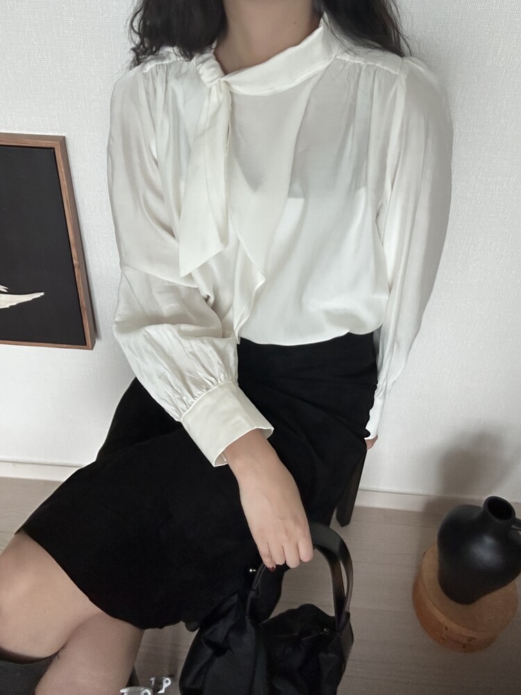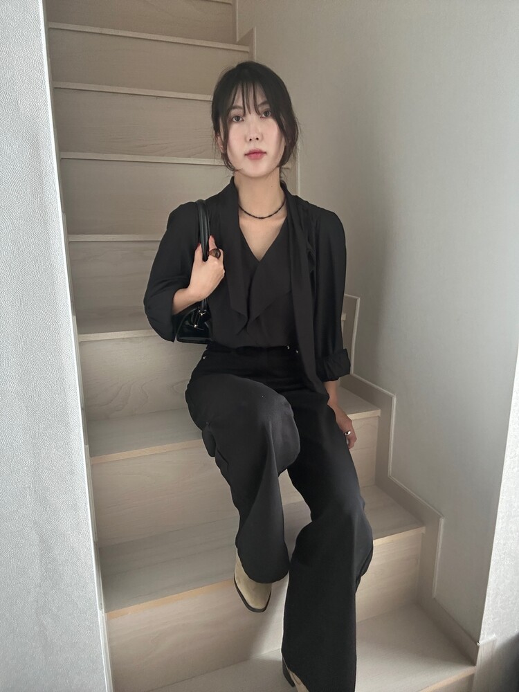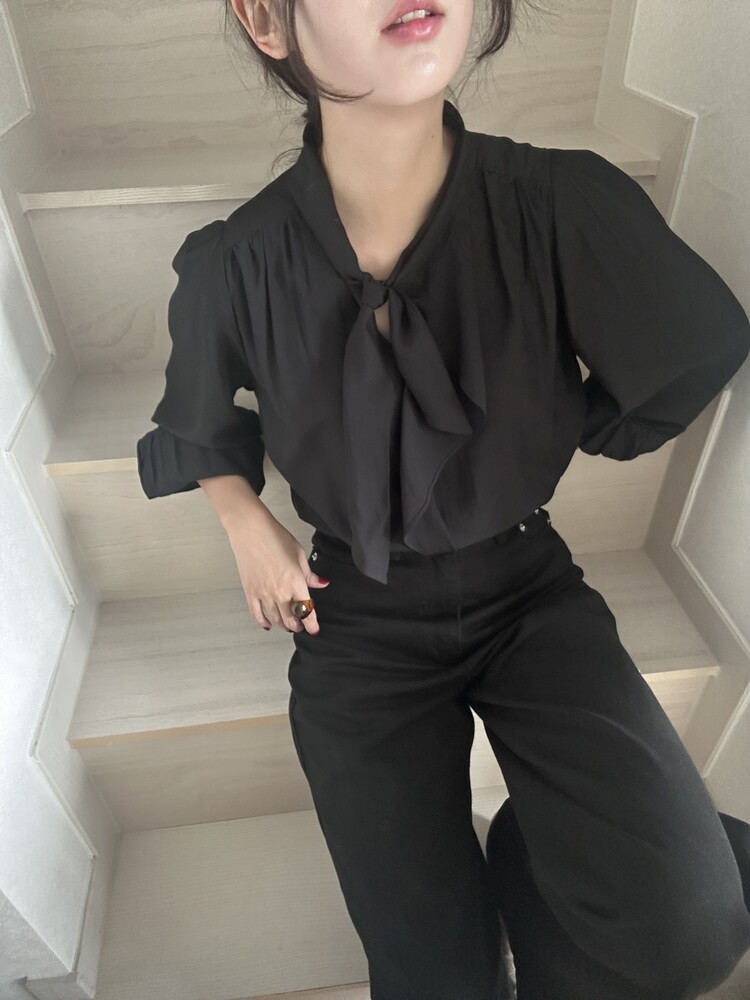 이런 블라우스는 꼭 슬랙스나 롱스커트에 입어야할꺼 같지만