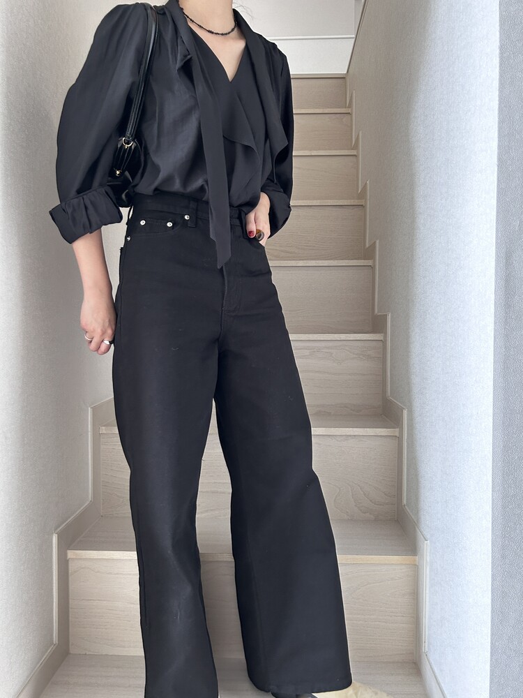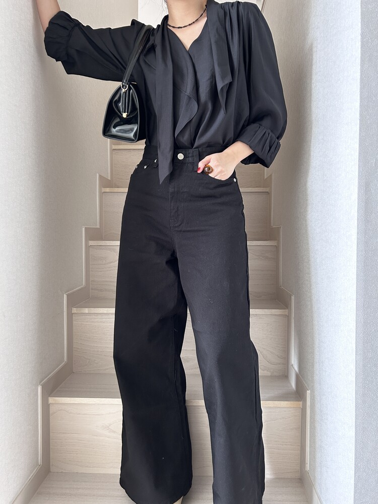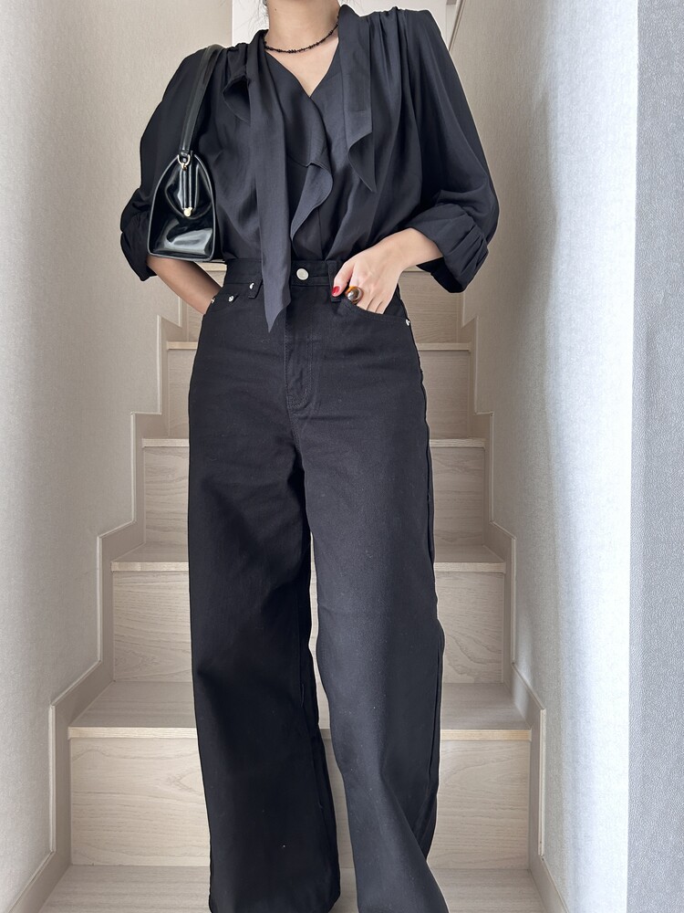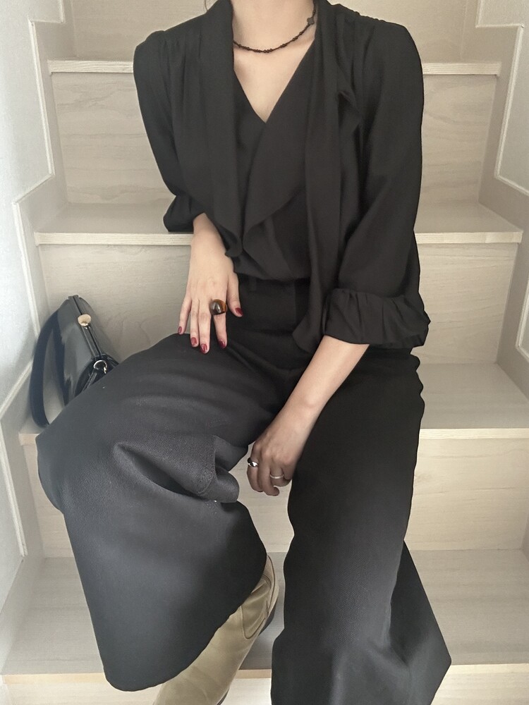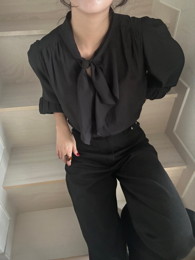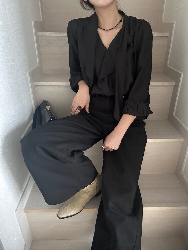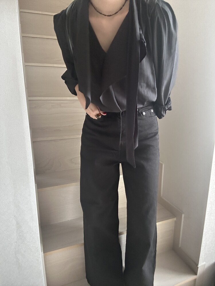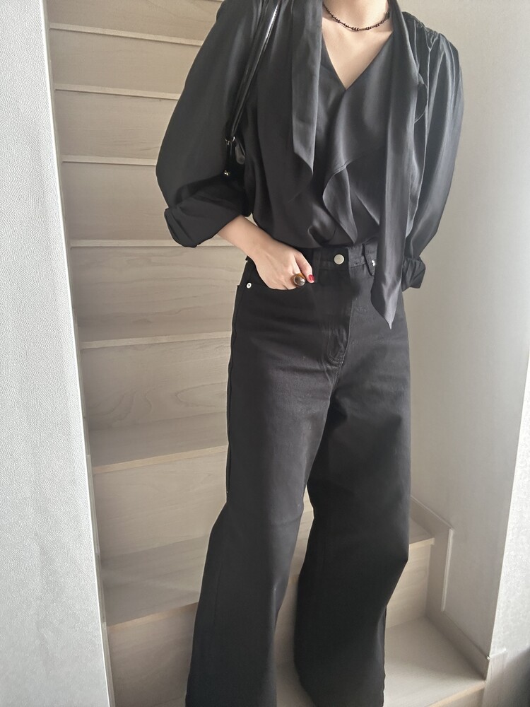 이런 블라우스는 꼭 슬랙스나 롱스커트에 입어야할꺼 같지만