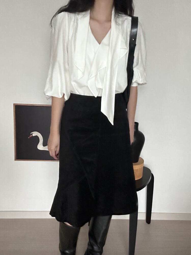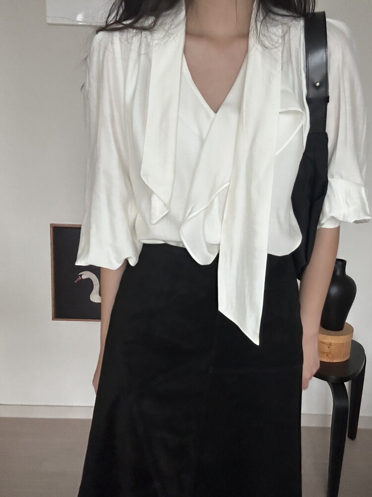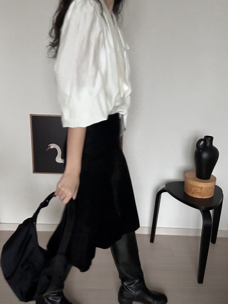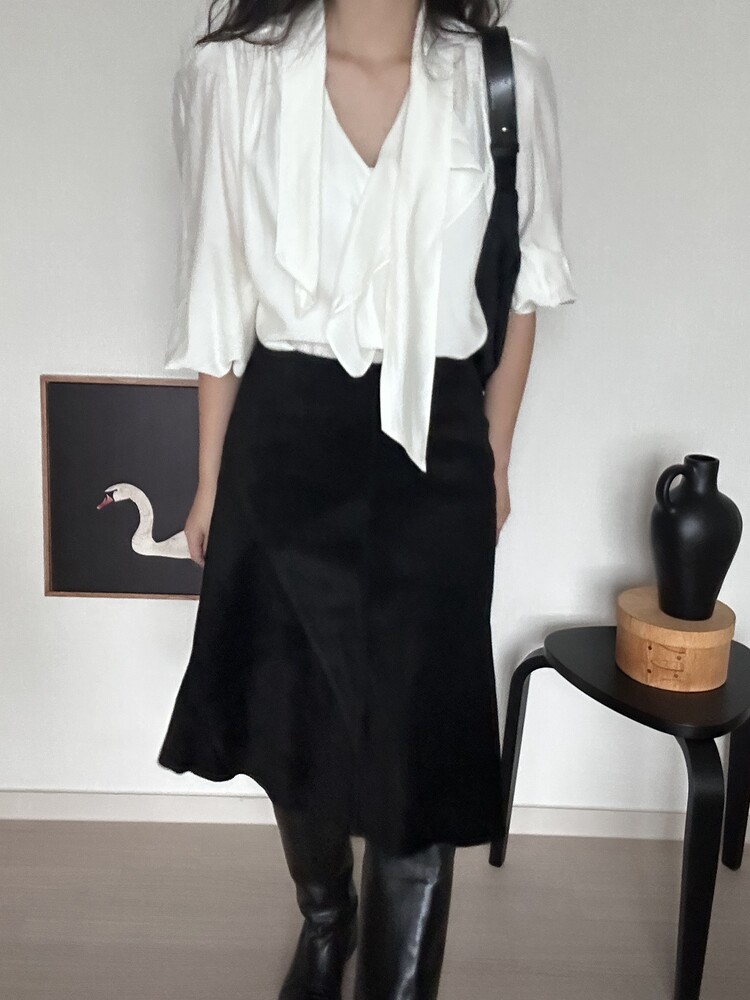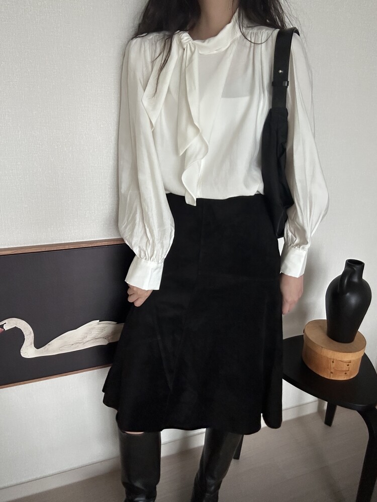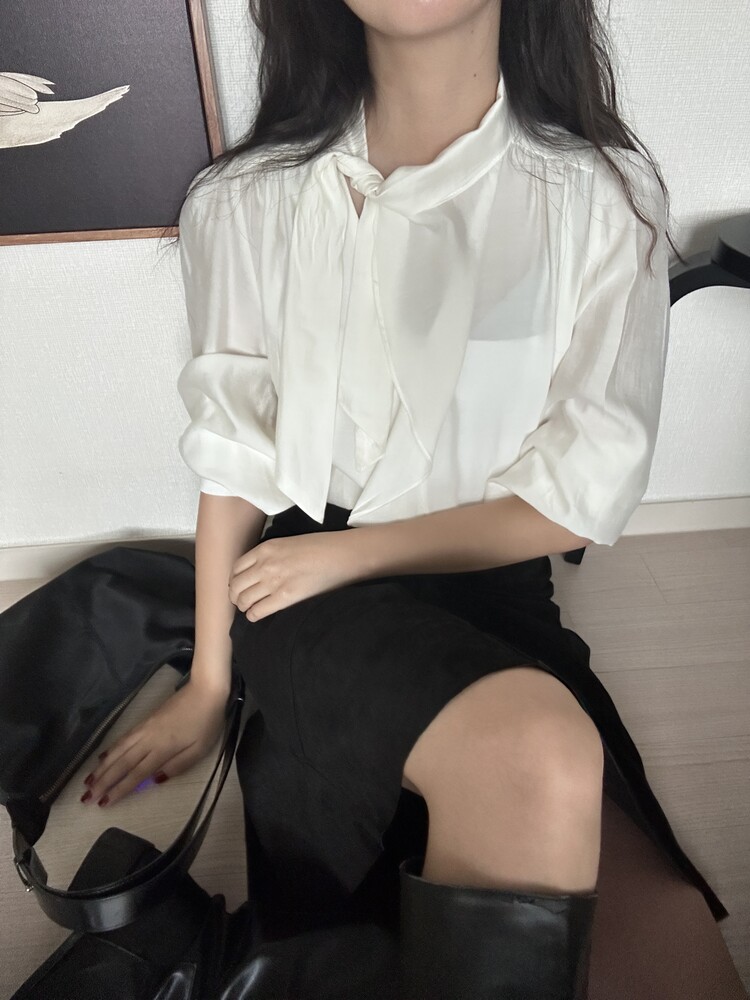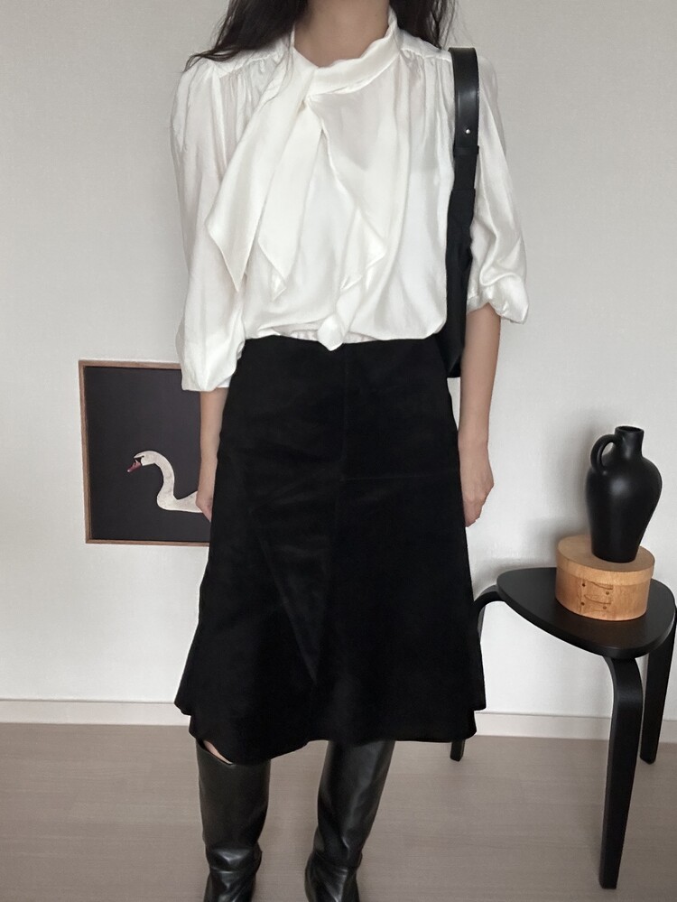 이런 블라우스는 꼭 슬랙스나 롱스커트에 입어야할꺼 같지만