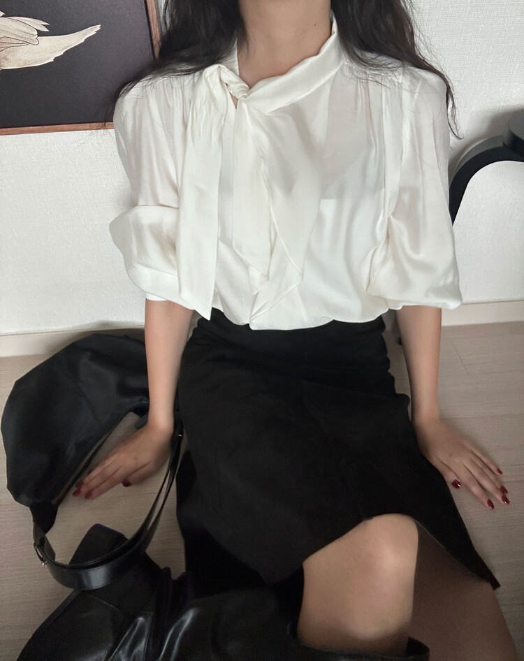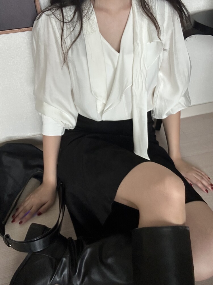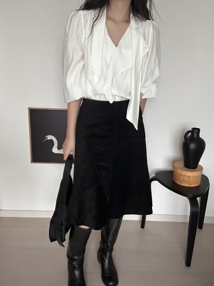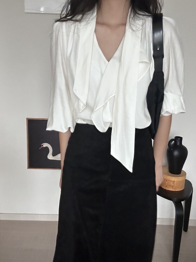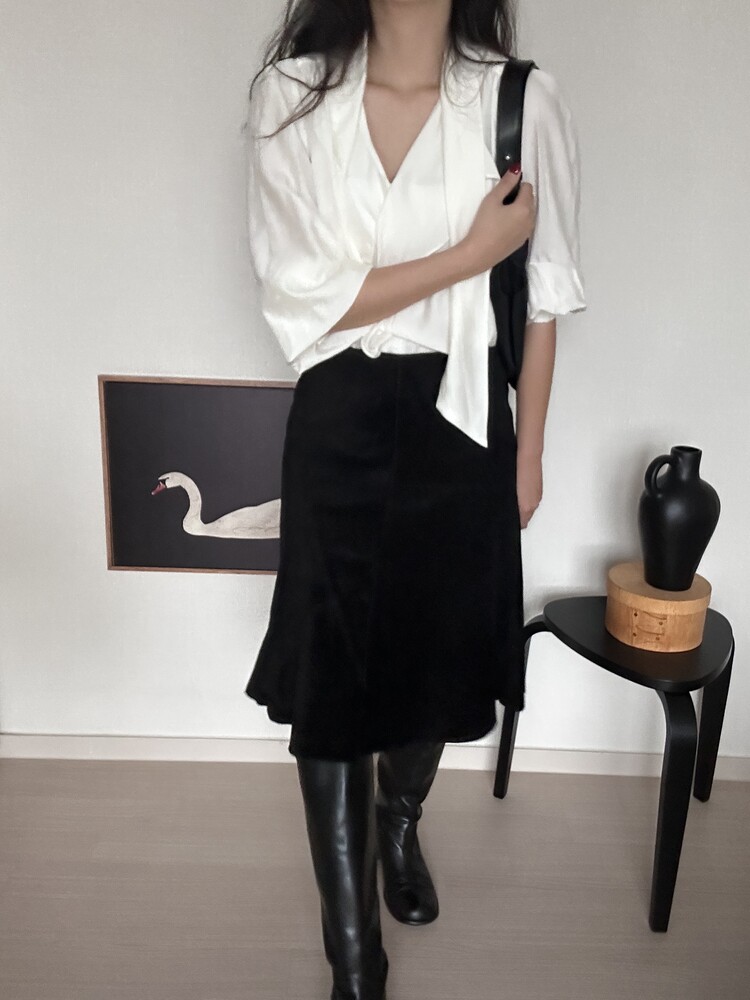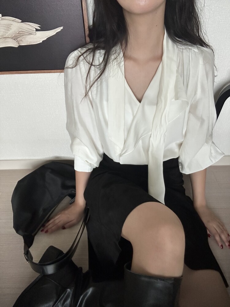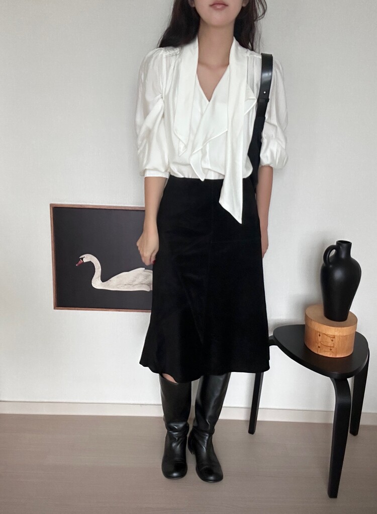 이런 블라우스는 꼭 슬랙스나 롱스커트에 입어야할꺼 같지만