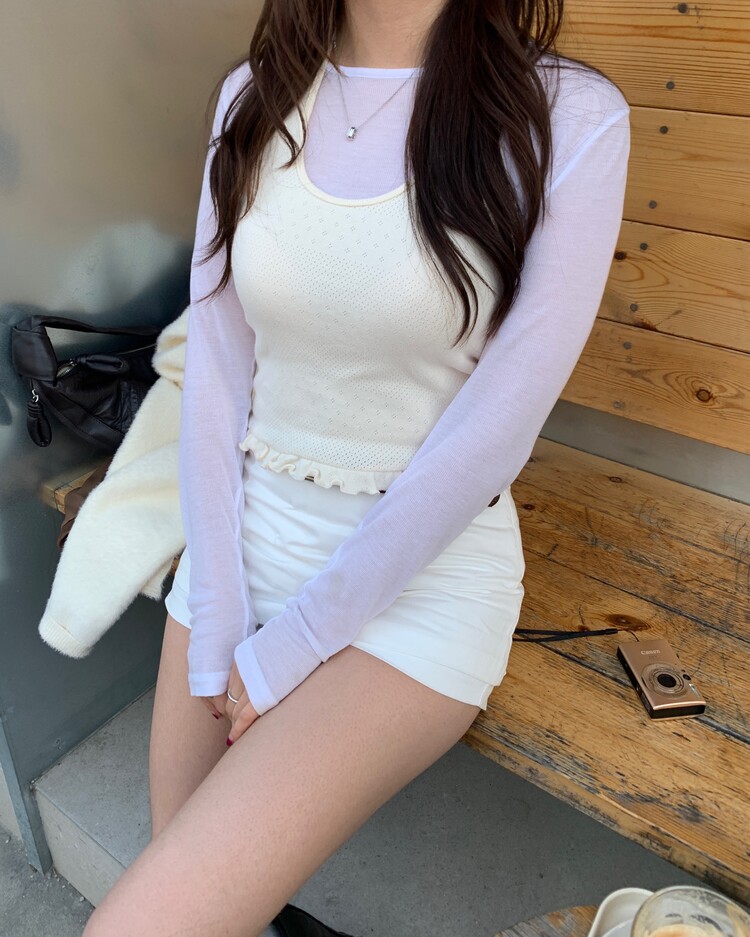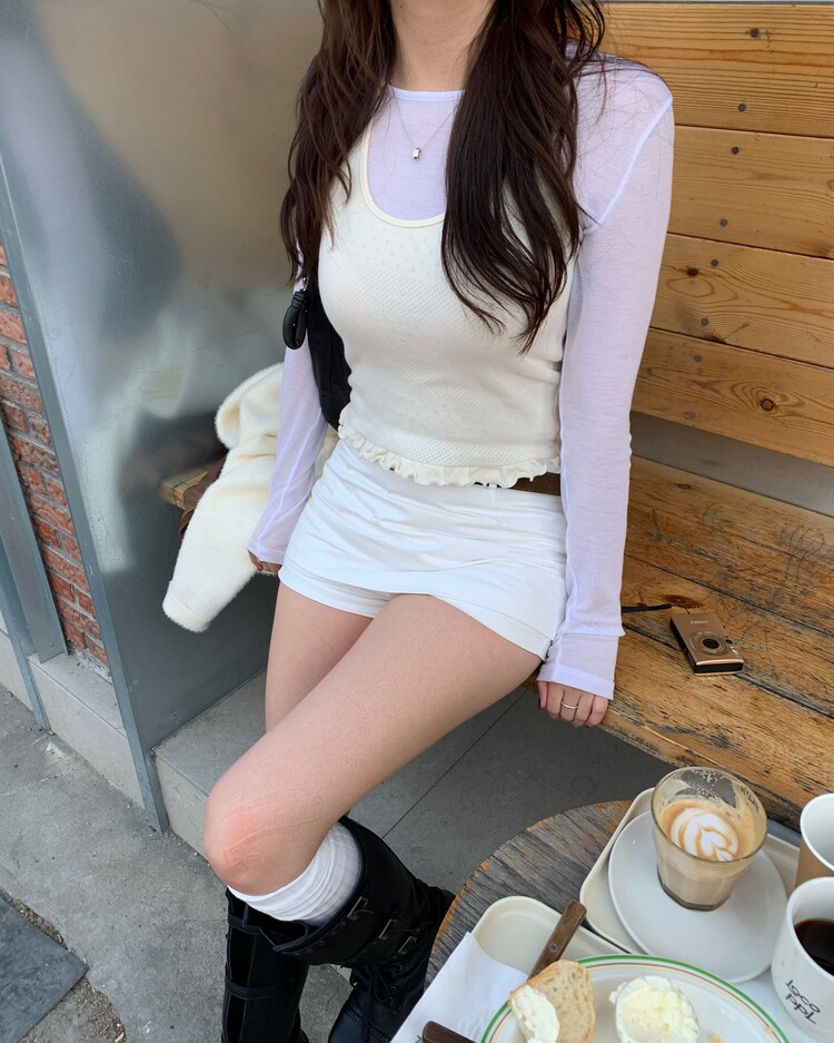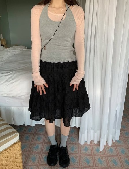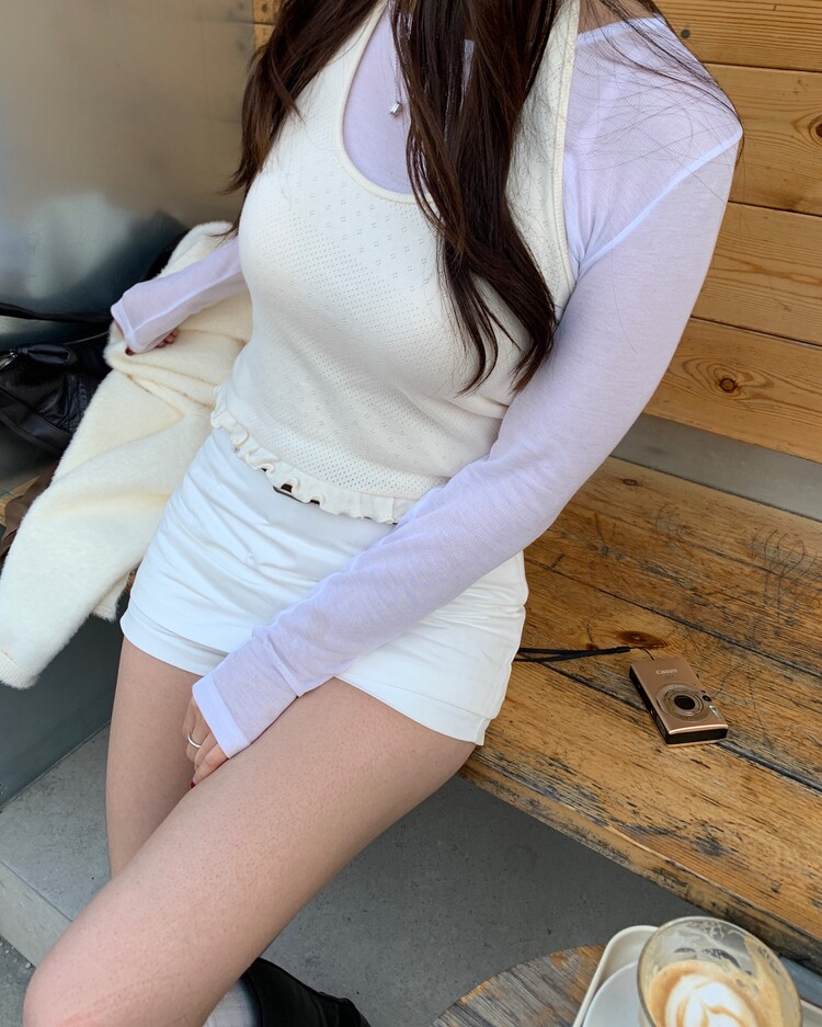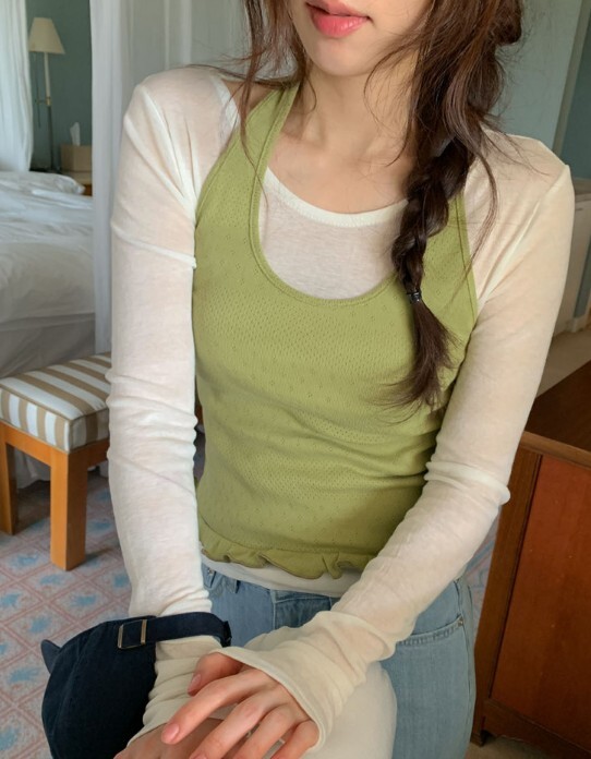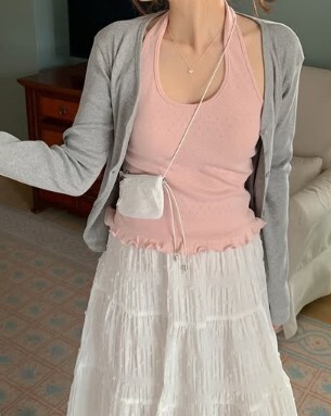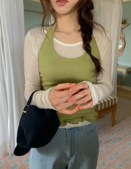 단독착용으로도 예쁘지만 오프숄더 이너&가디건 이너로도 추천드립니다.