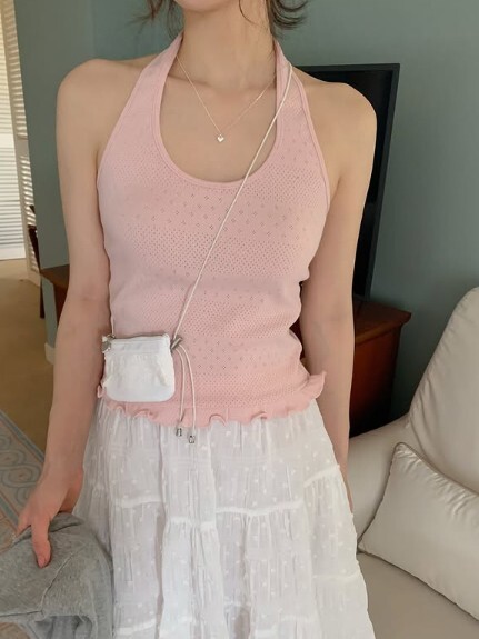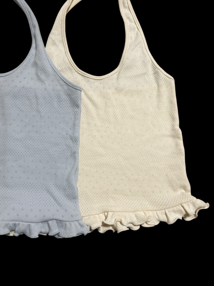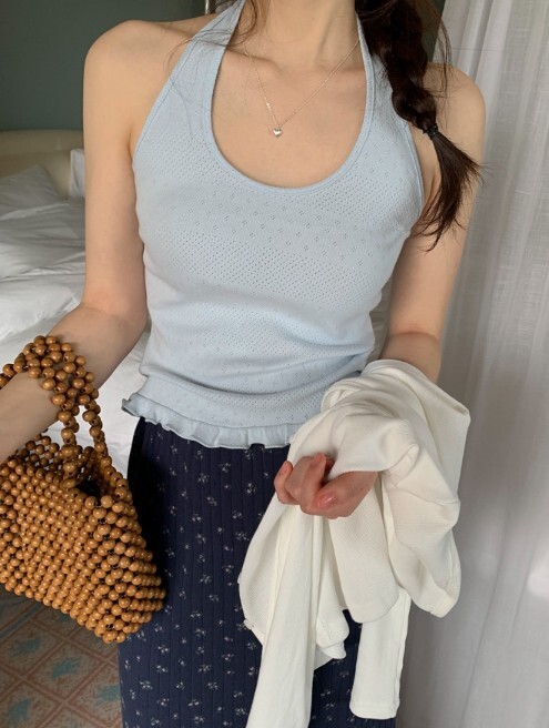 사랑스러운 아일렛 패턴 포인트의 홀터넥입니다.