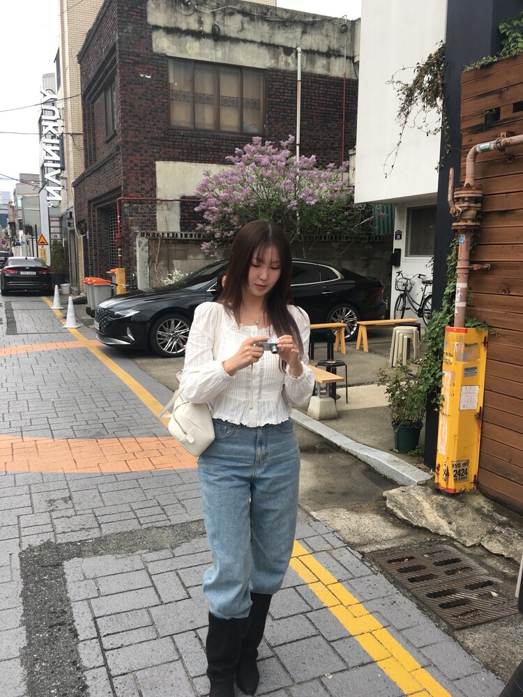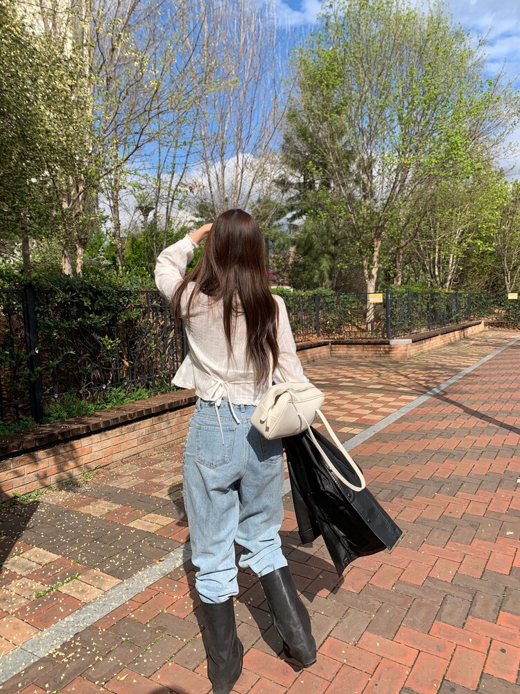 가벼운 소재감과 여유로운 실루엣으로 체형을 여리여리하게 커버해주고