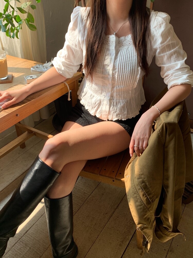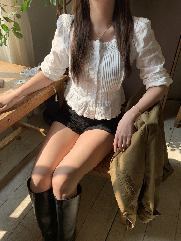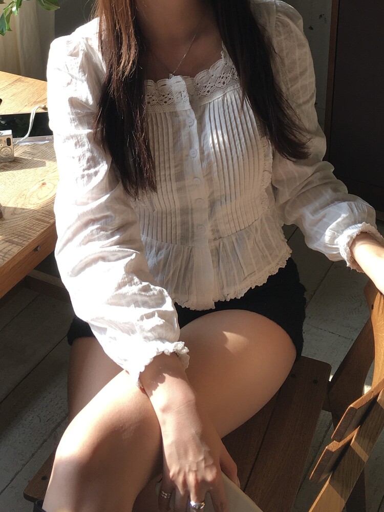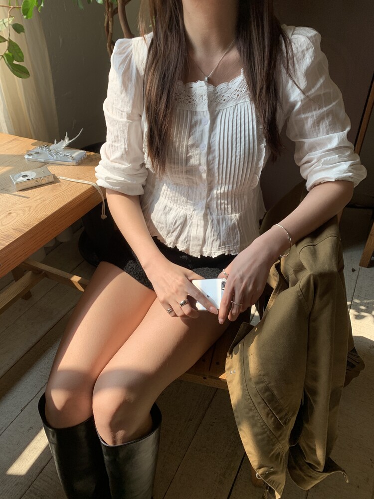 쇄골라인을 예쁘게 드러내주는 스퀘어넥 블라우스로
