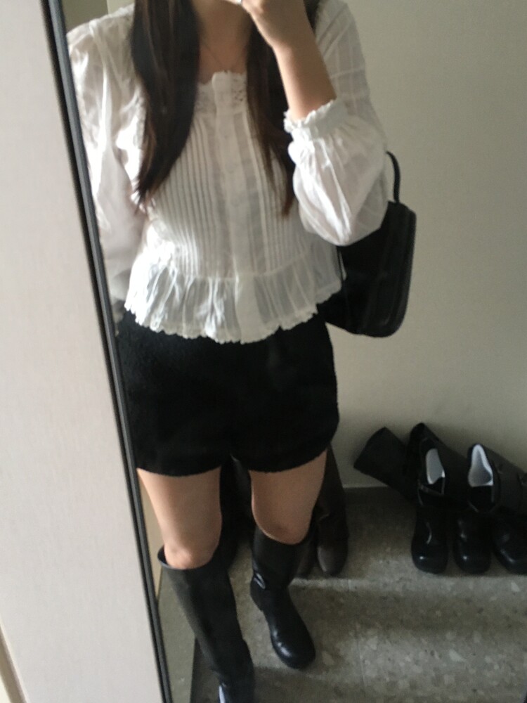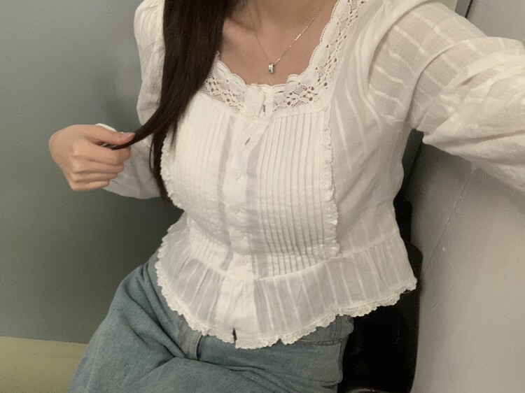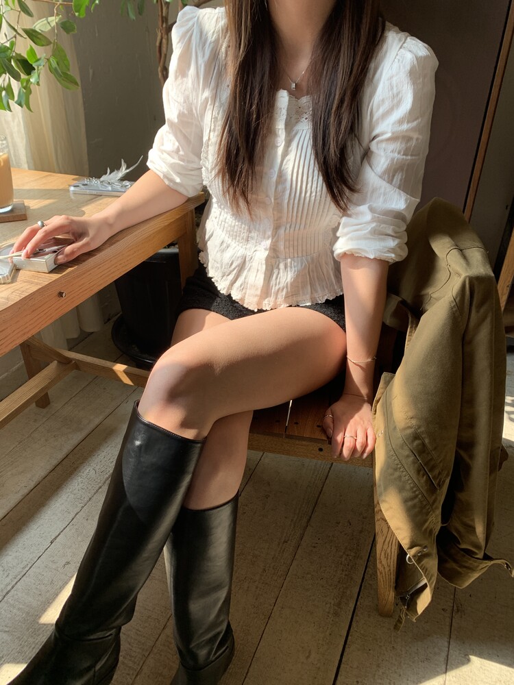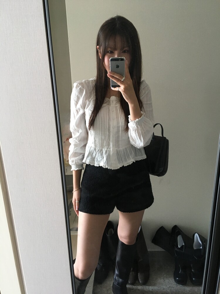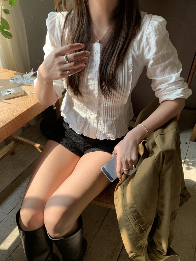 쇄골라인을 예쁘게 드러내주는 스퀘어넥 블라우스로