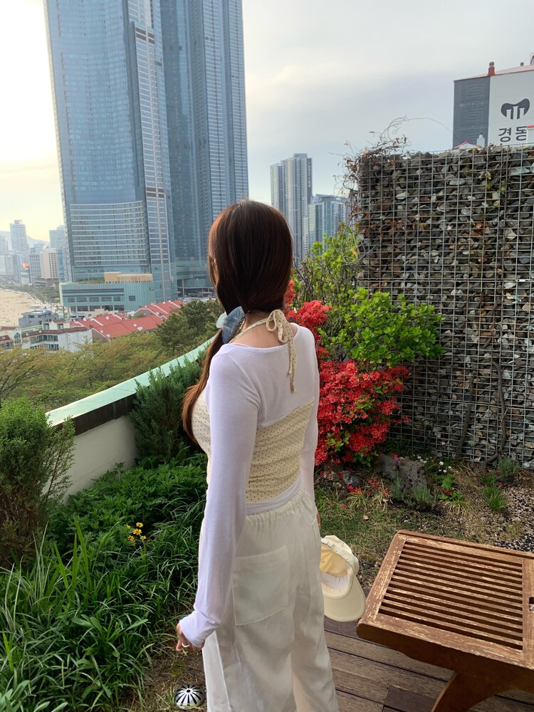 넥라인 홀터넥 리본은 뒤에서보아도 사랑스러운 포인트가 되어준답니다.