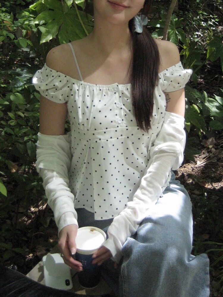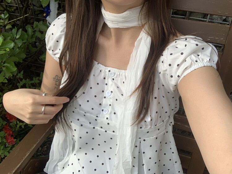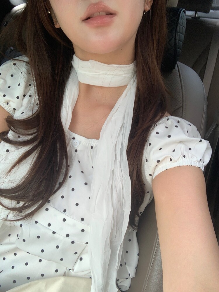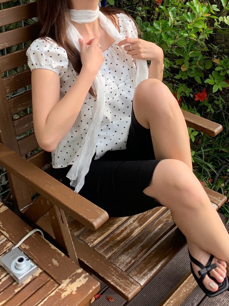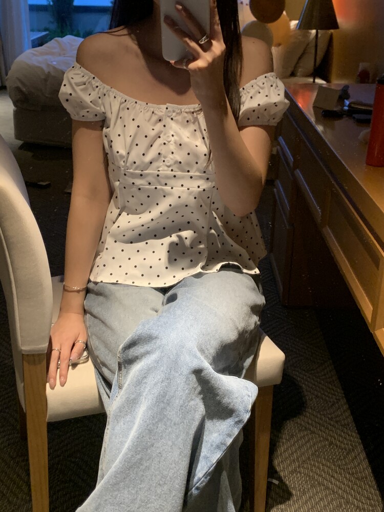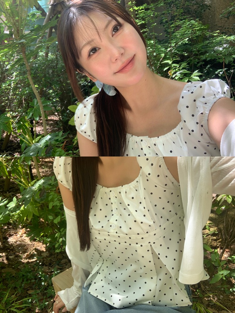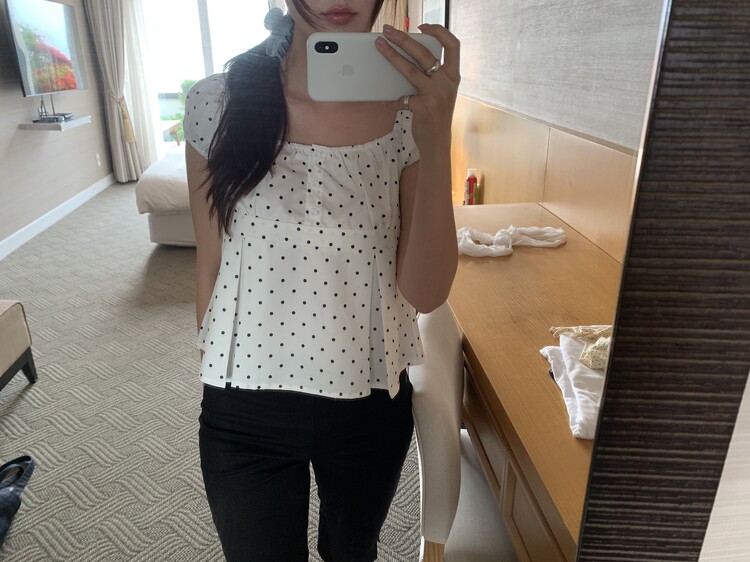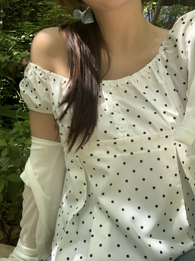 사랑스러운 디테일을 가득 담은도트 패턴의 스퀘어넥 블라우스입니다.