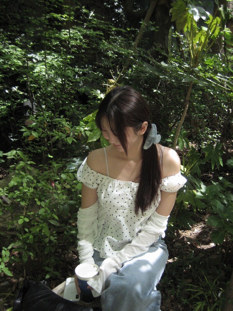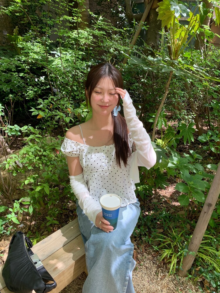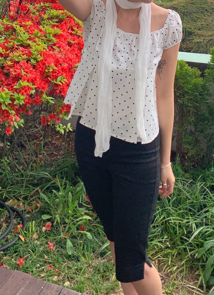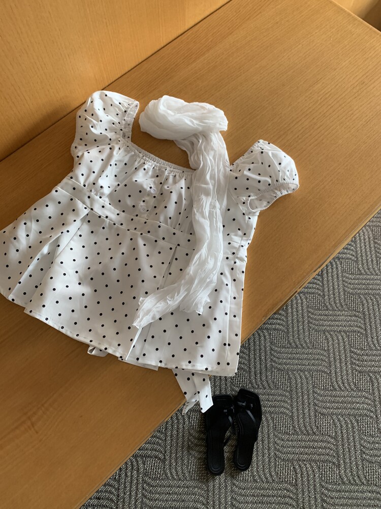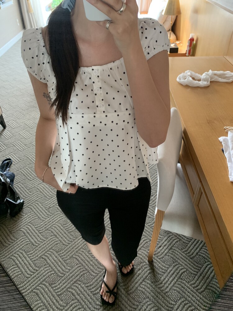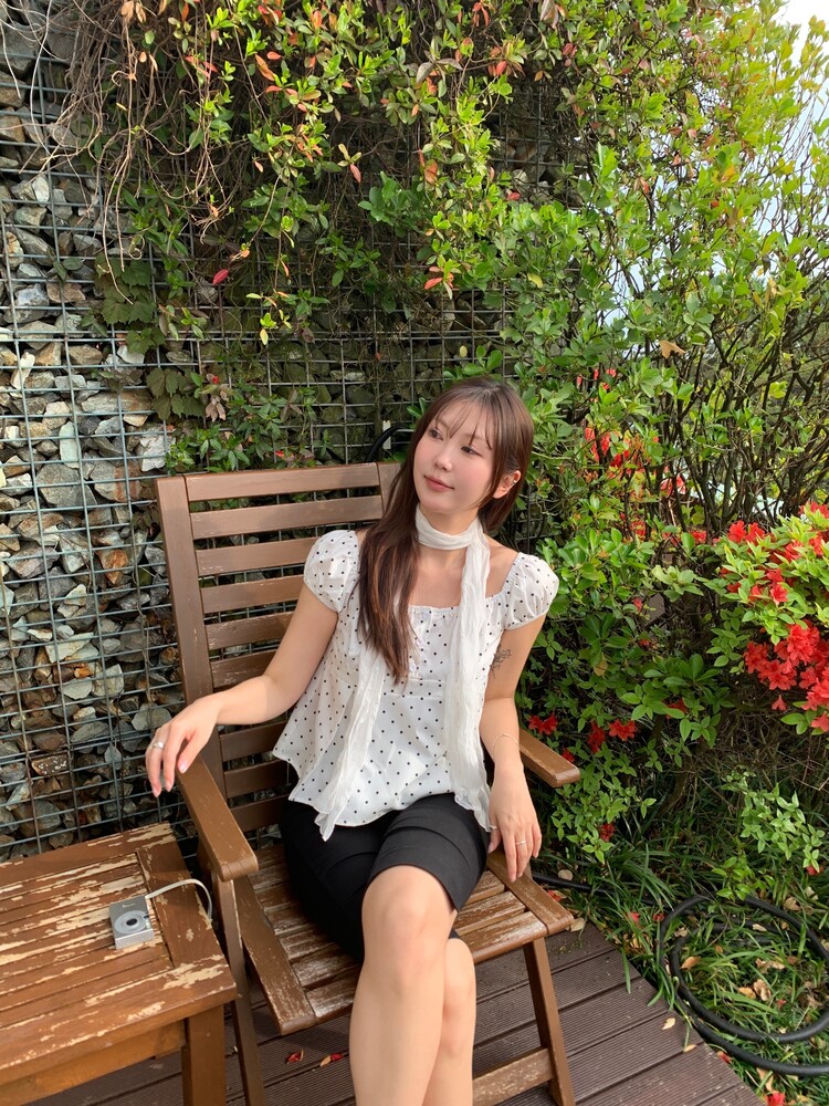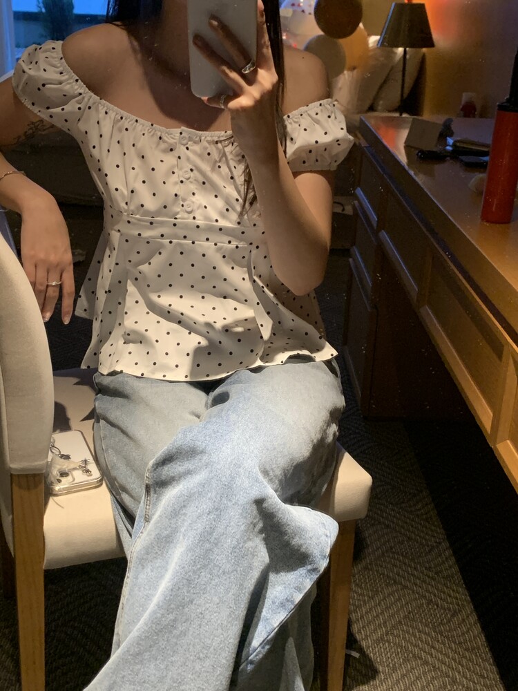 사랑스러운 디테일을 가득 담은도트 패턴의 스퀘어넥 블라우스입니다.