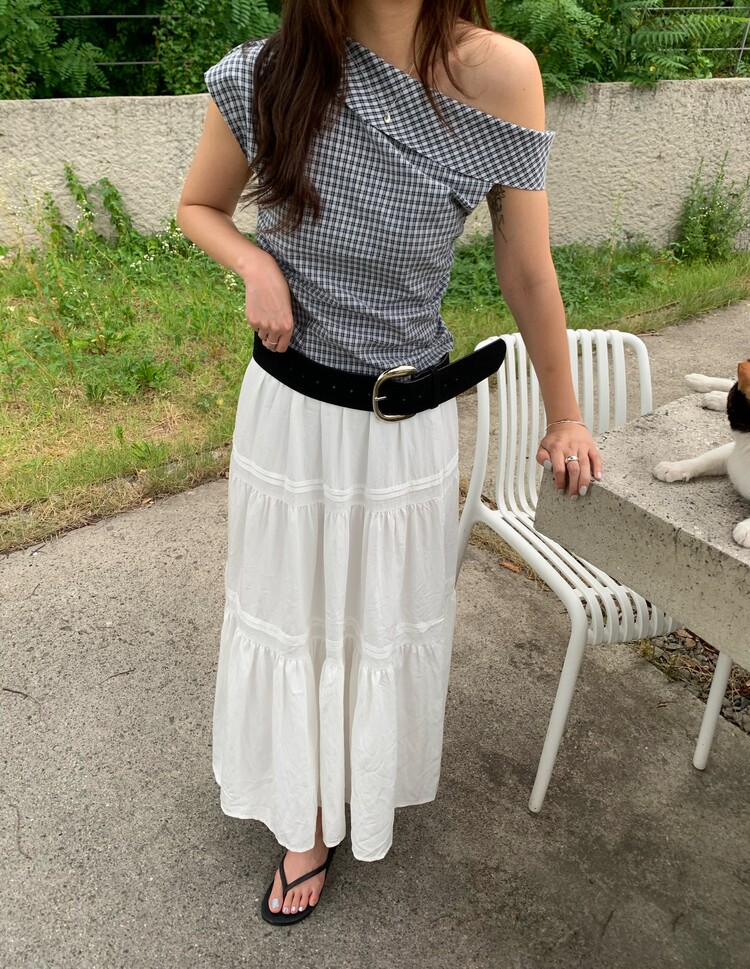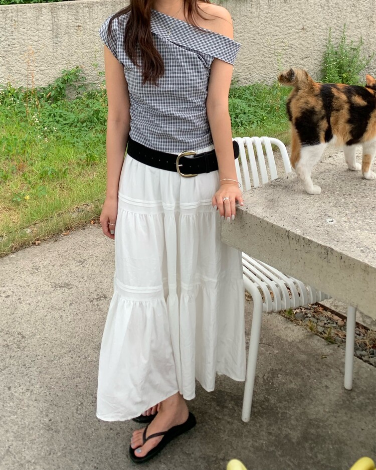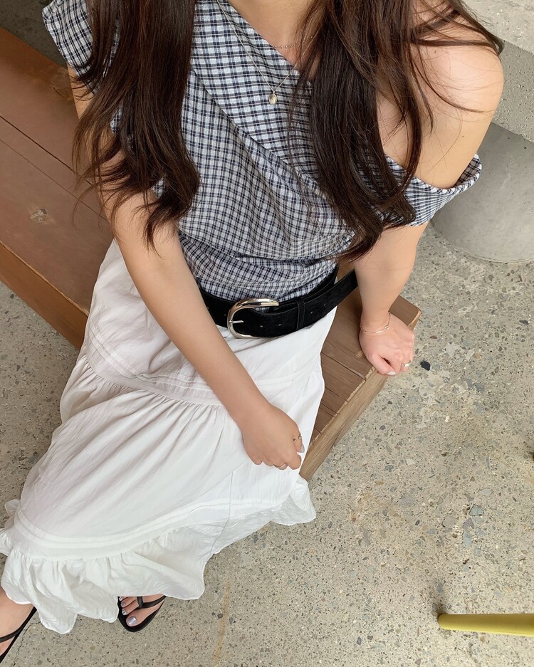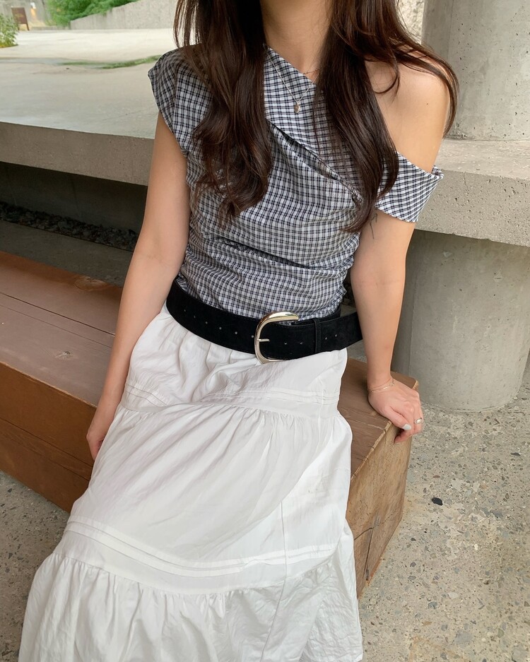 흔하지 않은 언발 숄더라인으로