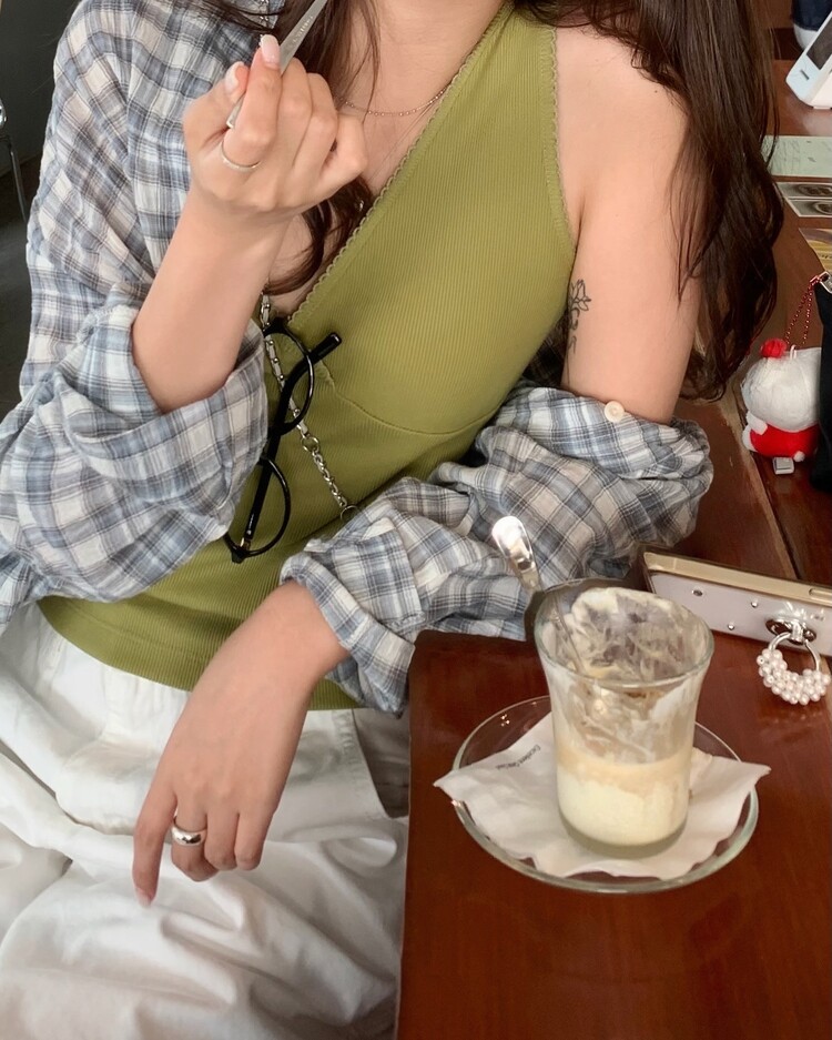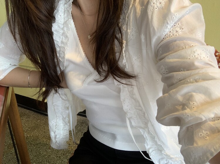 가디건이나 셔츠 안 이너로 활용하기 좋답니다.