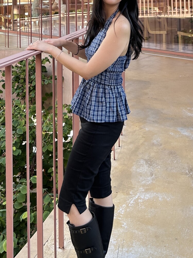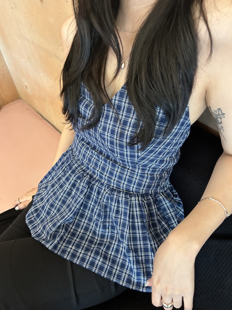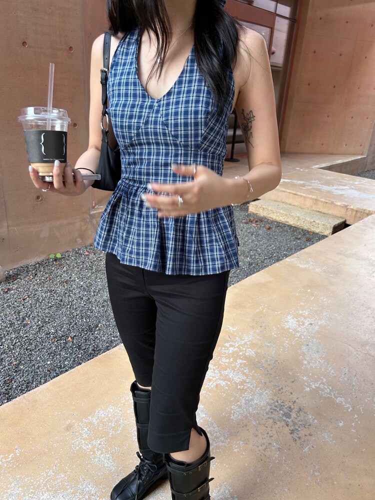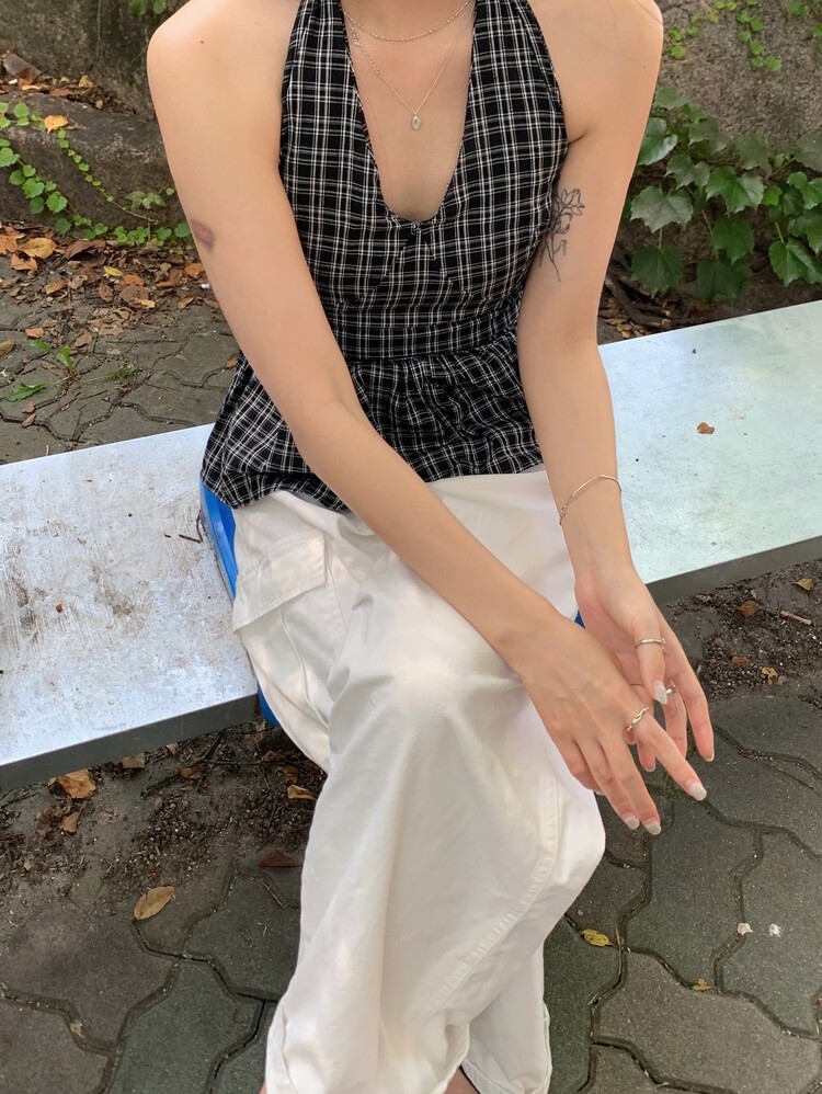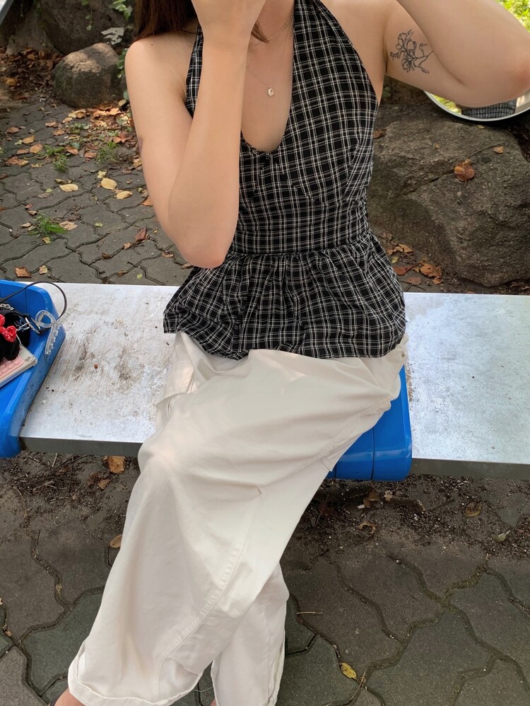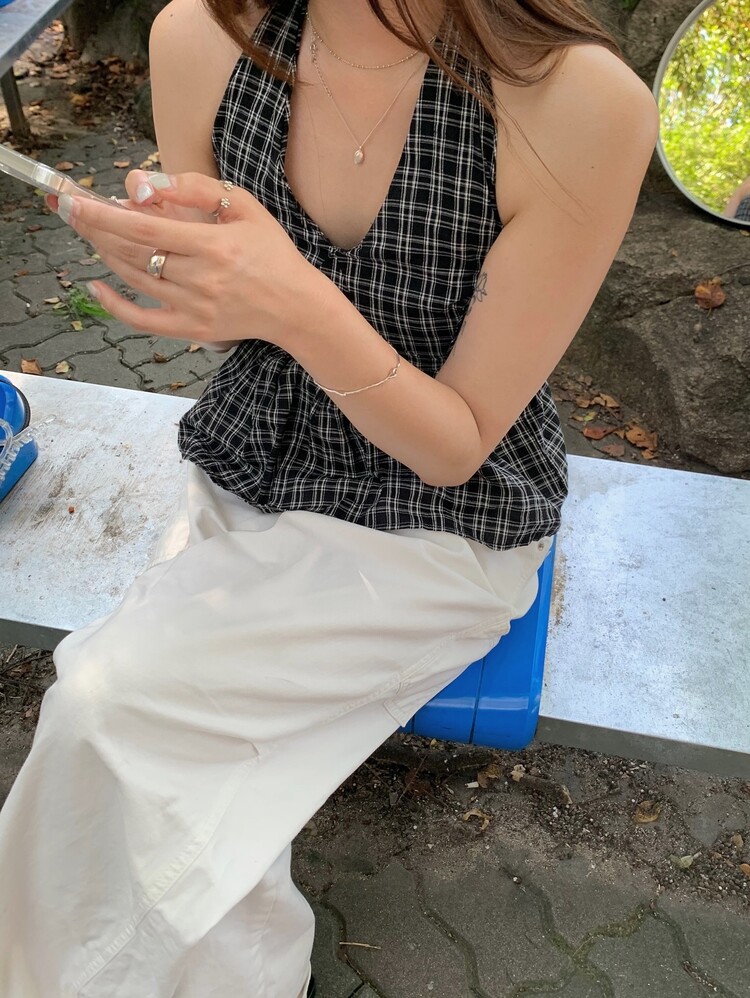 체크패턴 홀터넥 블라우스입니다.