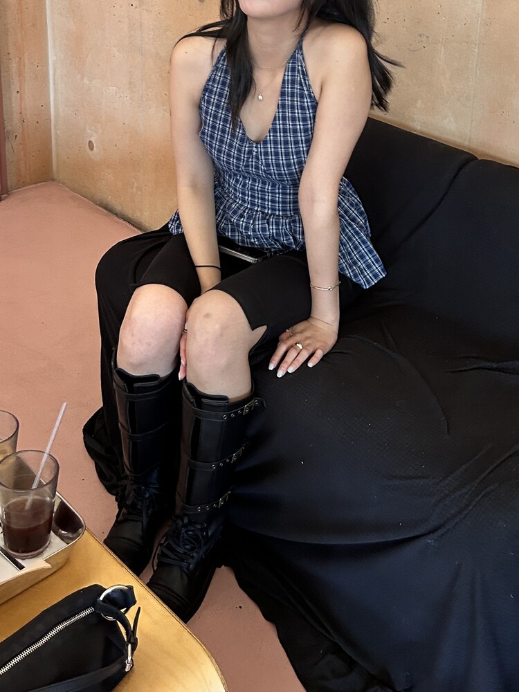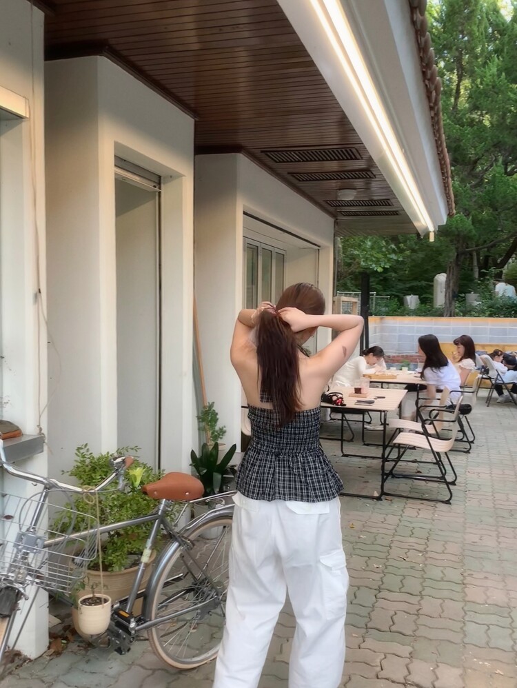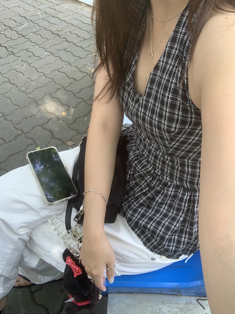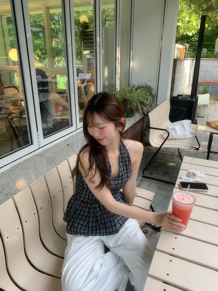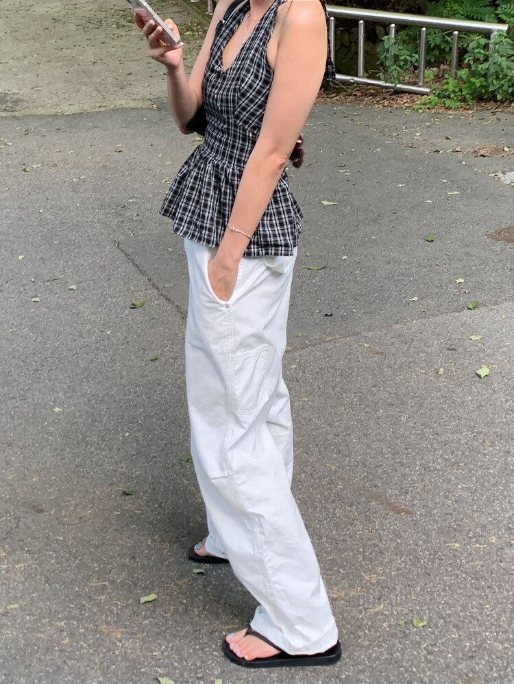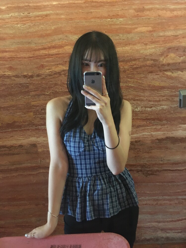 체크패턴 홀터넥 블라우스입니다.