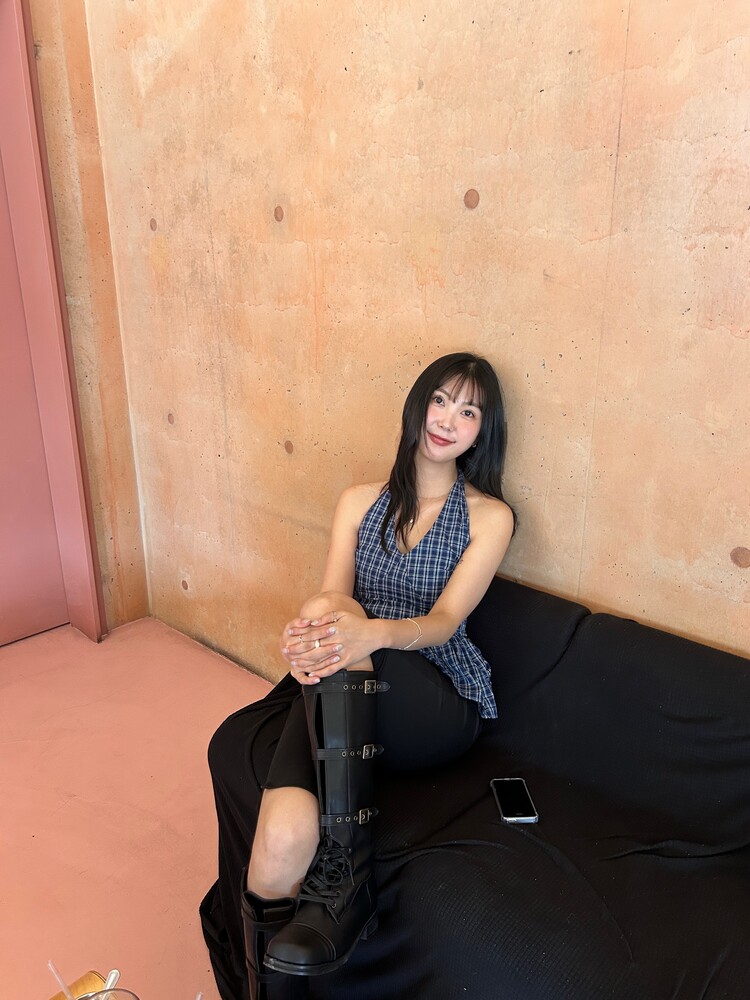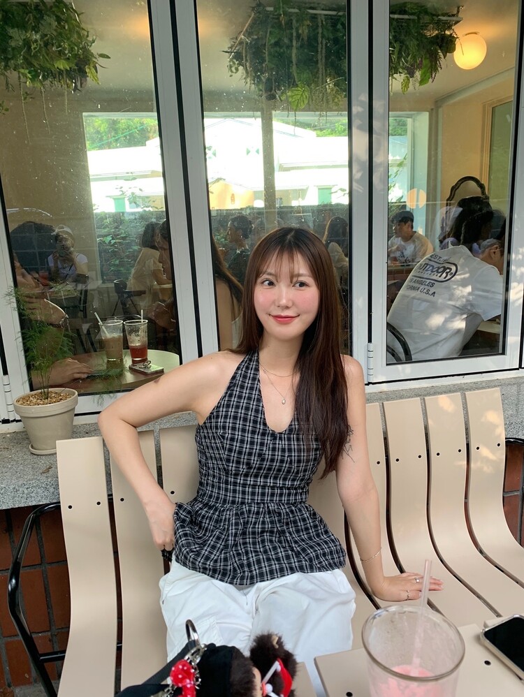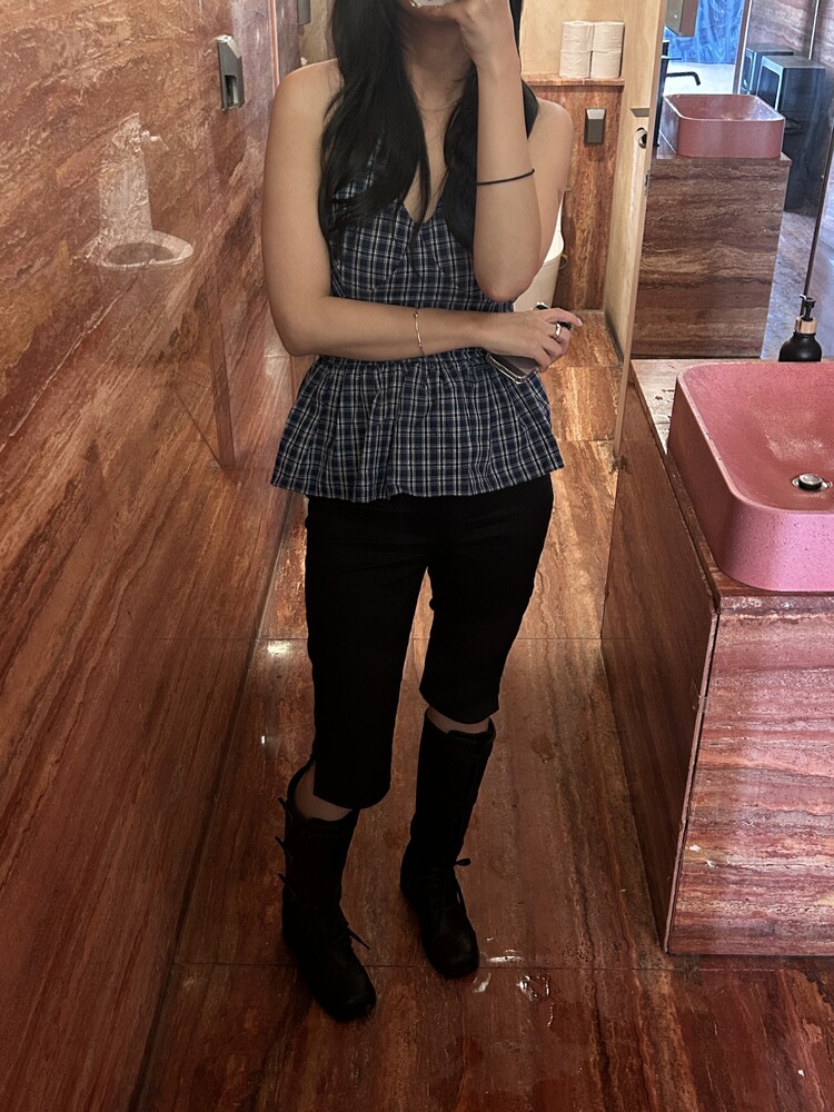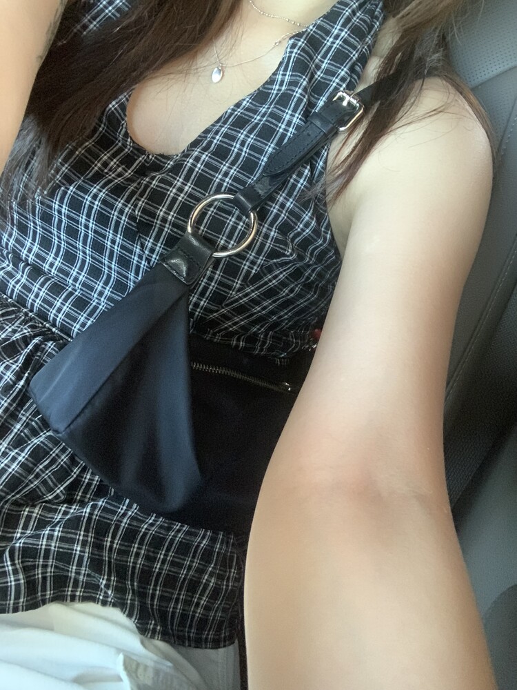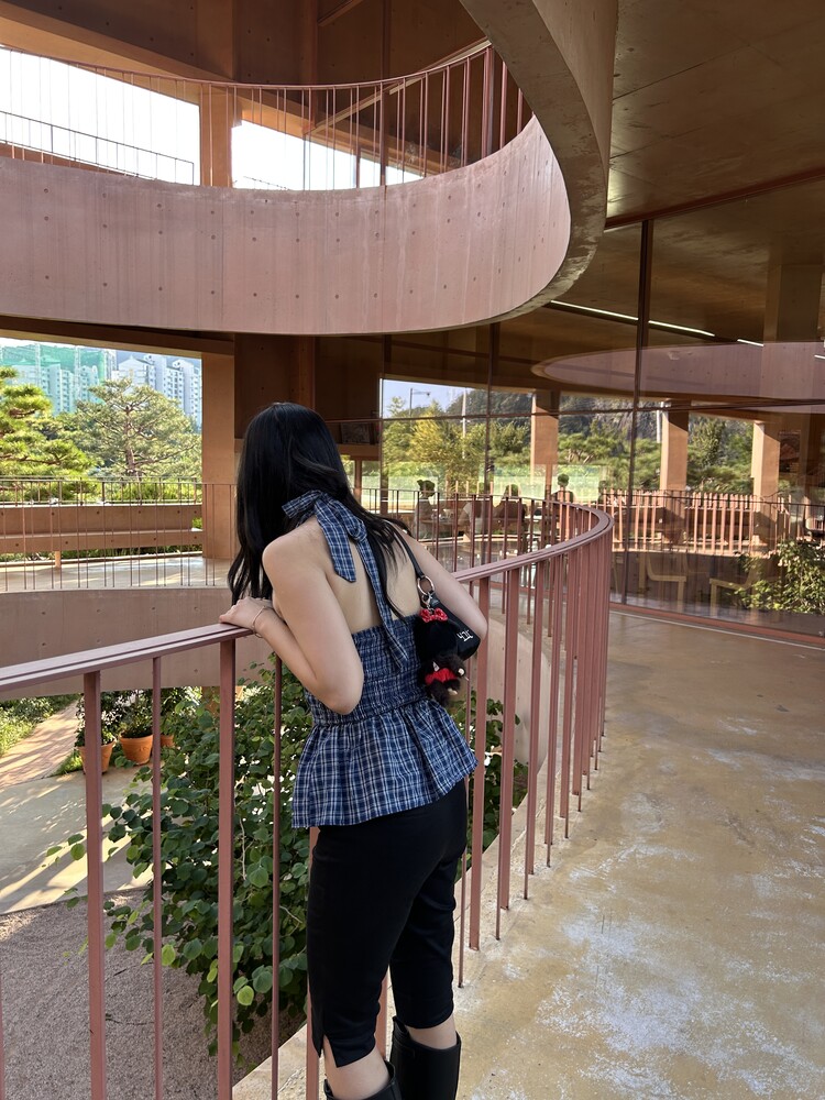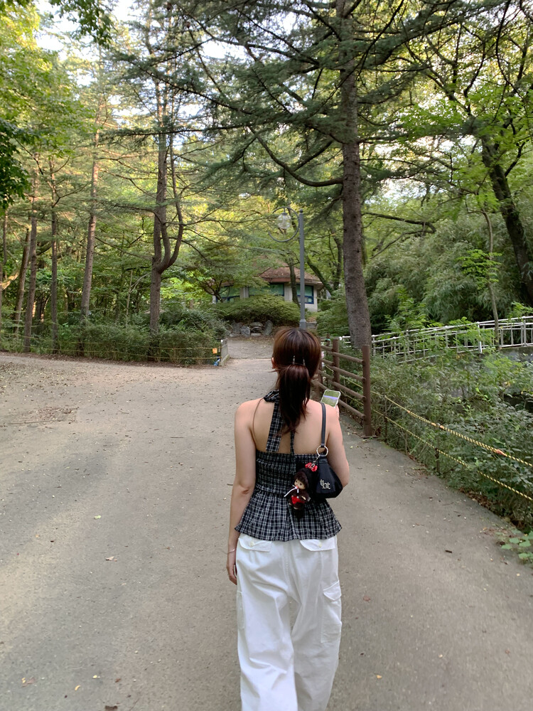 체크패턴 홀터넥 블라우스입니다.