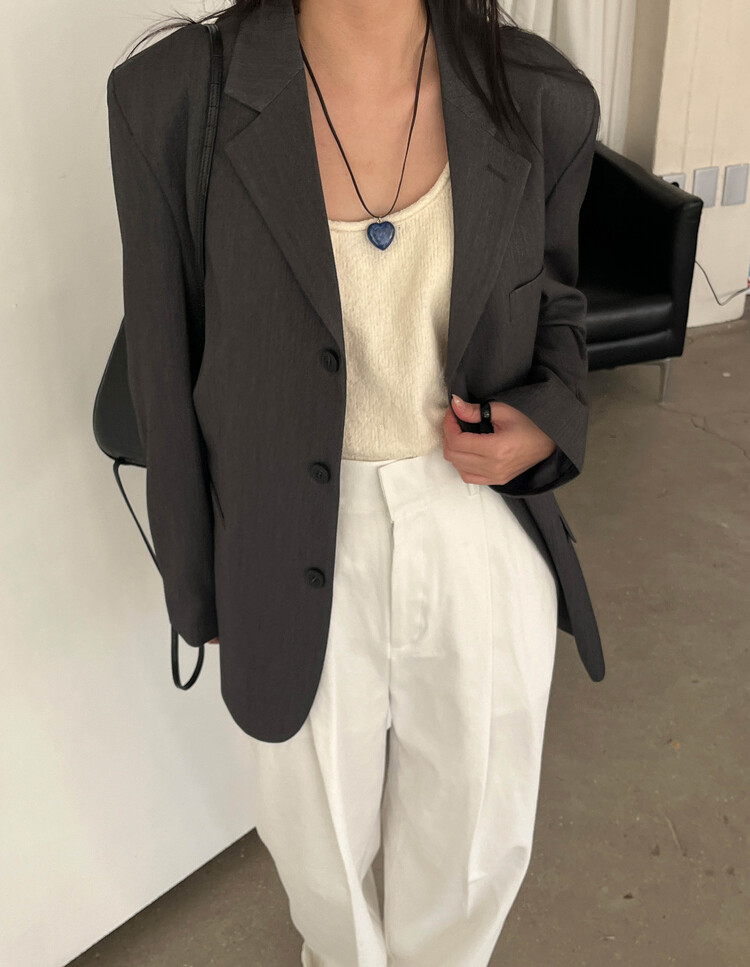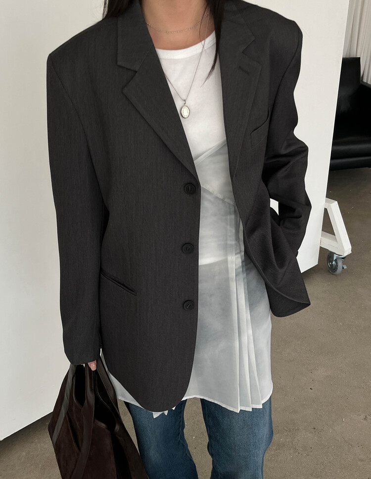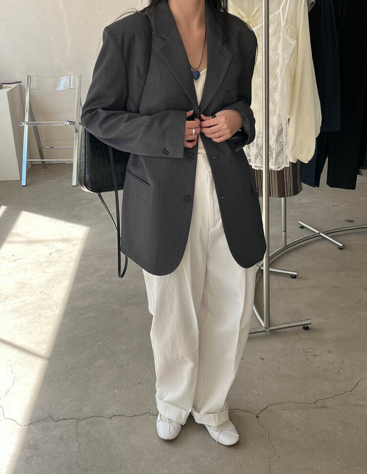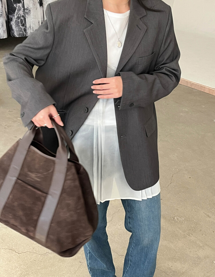 신축성 없음 / 두께감 보통 / 안감 있음 / 어깨패드 있음 / 주머니 있음