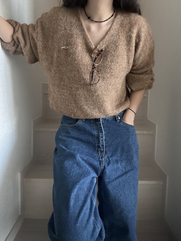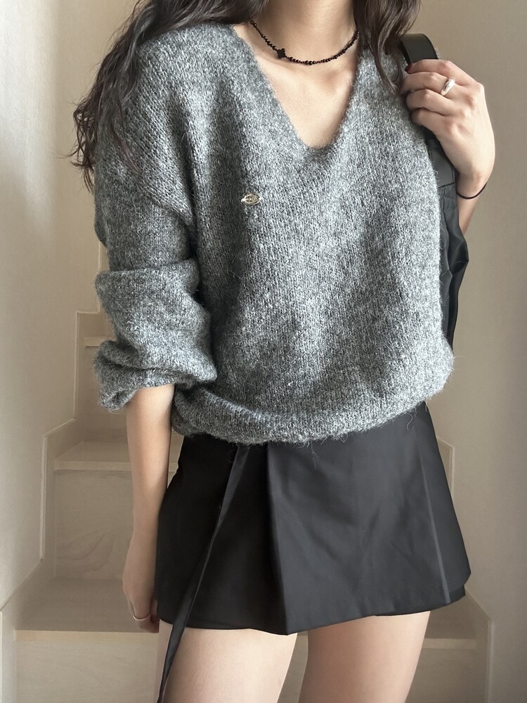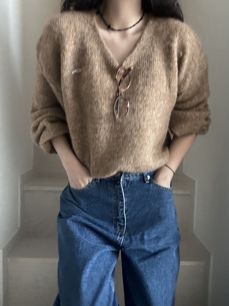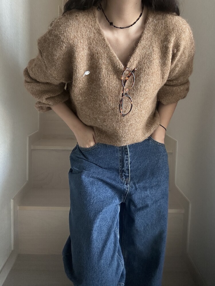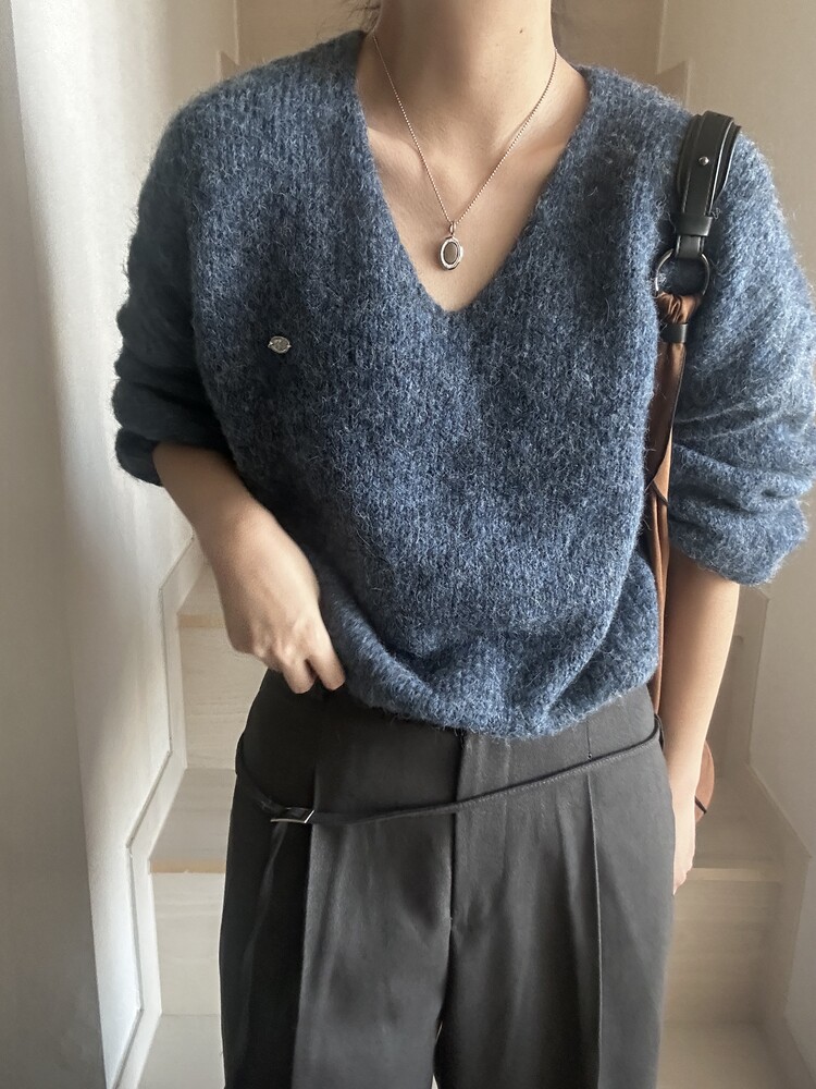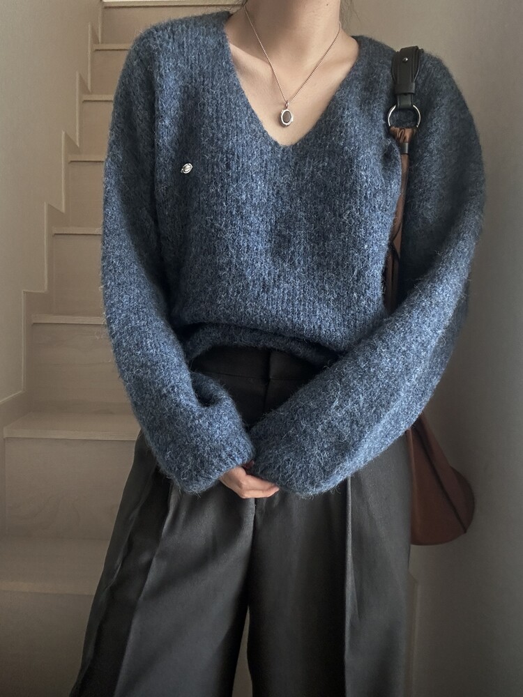 루즈한 핏감의 포근하고 따뜻한 브이넥니트입니다.