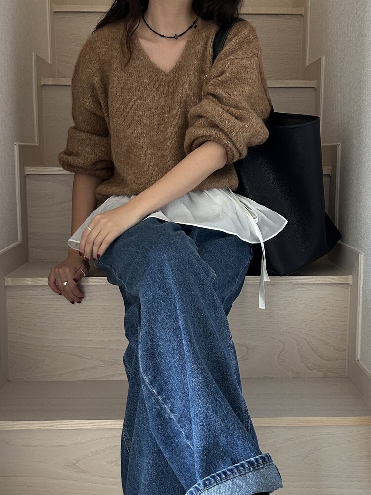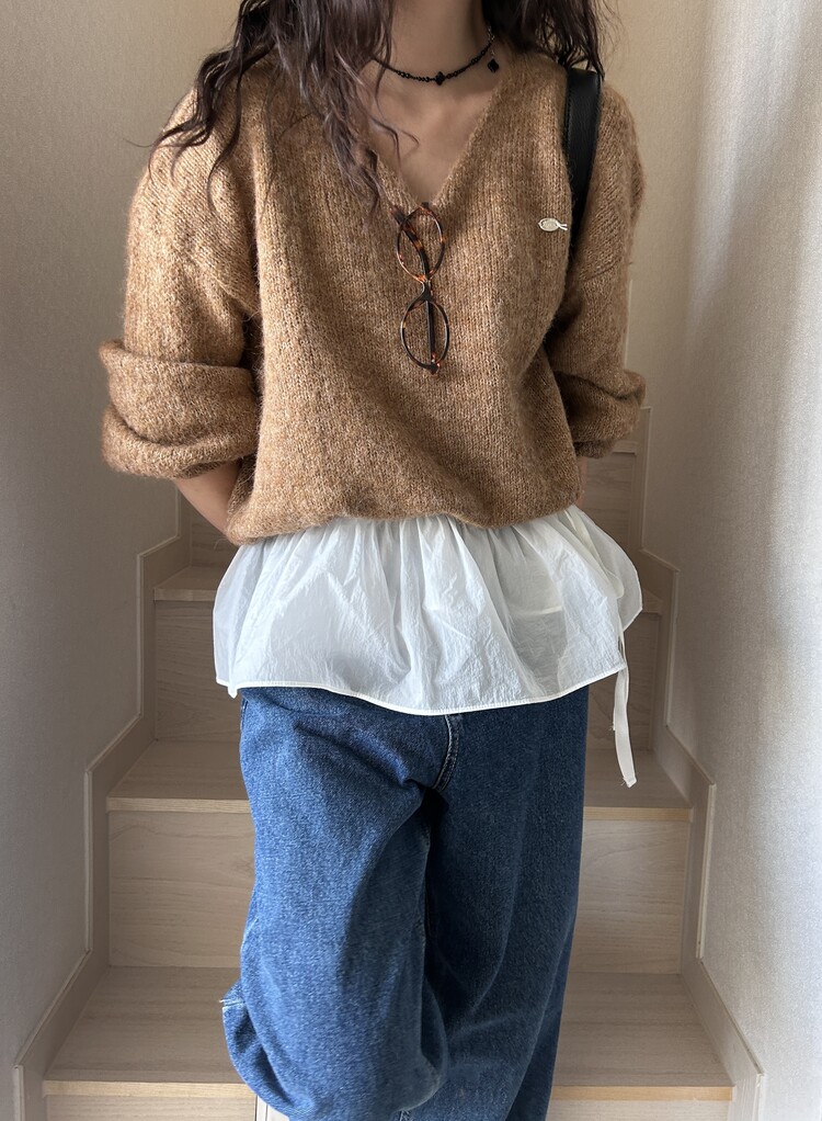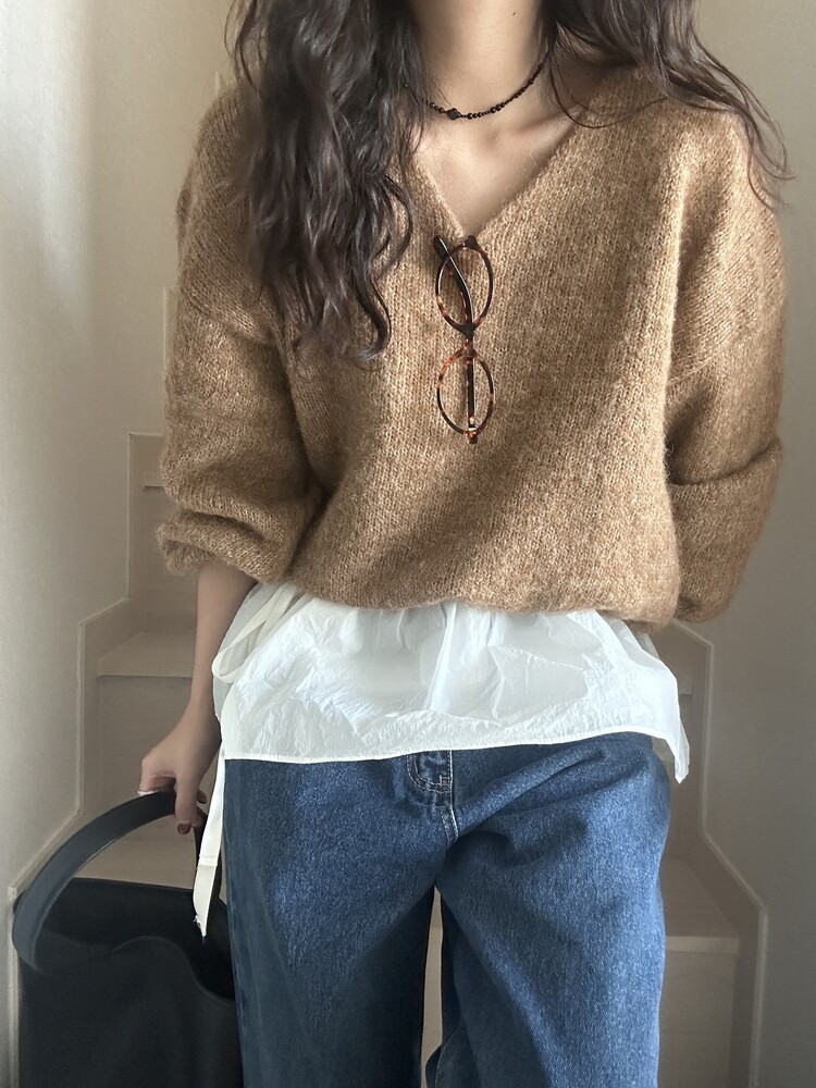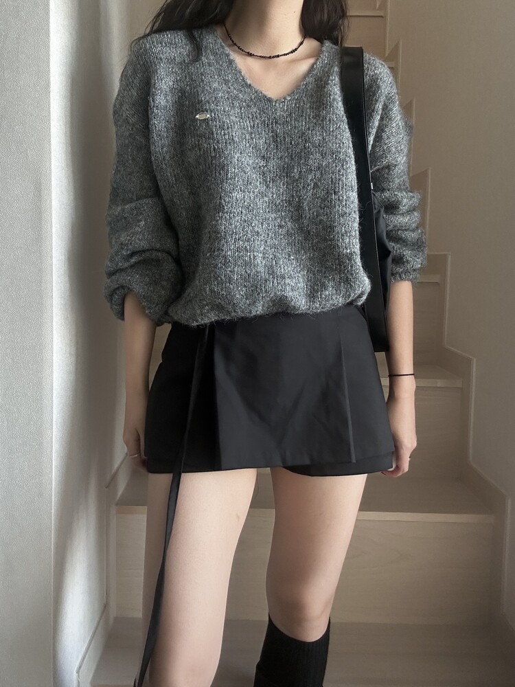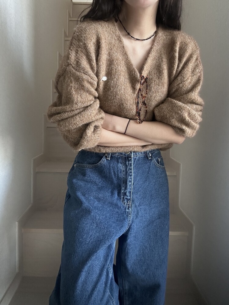 루즈한 핏감의 포근하고 따뜻한 브이넥니트입니다.