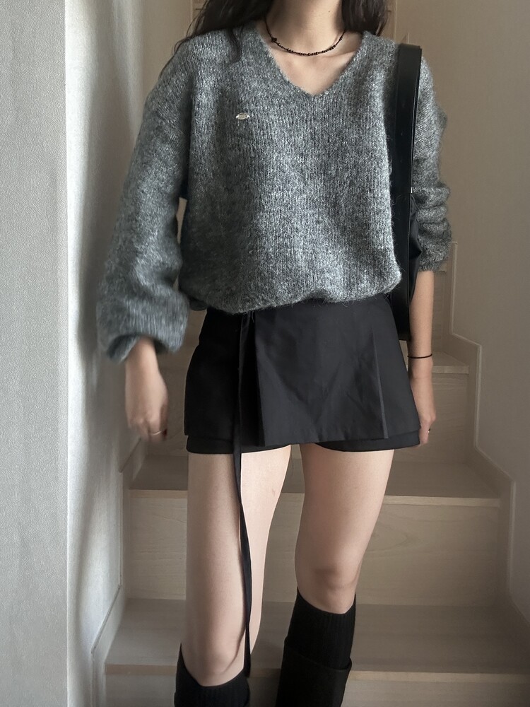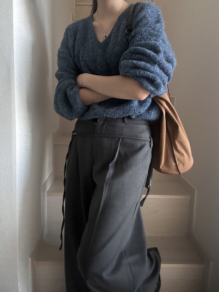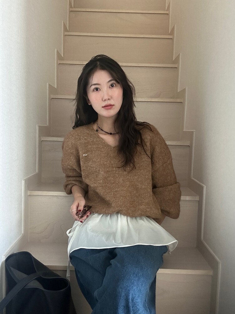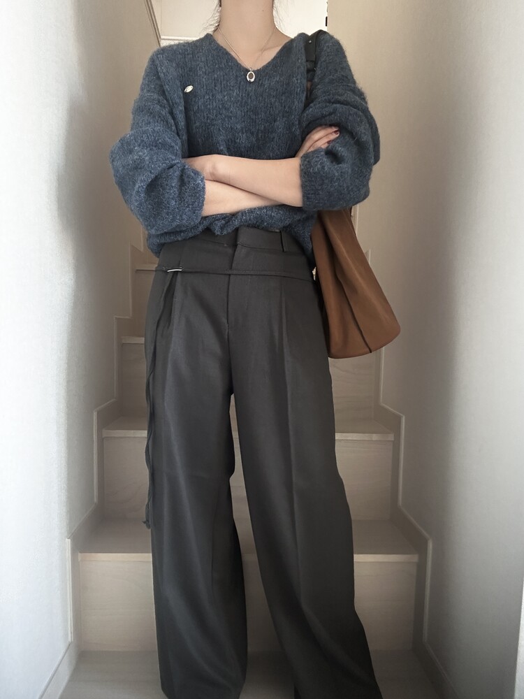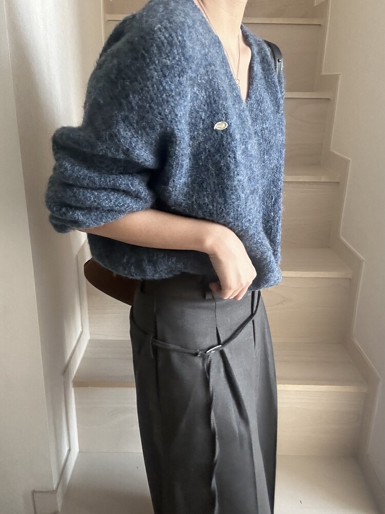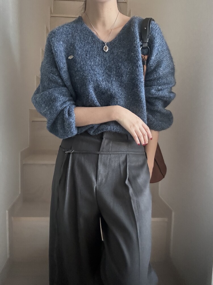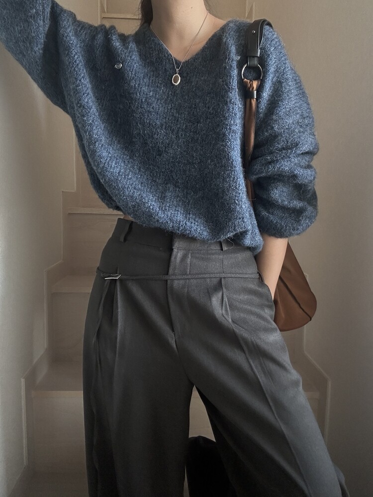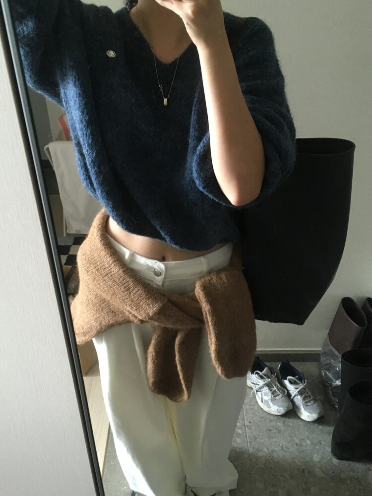 밋밋함을 덜어주고 니트하나로도 멋스러운 꾸안꾸 느낌을 낼 수 있답니다.