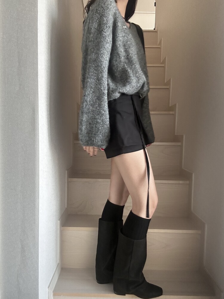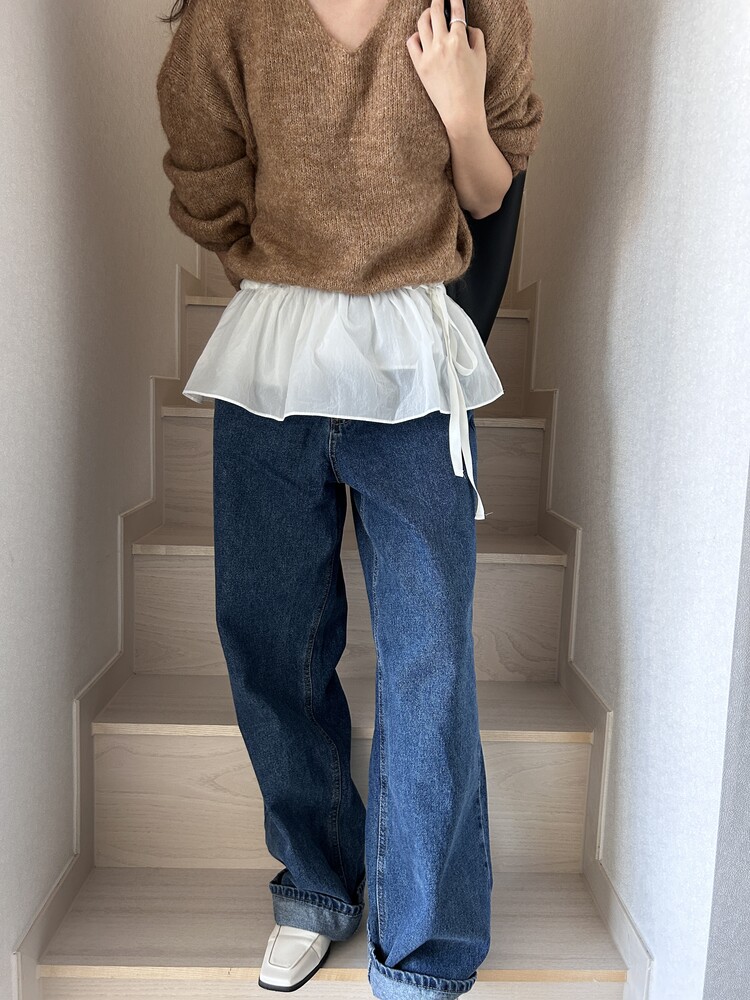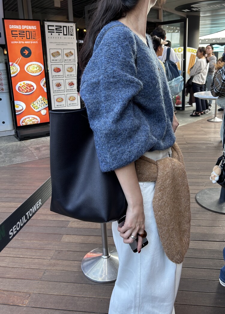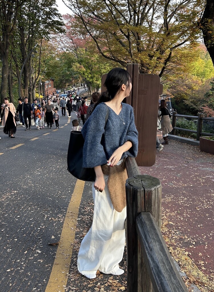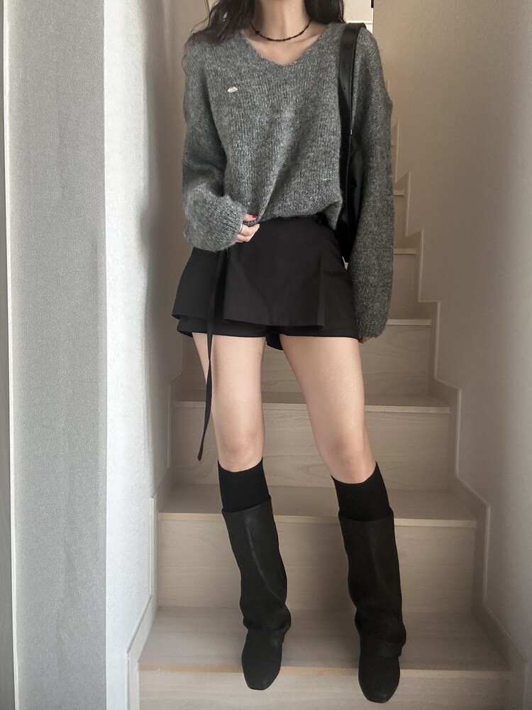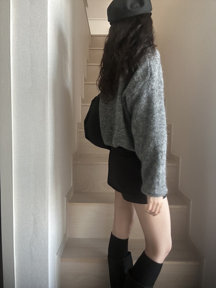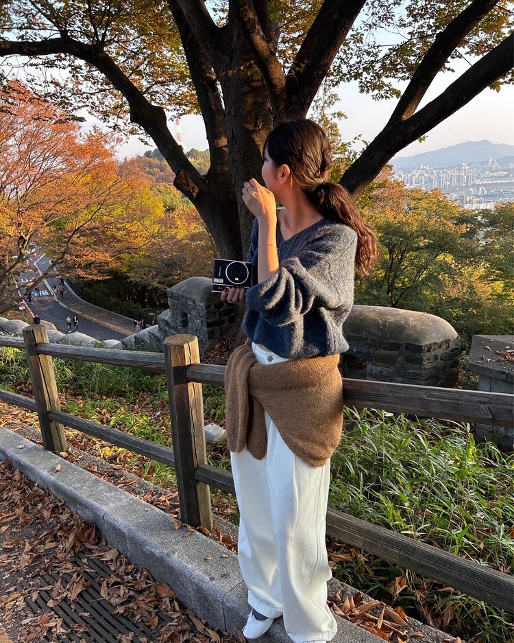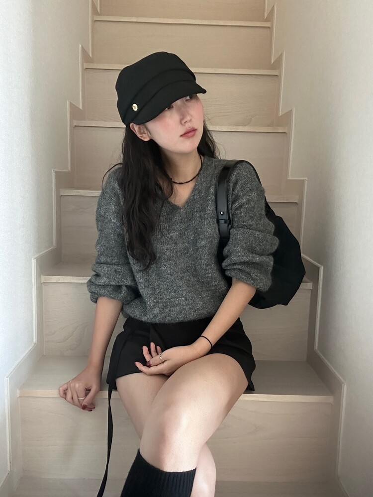 밋밋함을 덜어주고 니트하나로도 멋스러운 꾸안꾸 느낌을 낼 수 있답니다.