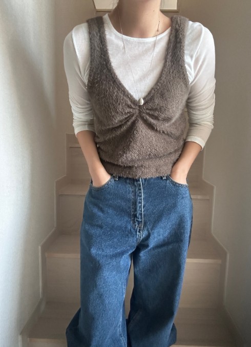 러블리한 무드가 느껴지는 루즈한 핏감의 포인트 베스트로