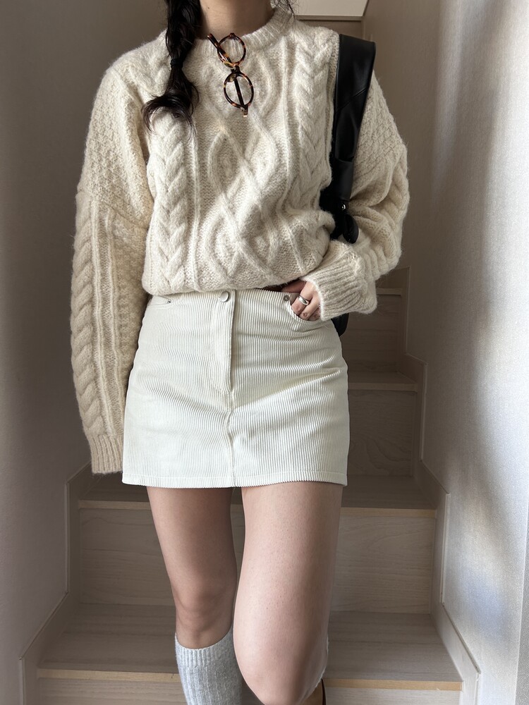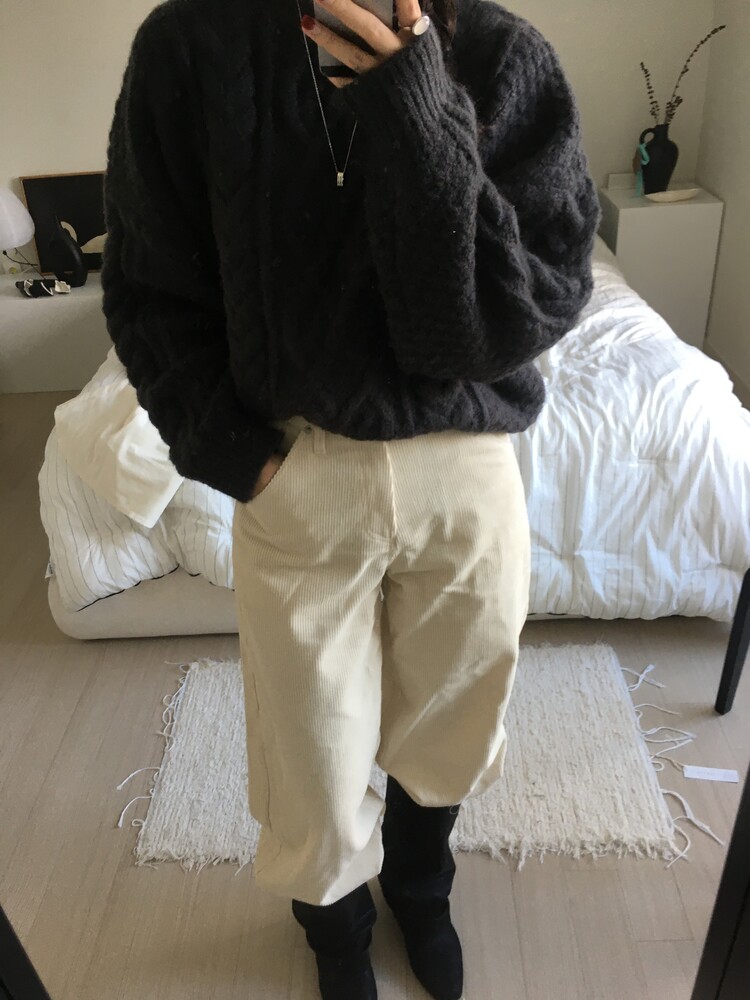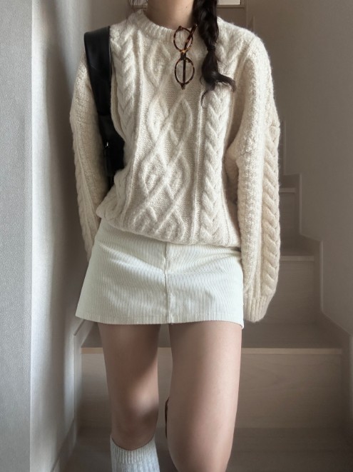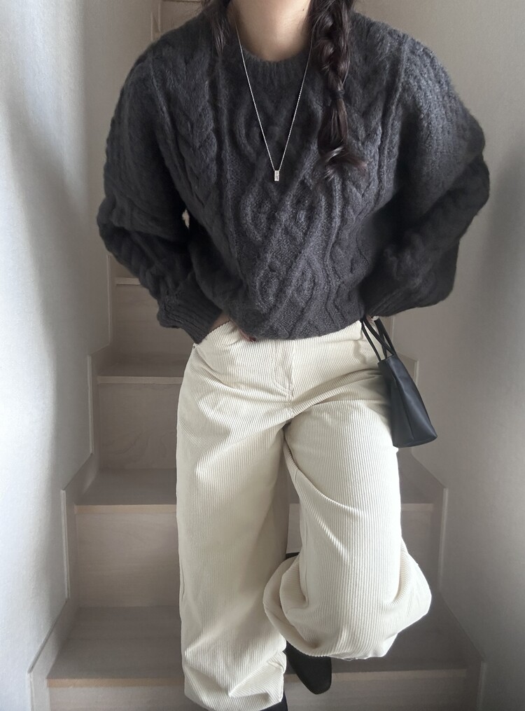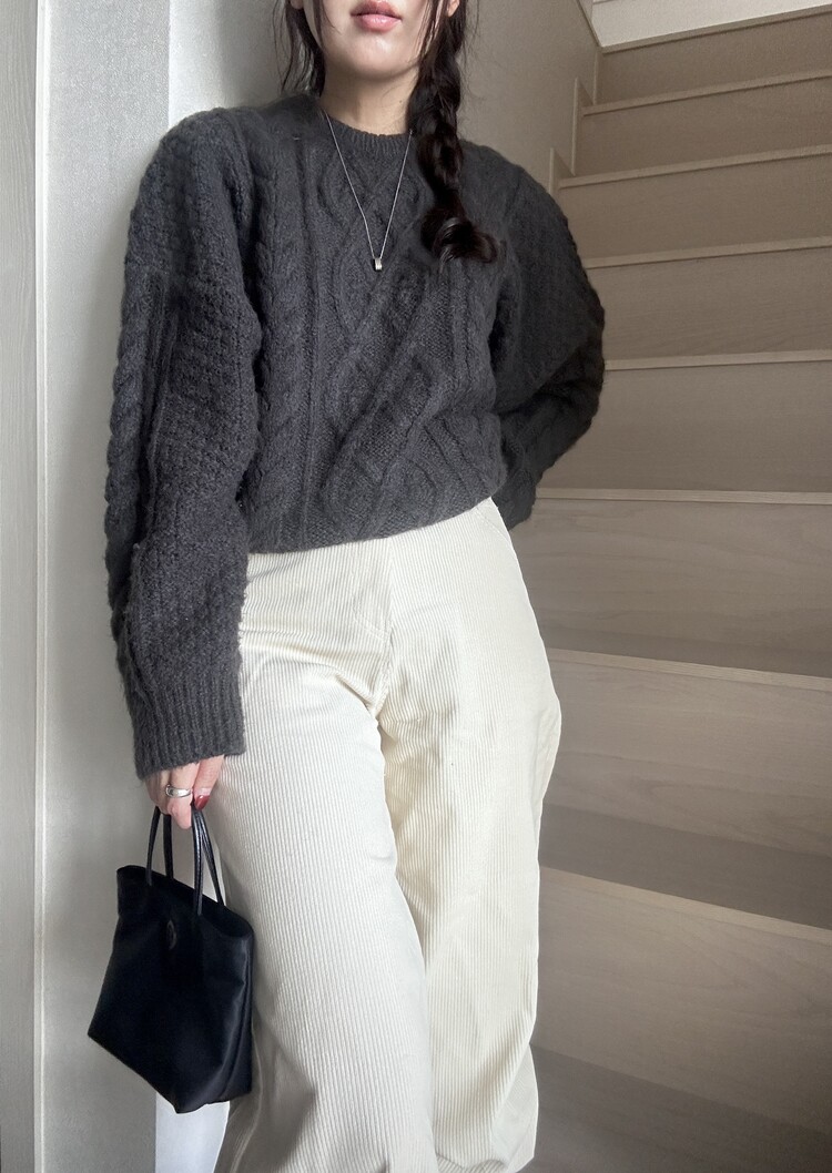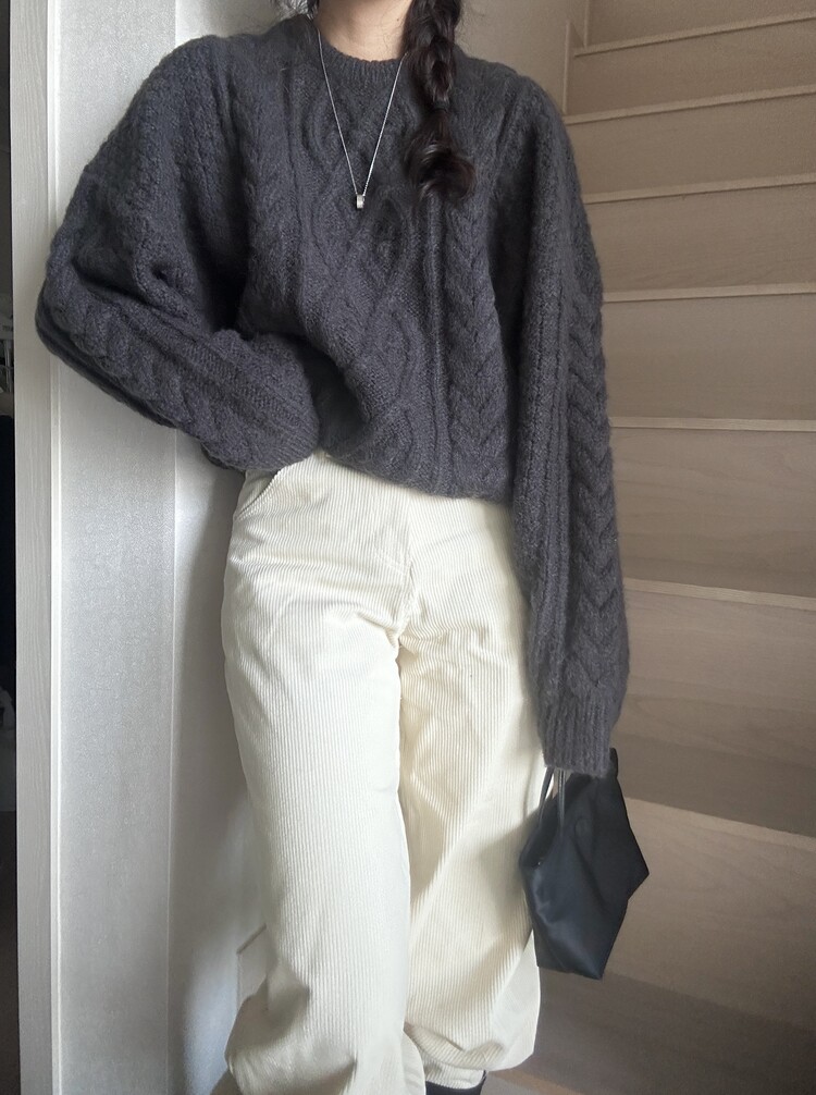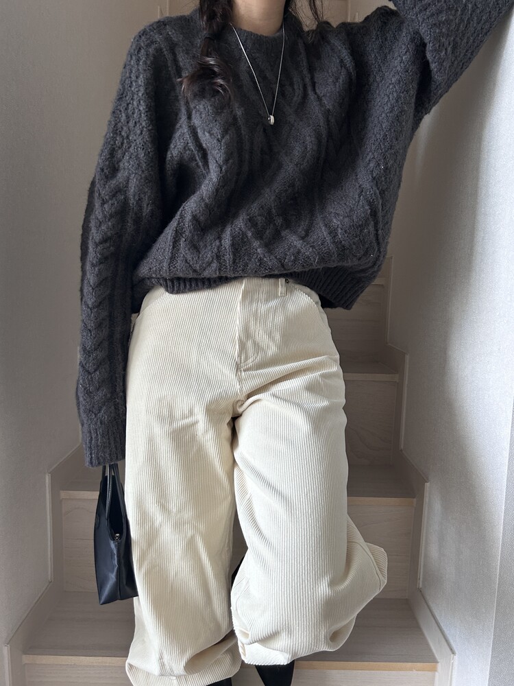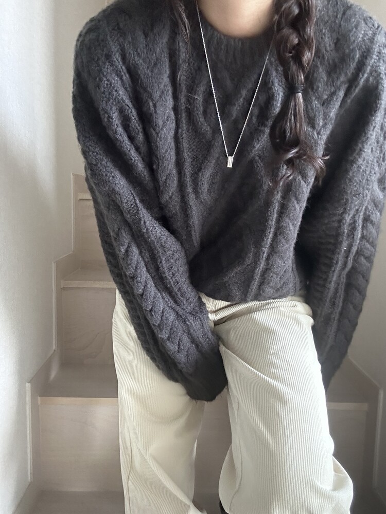 겨울시즌 빠질 수 없는 꽈베기짜임의 울 니트입니다.