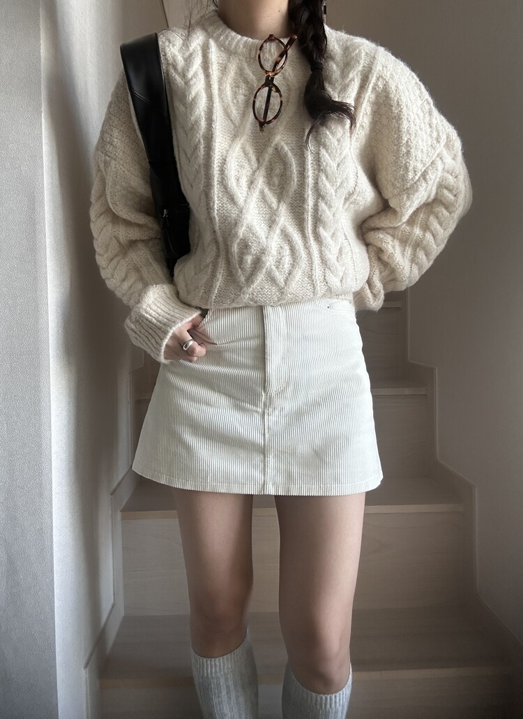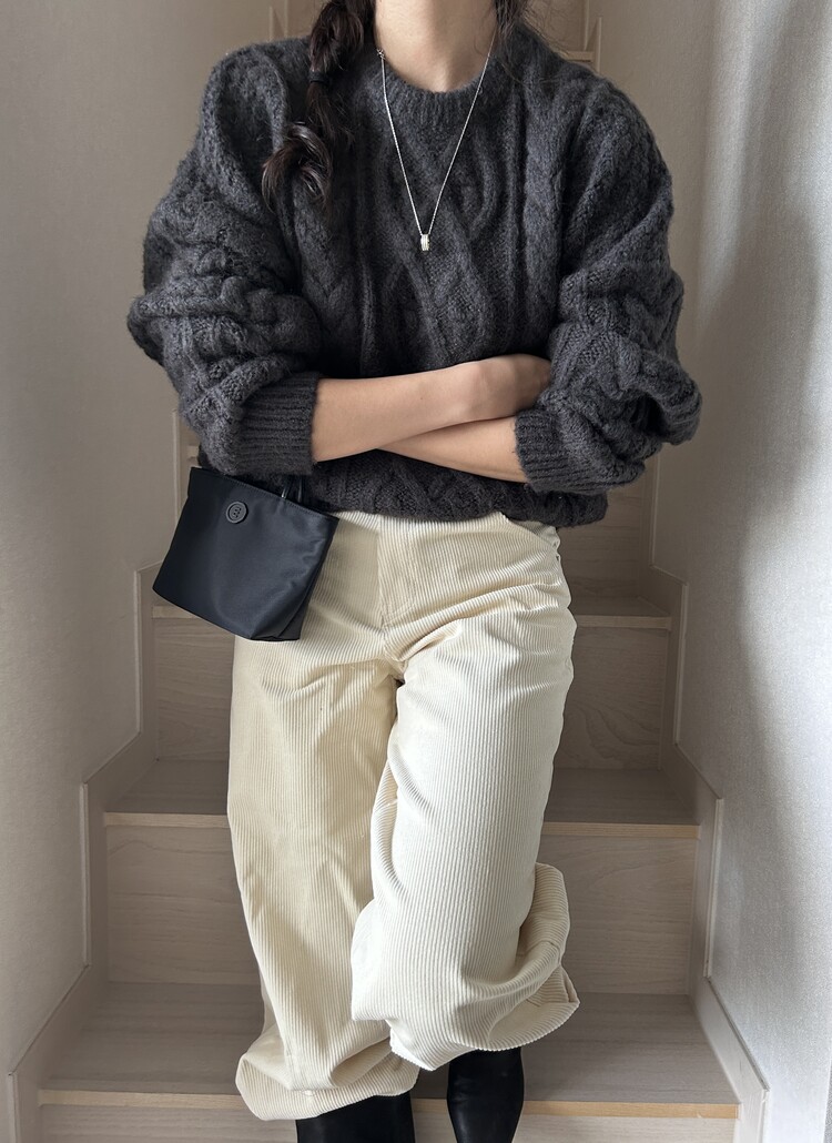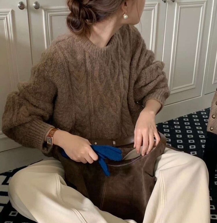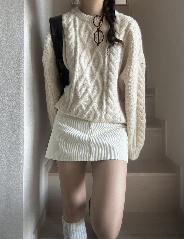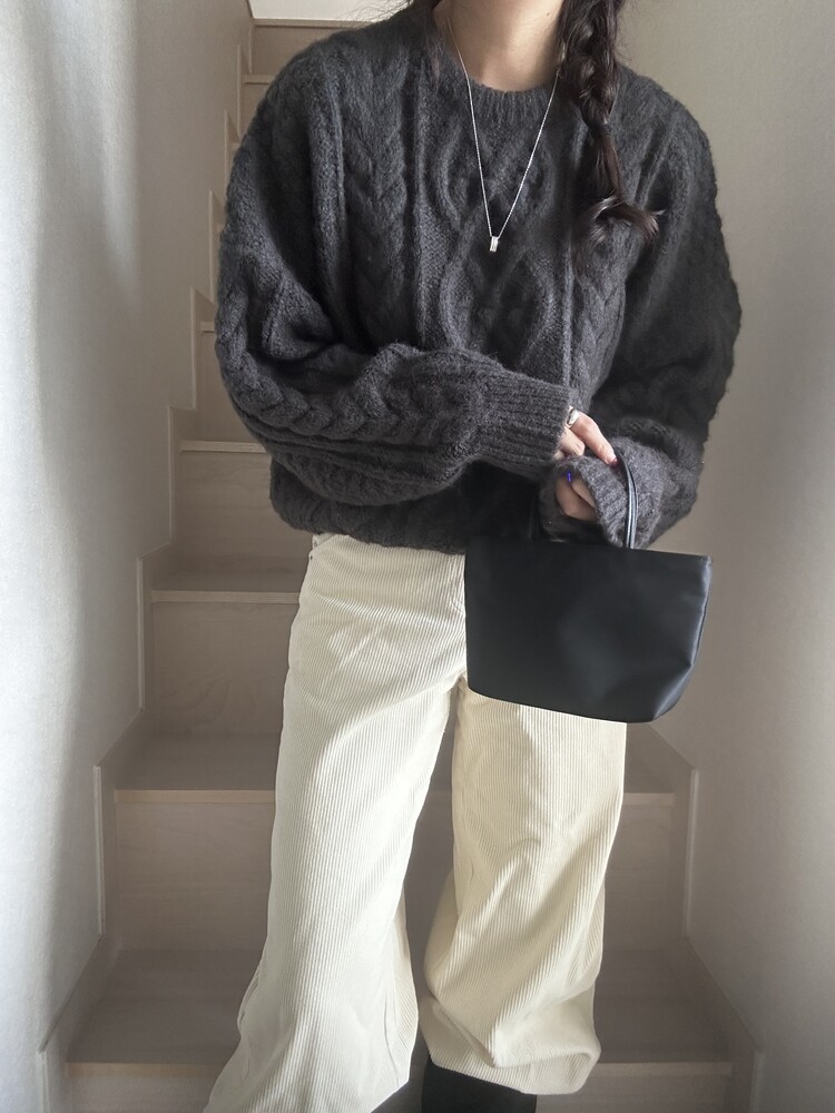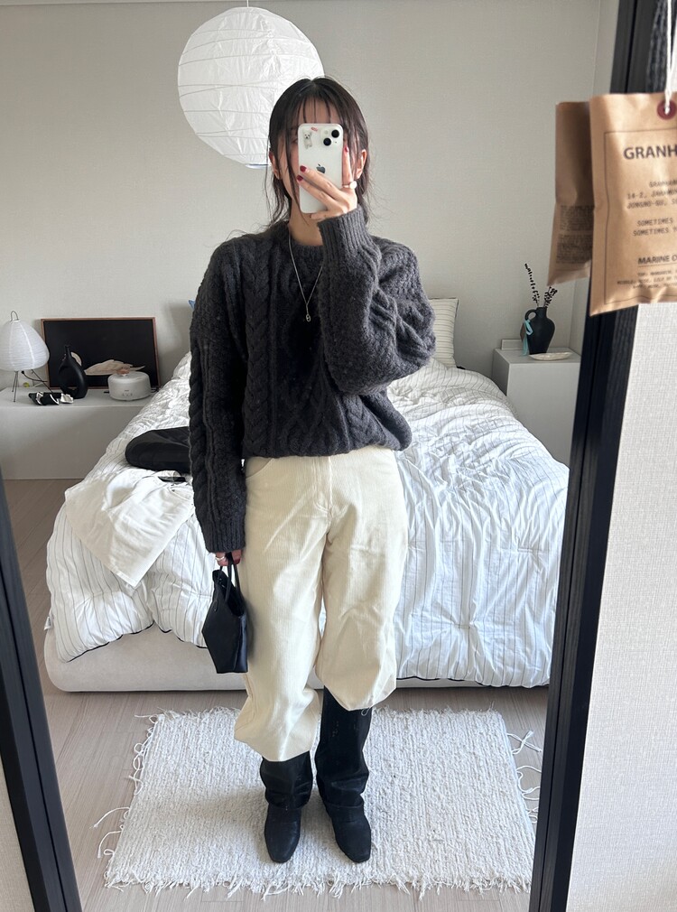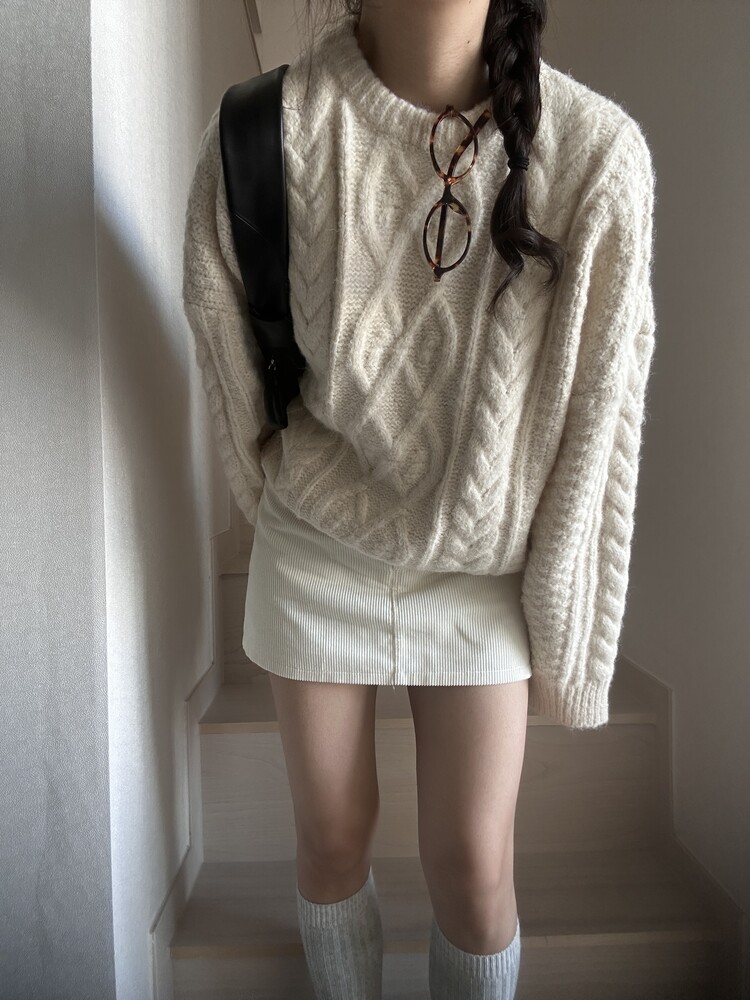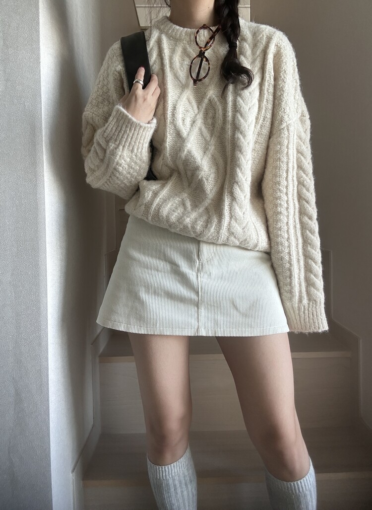 겨울시즌 빠질 수 없는 꽈베기짜임의 울 니트입니다.