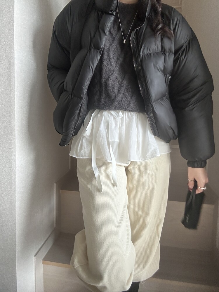 스커트와 매치했을때는 사랑스럽고 페미닌한 무드로 연출가능하며