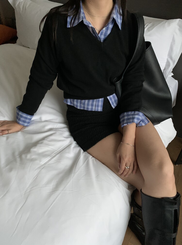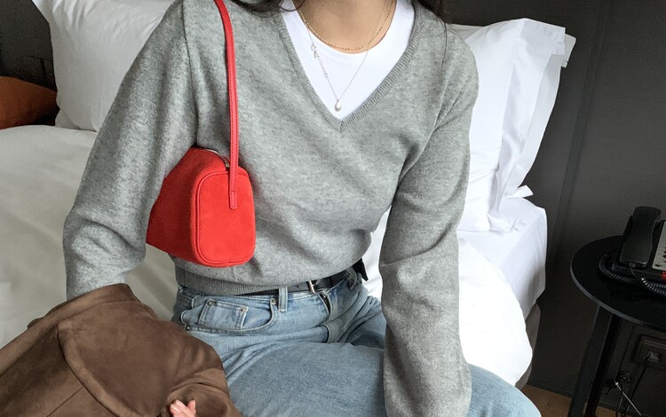 여리여리한 브이넥으로 얼굴을 갸름하고