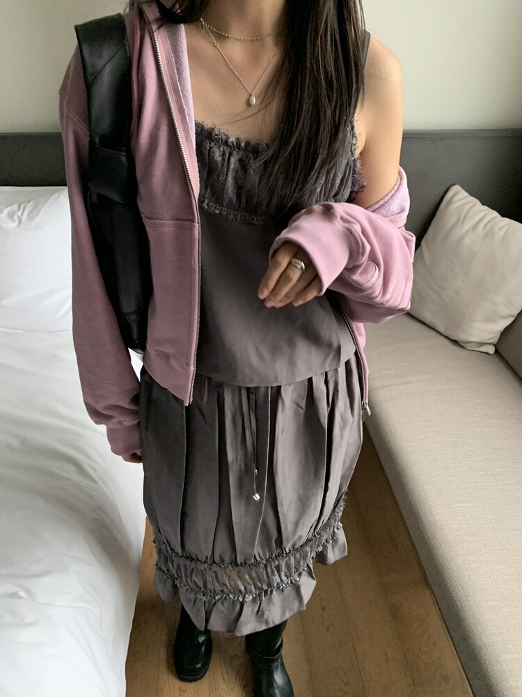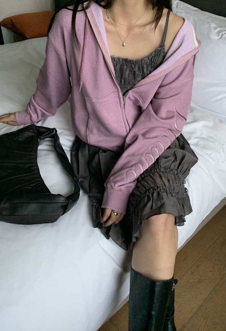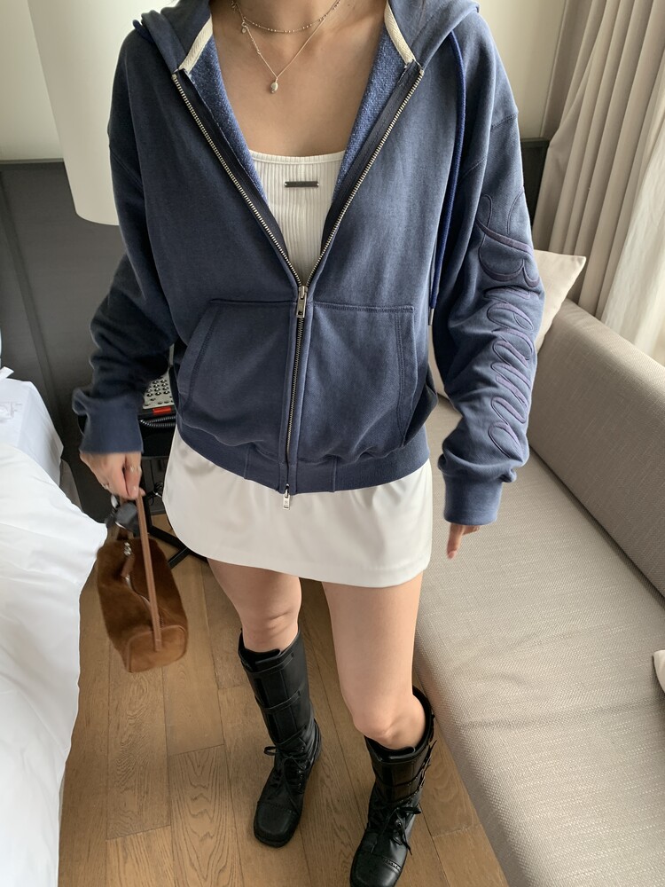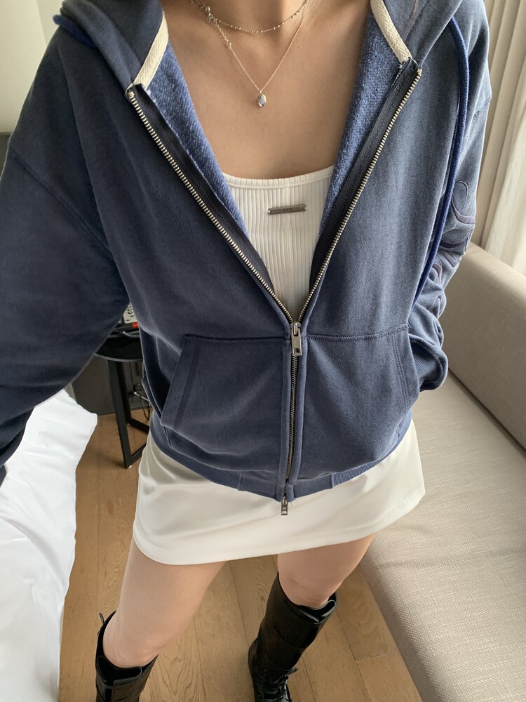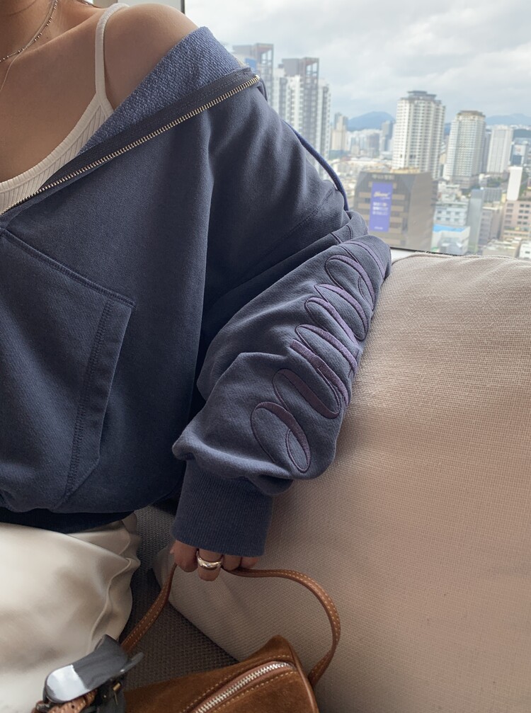 빈티지한 다잉 원단을 사용해 제작된 후드집업입니다.