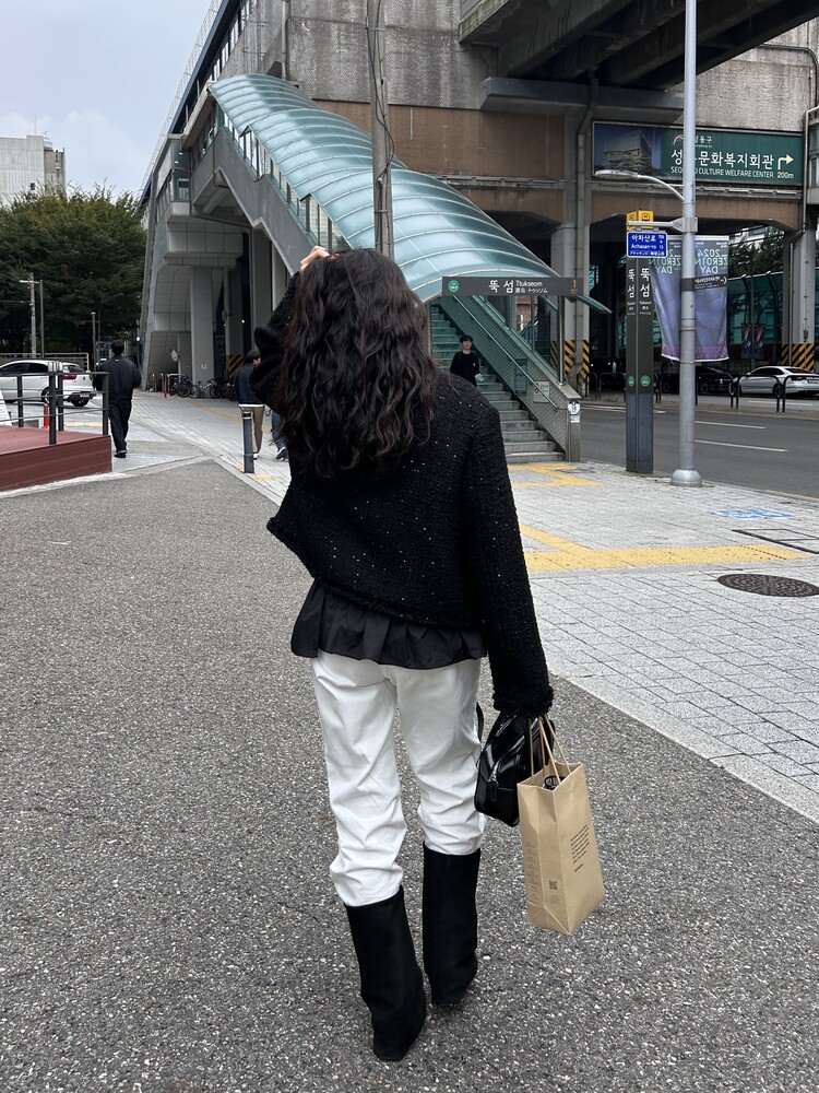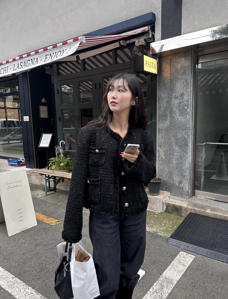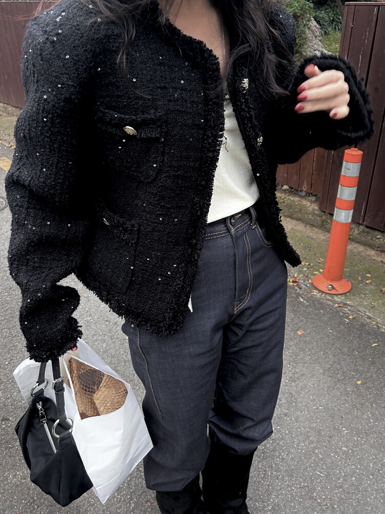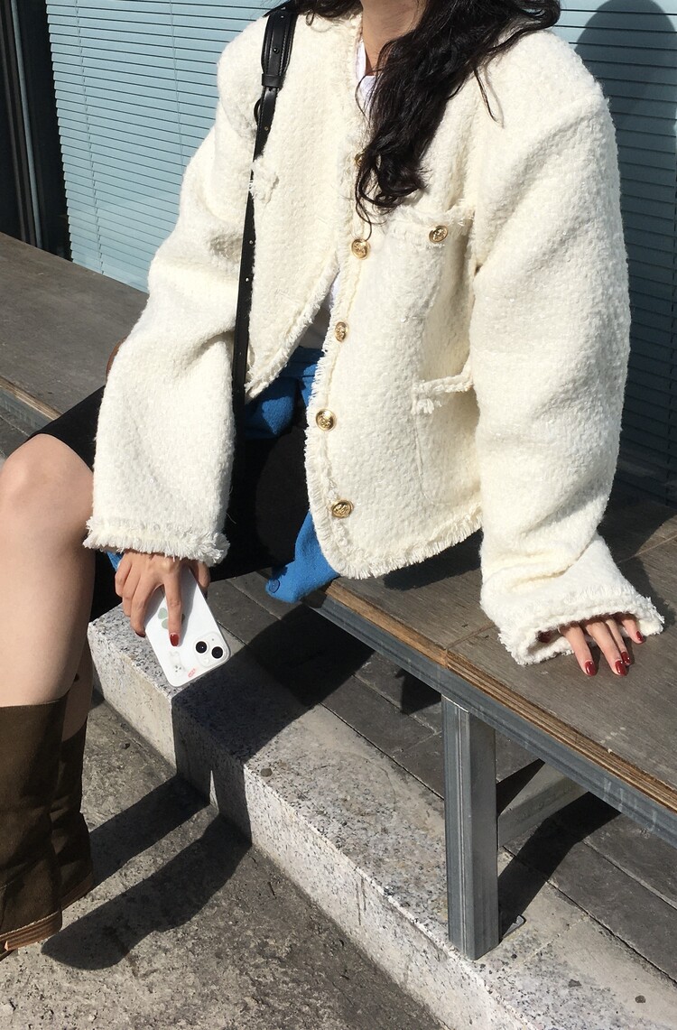 도톰한 두께감의 아우터이면서 트위드자켓이