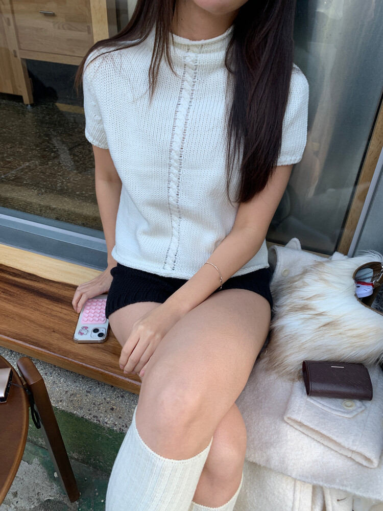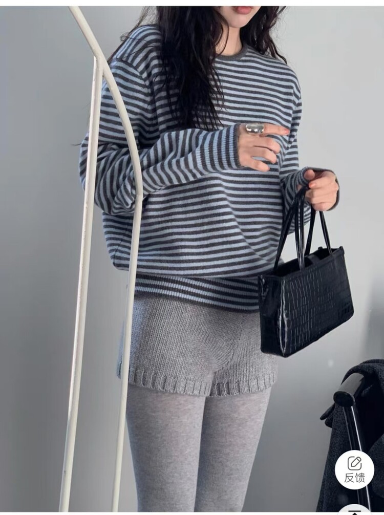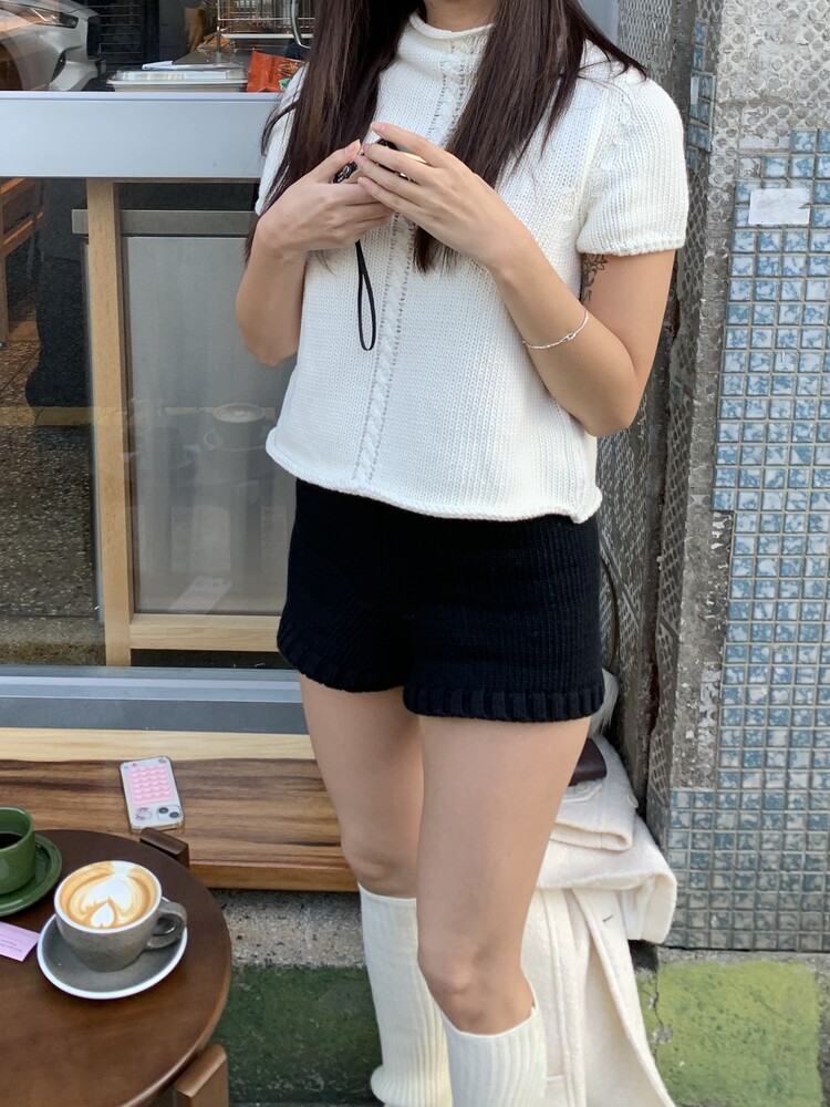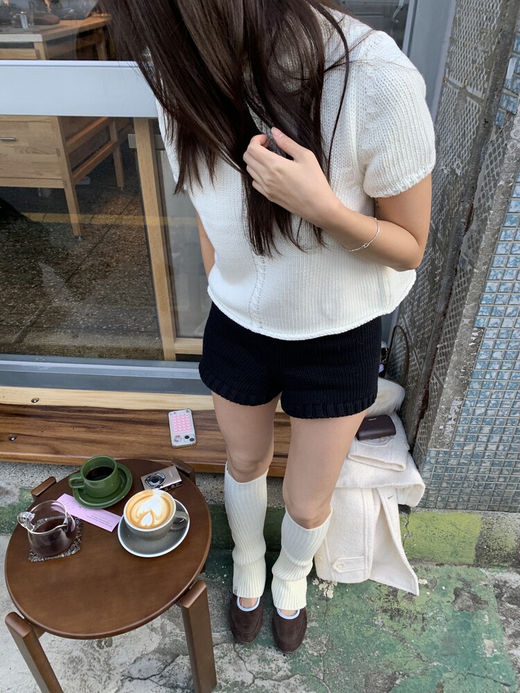 밑단 볼드한 립 조직 포인트의 니트팬츠입니다.