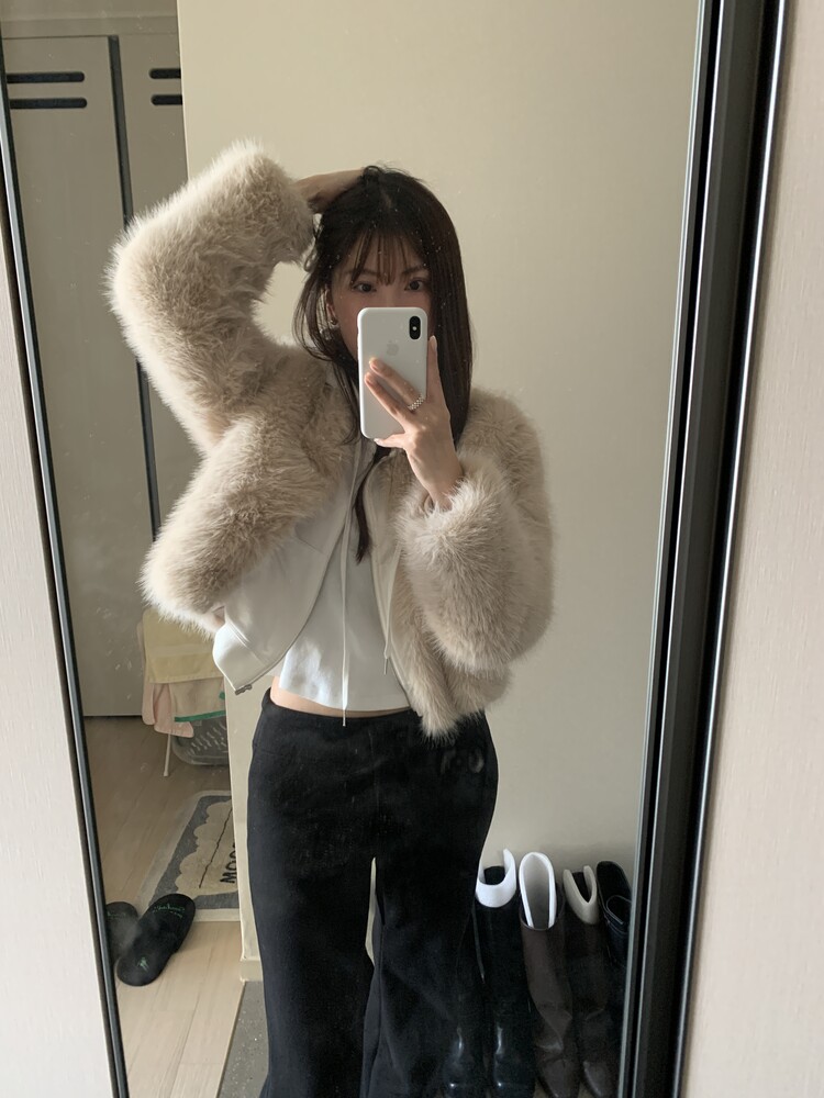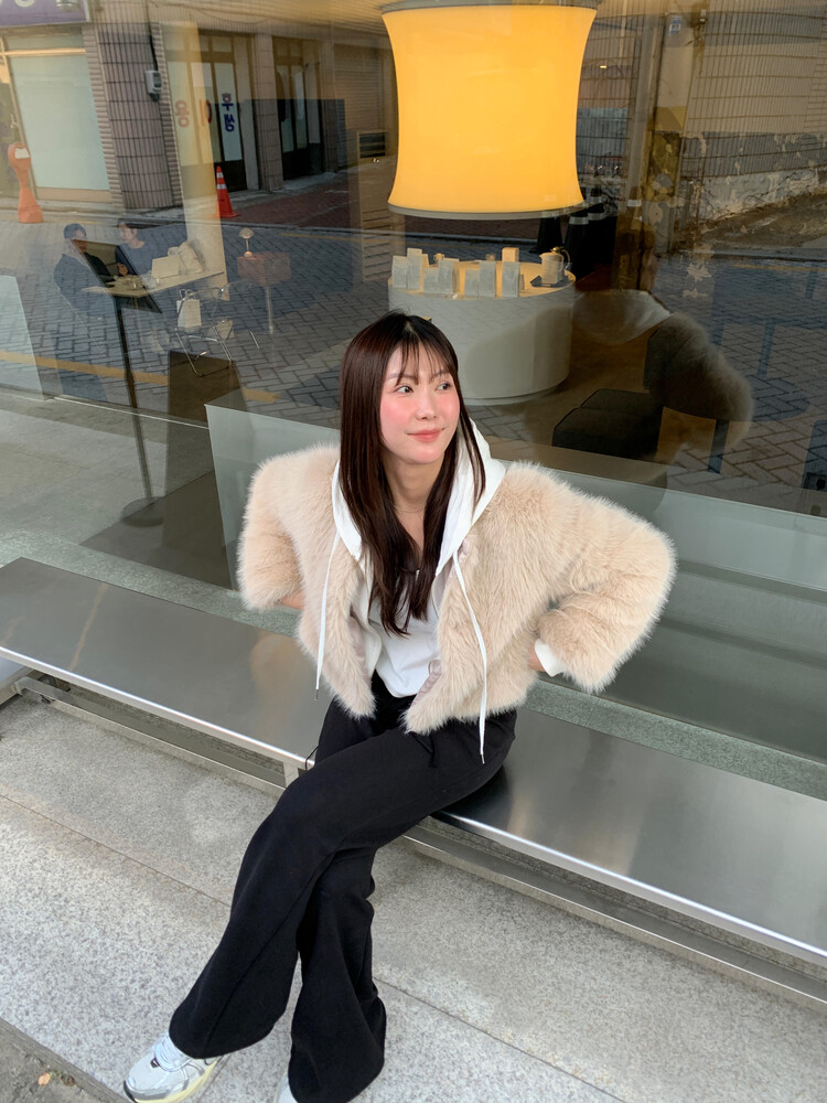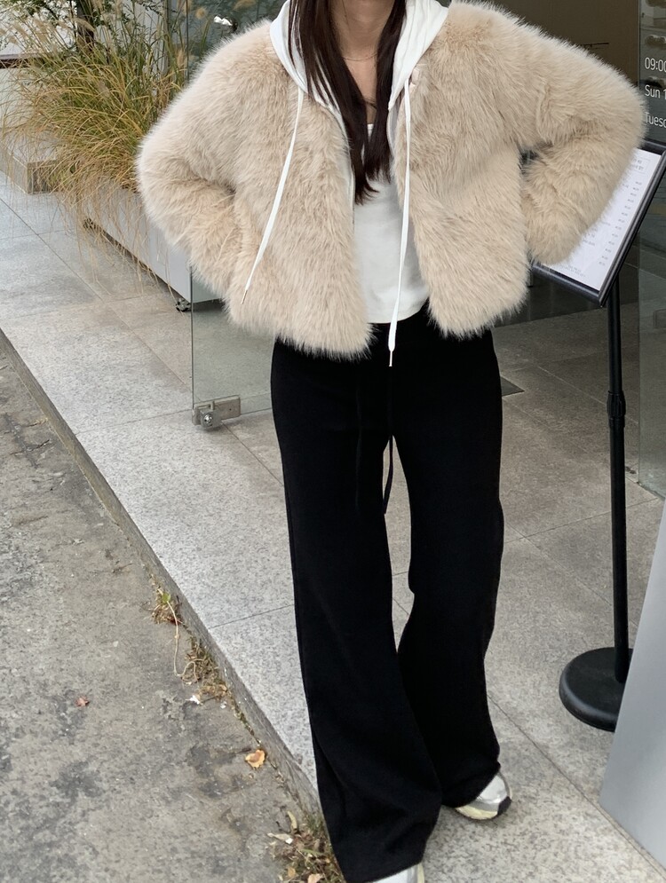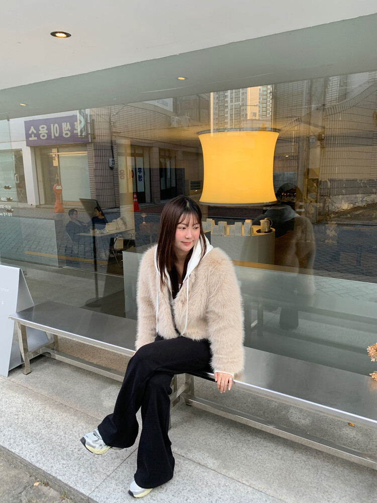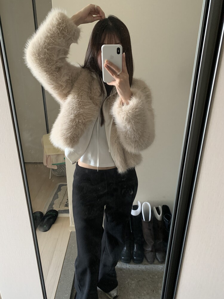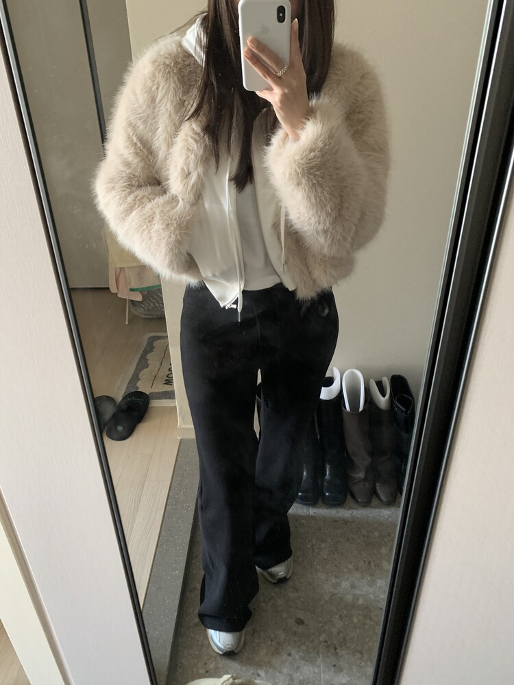 겉/안 모두 기모소재로 도톰해 한겨울에도 착용가능한 두께감이며