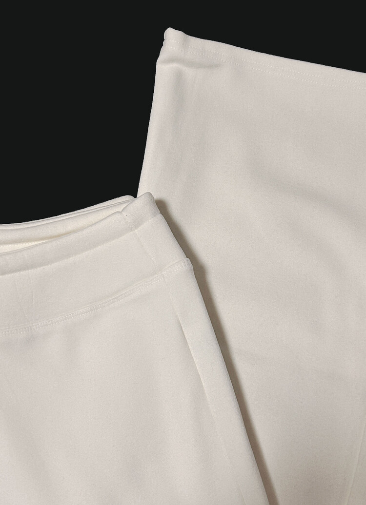 촉감 부드러움 / 신축성 있음 / 두께감 두꺼움 / 비침 없음 / 주머니 없음