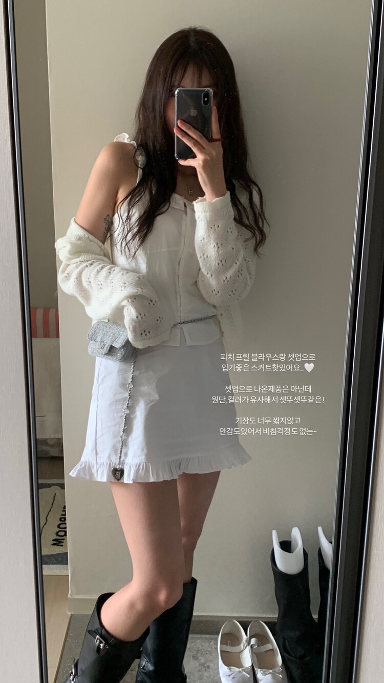 착용하기 좋은 프릴디테일의 미니스커트입니다.