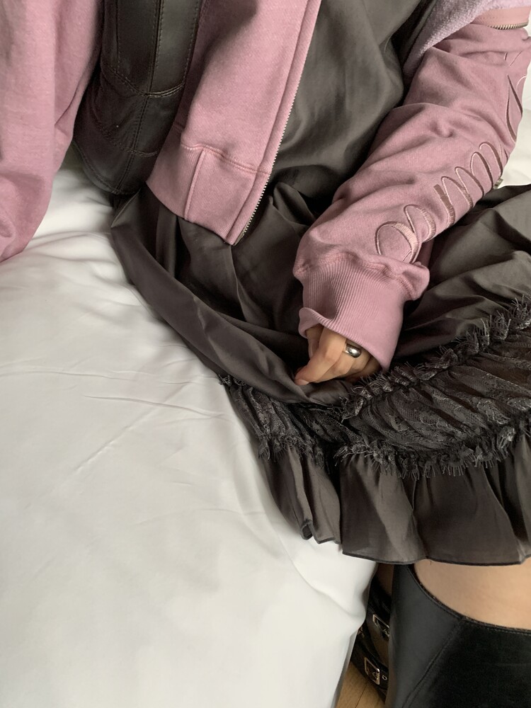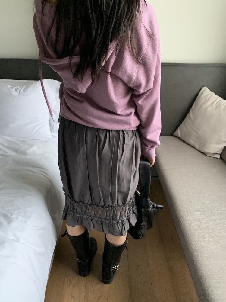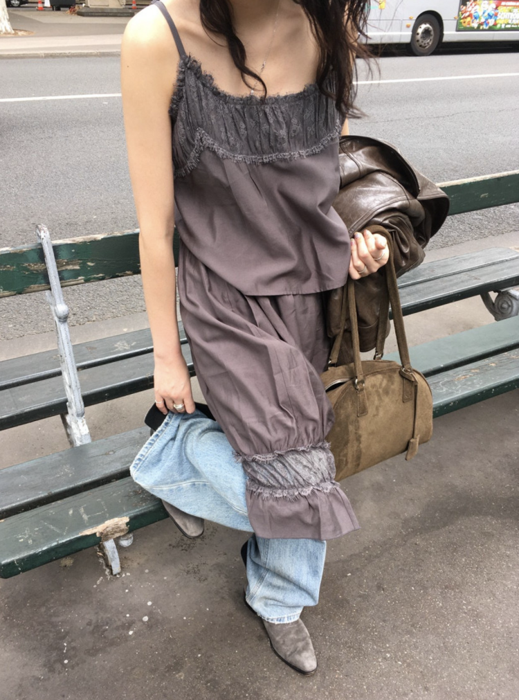 허리밴딩으로 편안한 착용감과 밑단 레이스 배색,