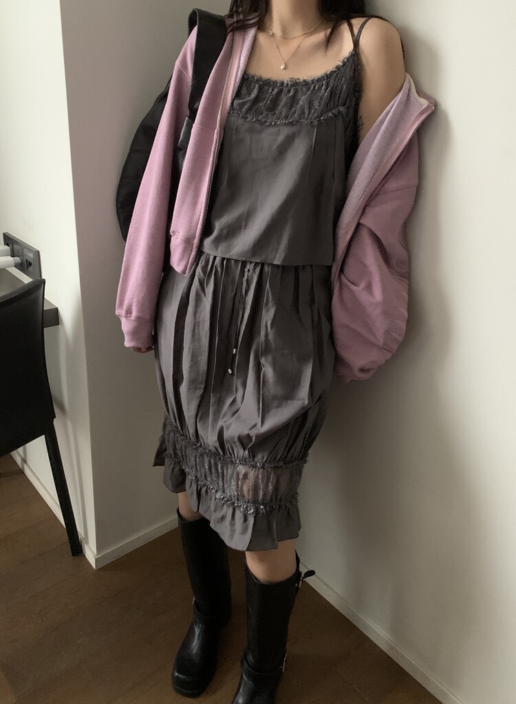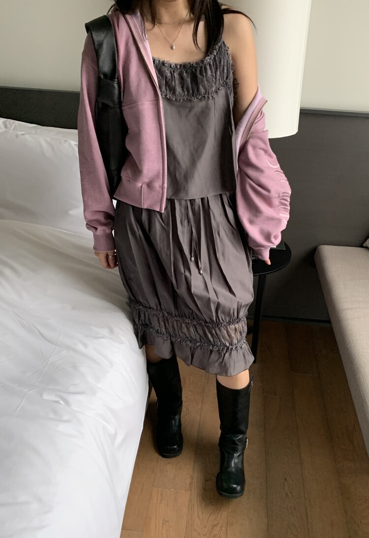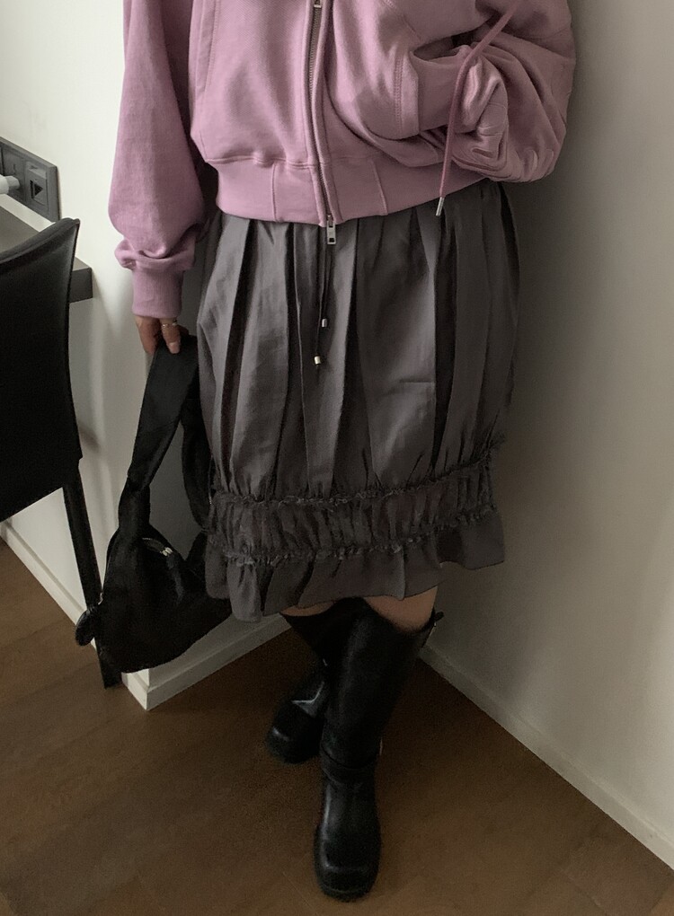 그리고 풍성한 셔링 디테일이 더해져 여성스러운 무드가 느껴집니다.