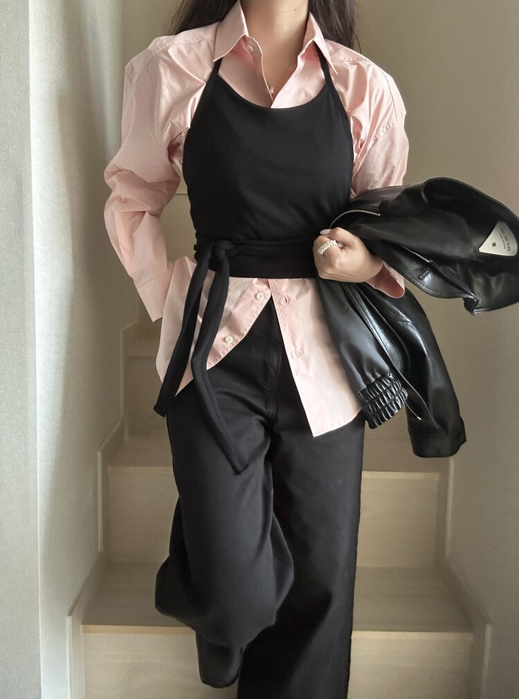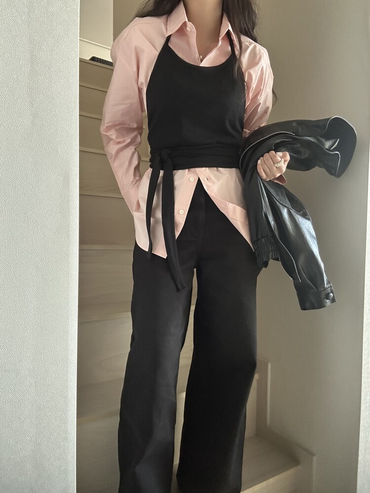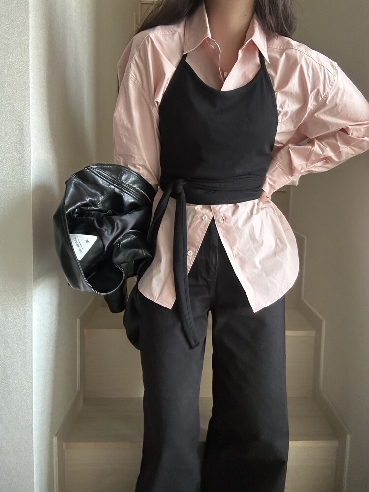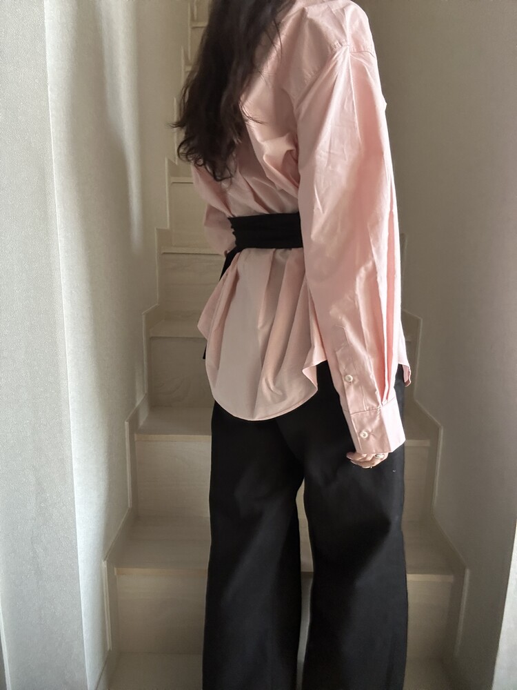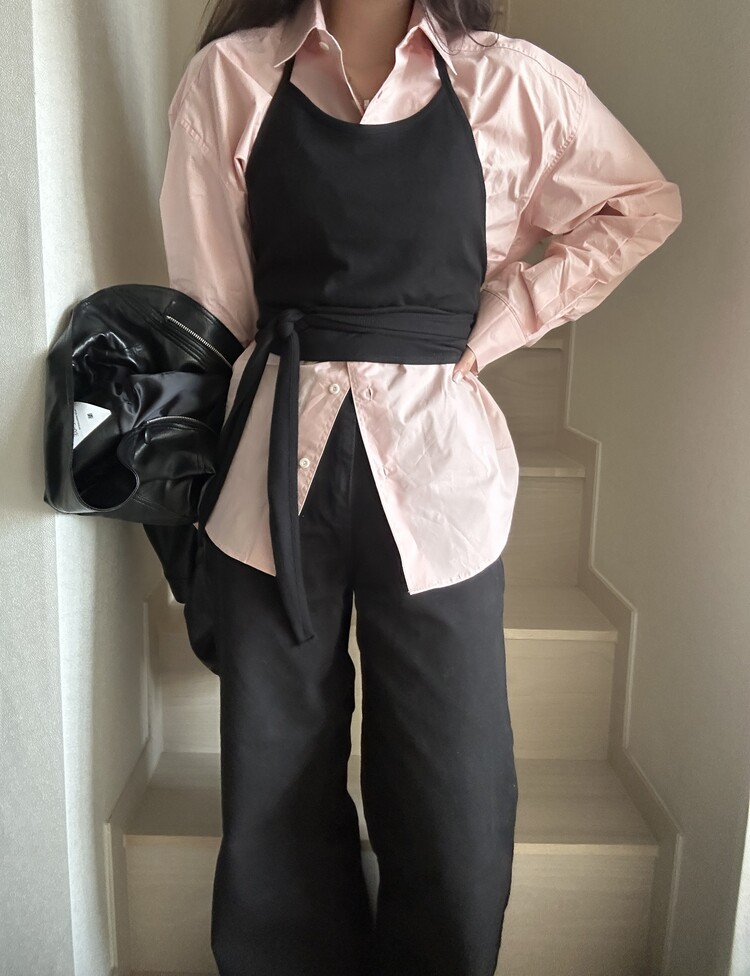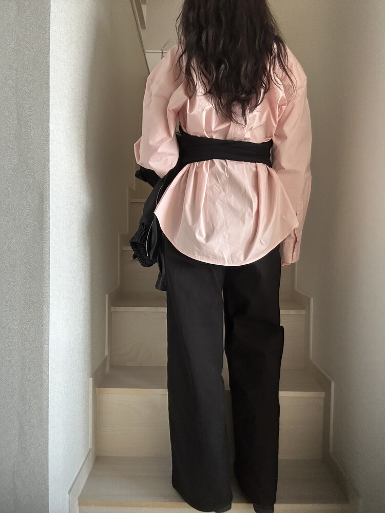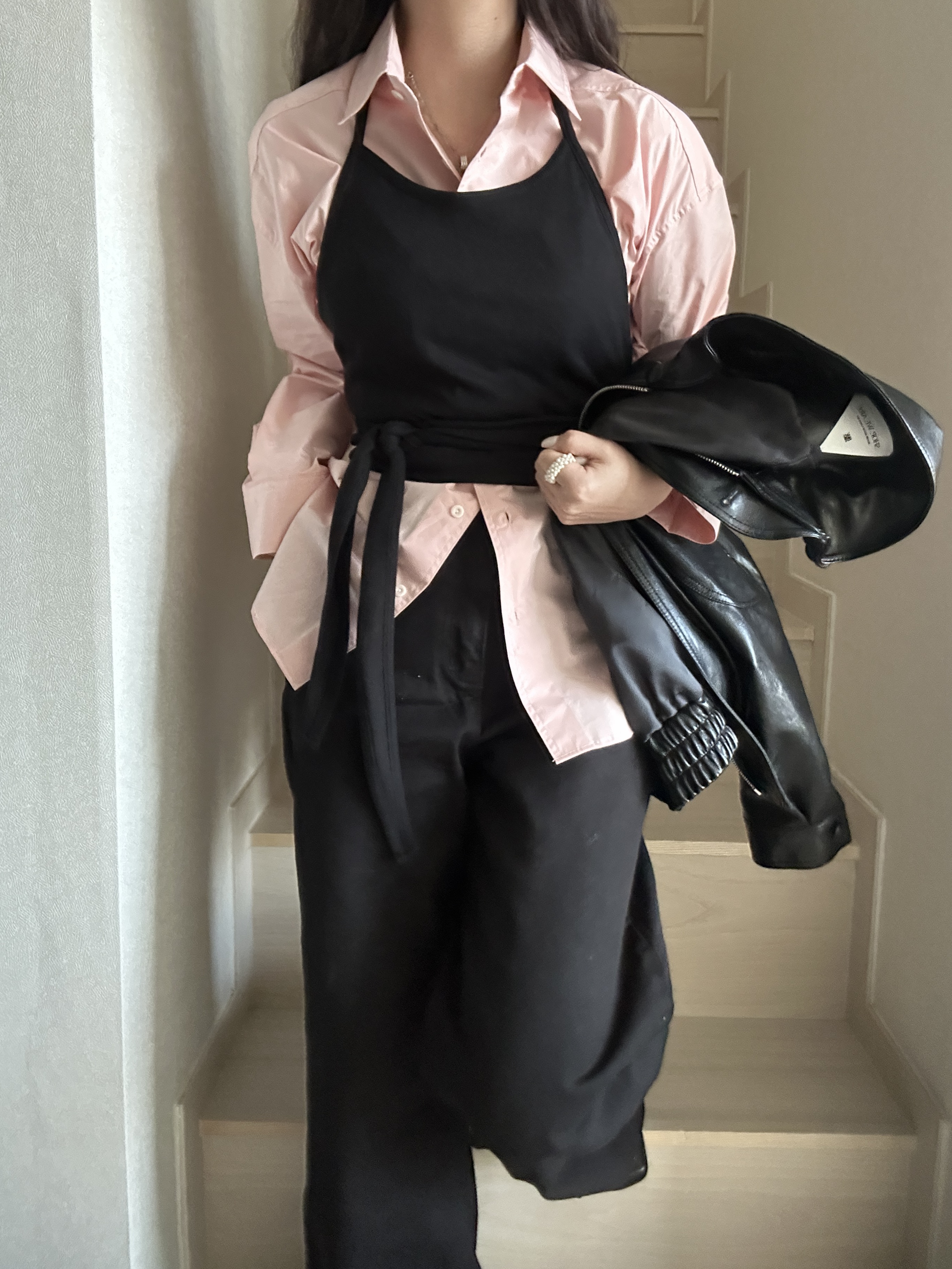 앞으로 가져와 허리라인을 잡아주어 핏감을 잡아줍니다.