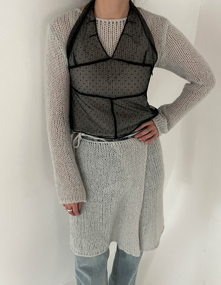 홀터넥 디자인의 뷔스티에로 기장은 자유자재로 조절가능하고 품도 넉넉해서