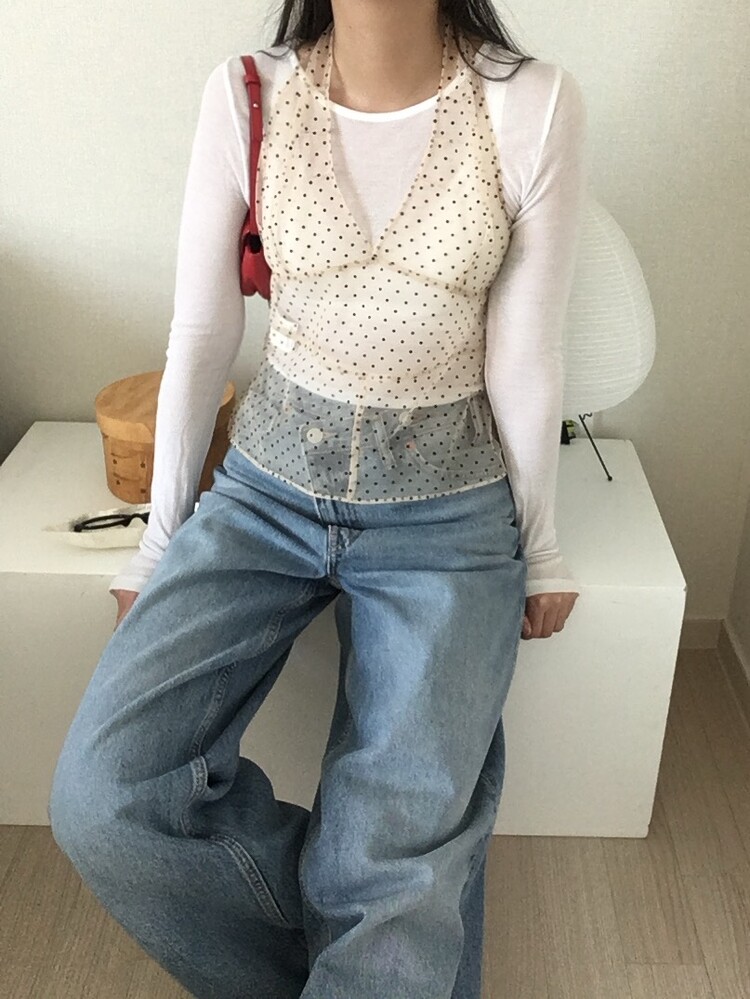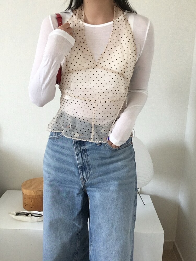 도트패턴의 시스루 뷔스티에입니다.