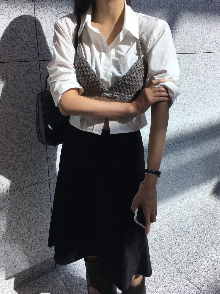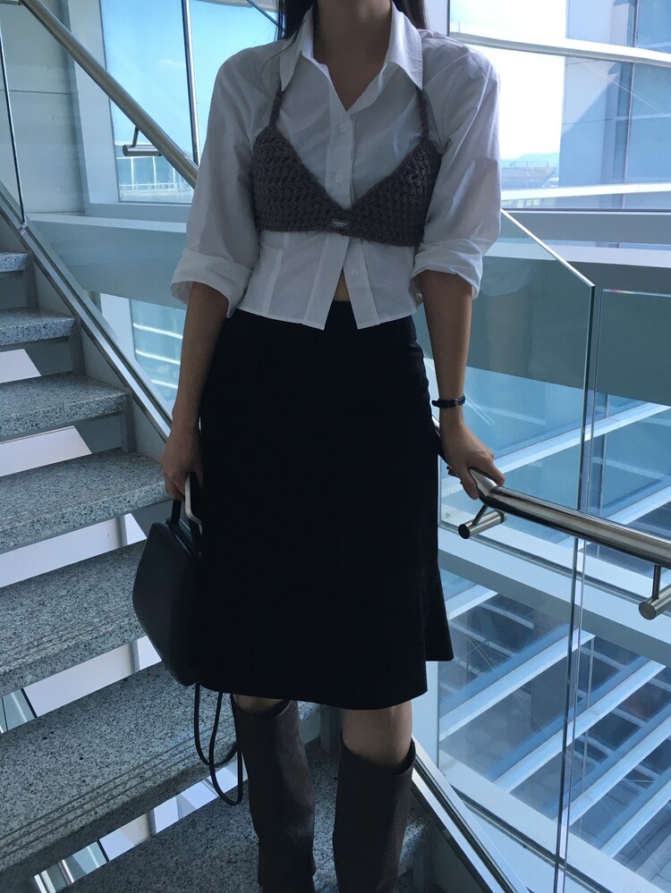 하이웨스트 스커트/팬츠와 입었을때 딱 맞게 떨어지는 기장감이며,
